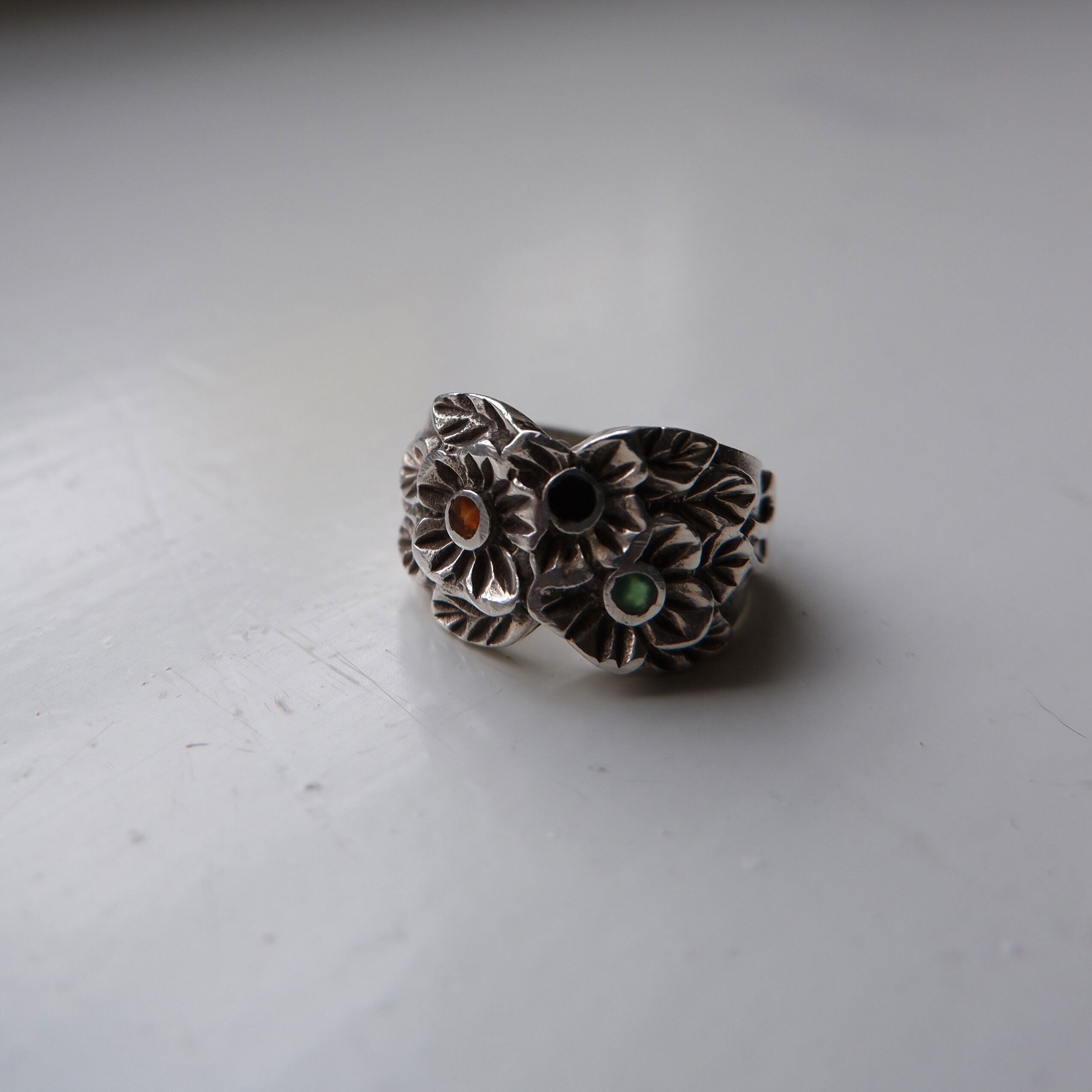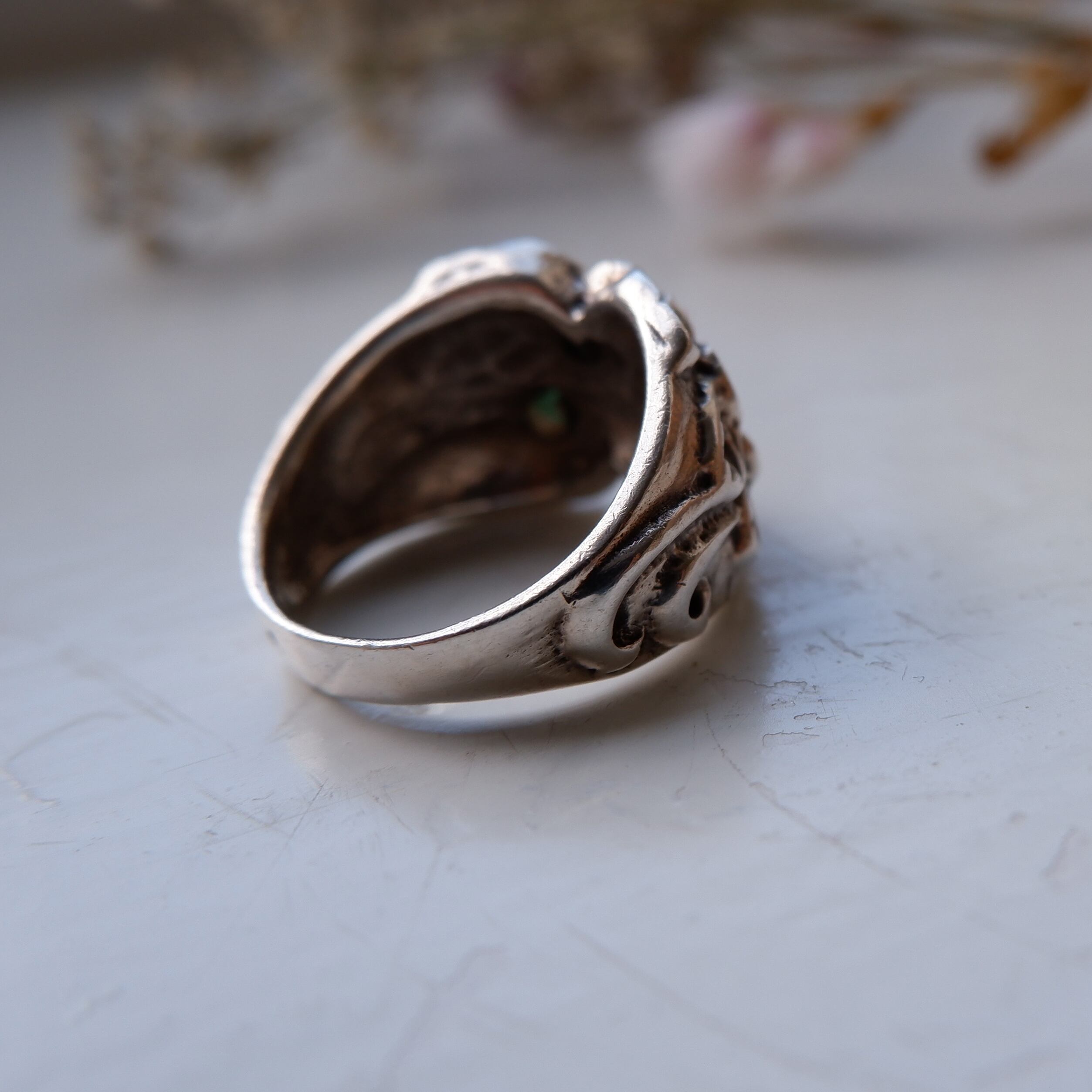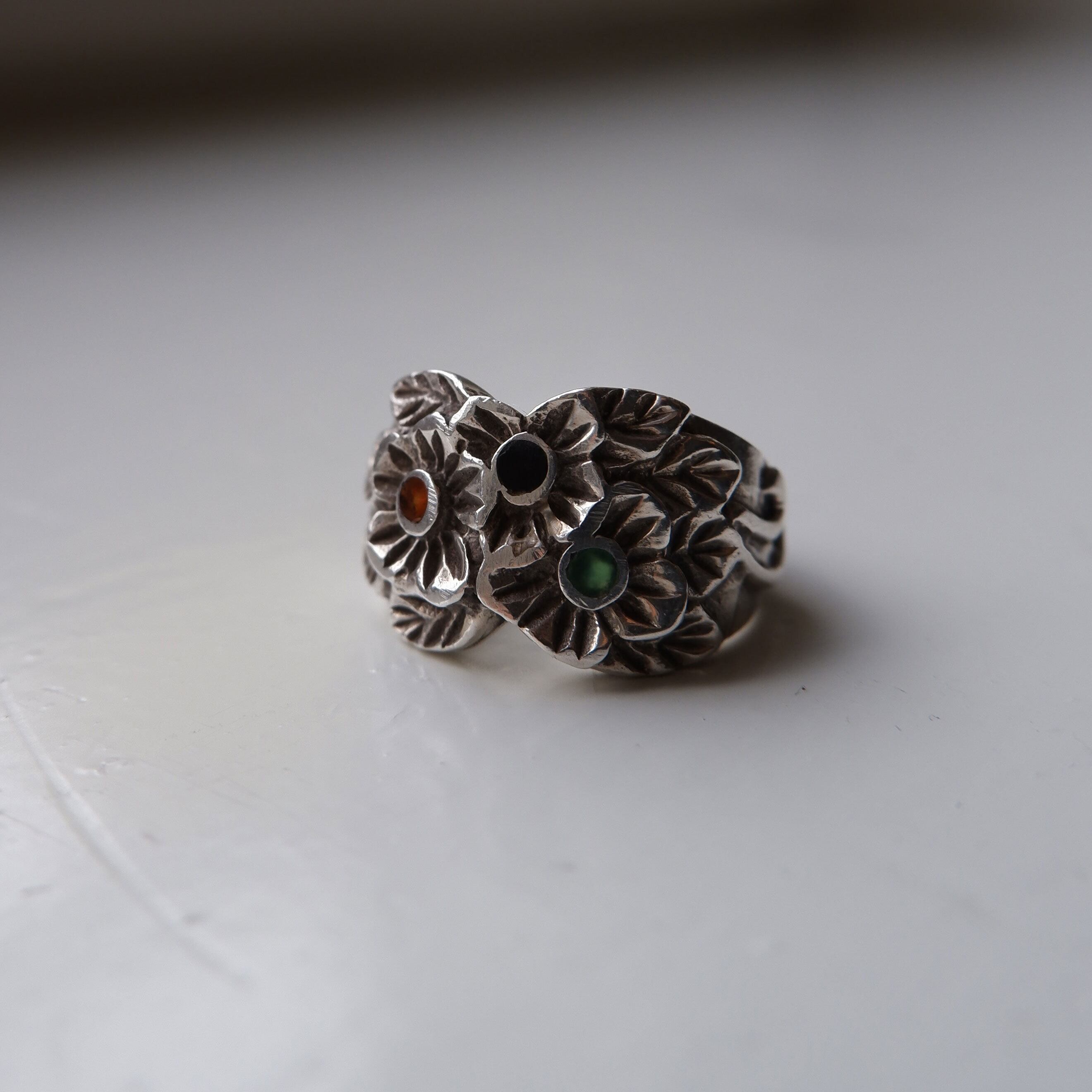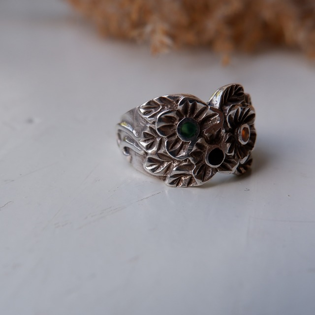 石と見紛うようなガラスを充てがった銀製品は、古いアンティーク品ならではのもの。
