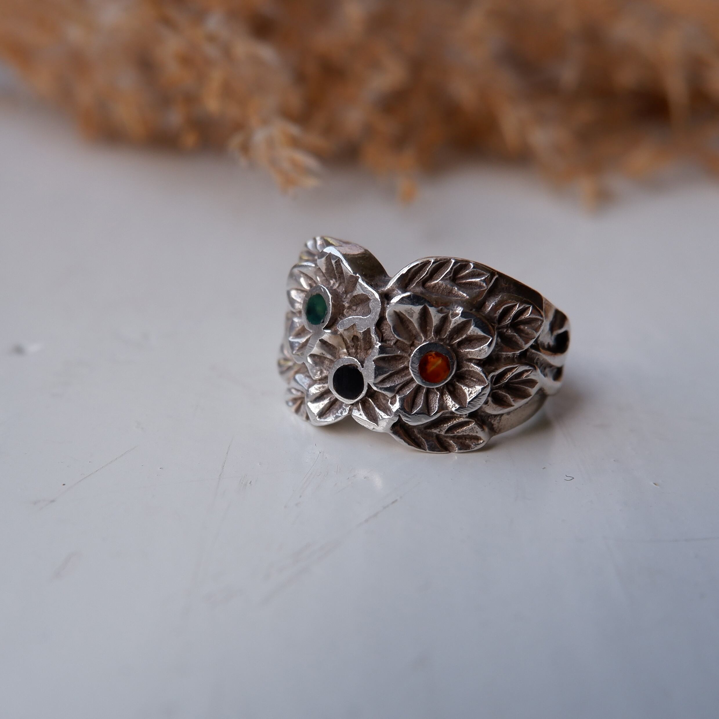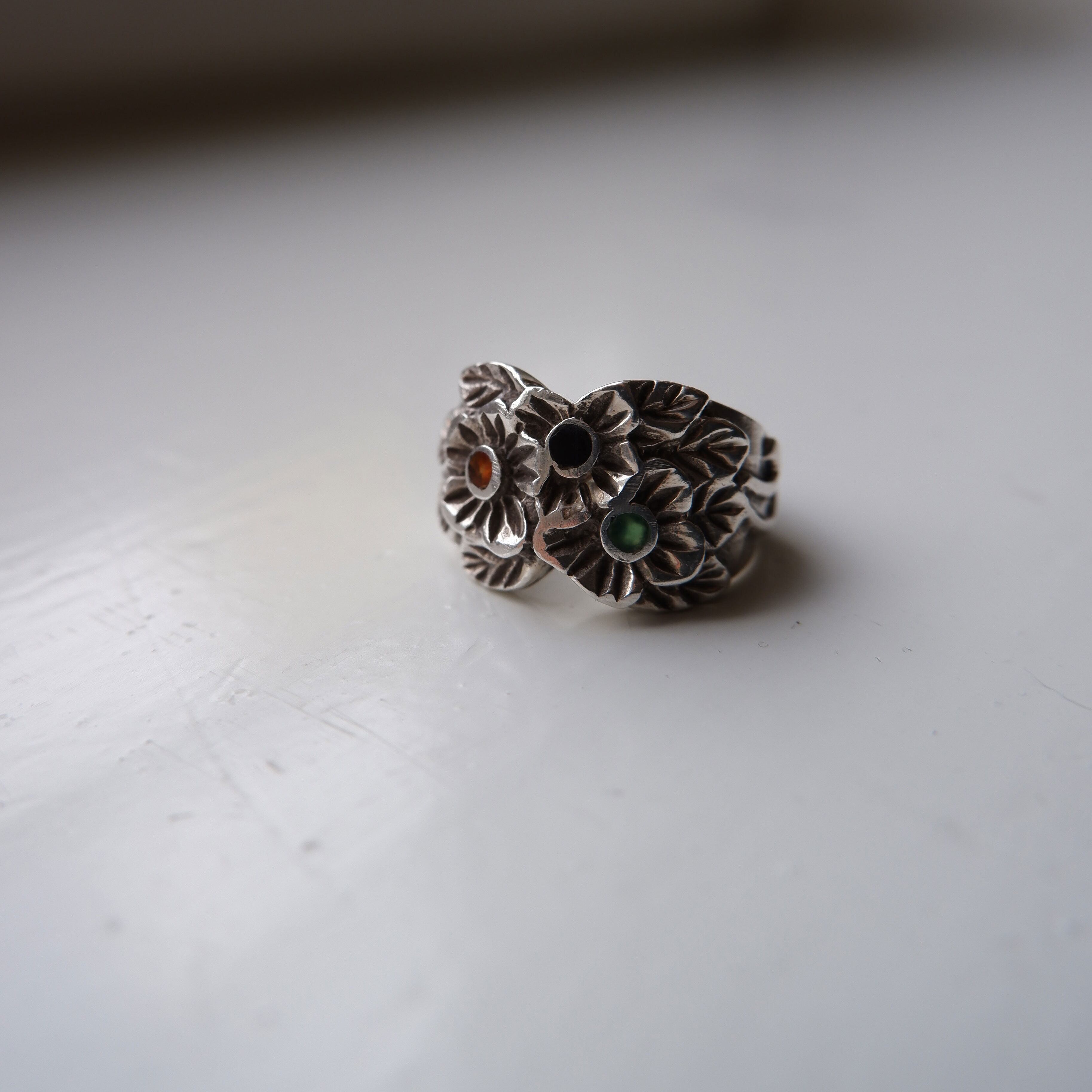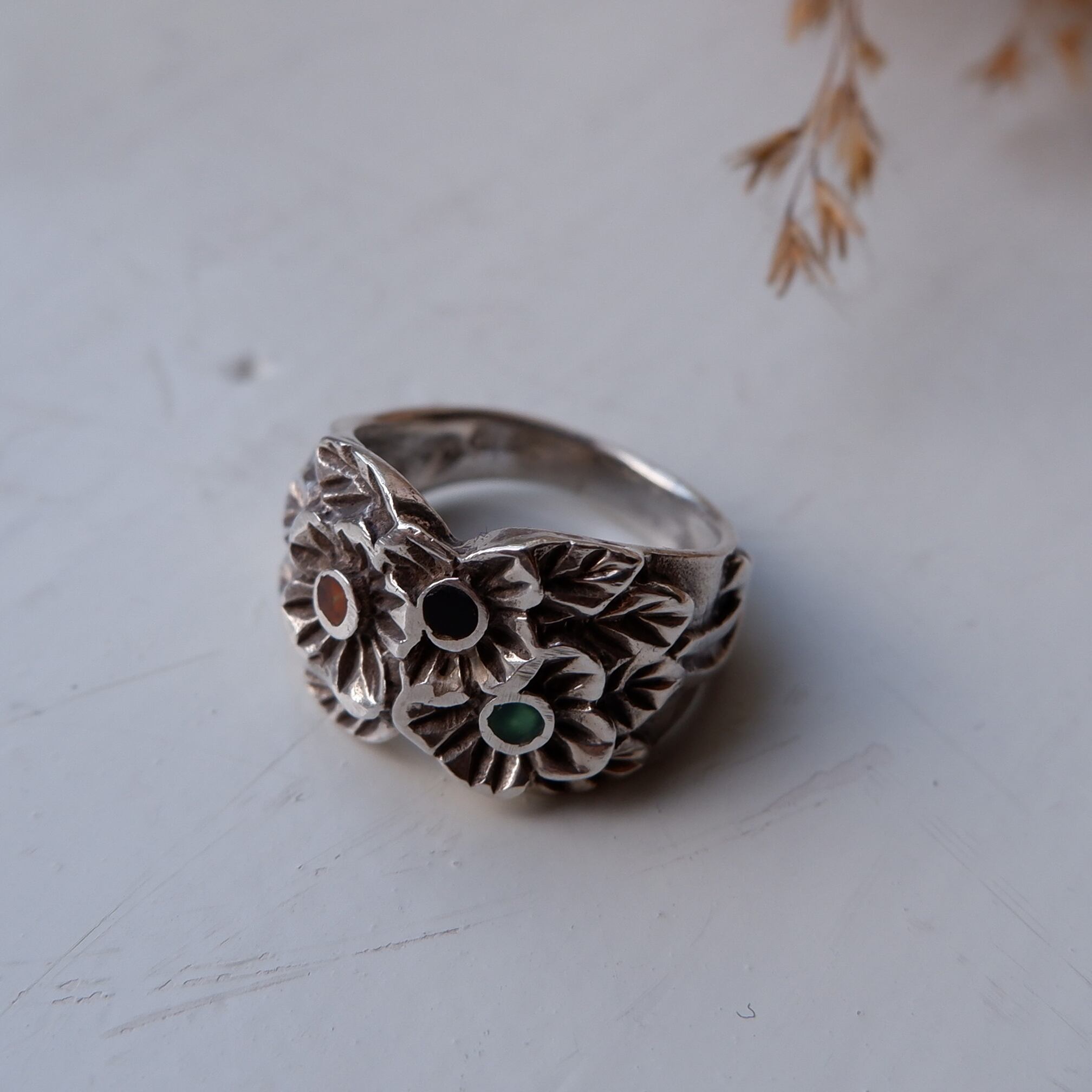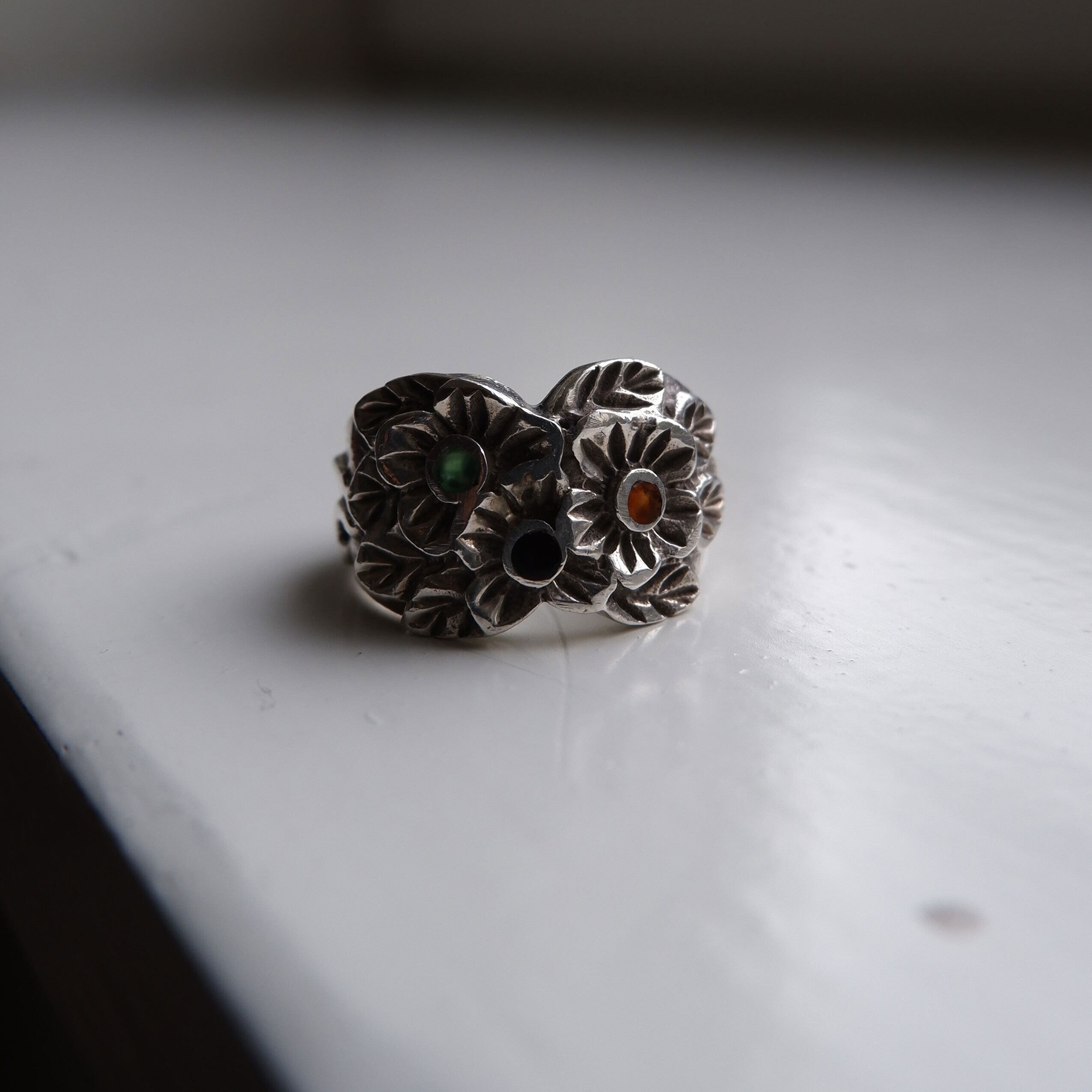 石と見紛うようなガラスを充てがった銀製品は、古いアンティーク品ならではのもの。