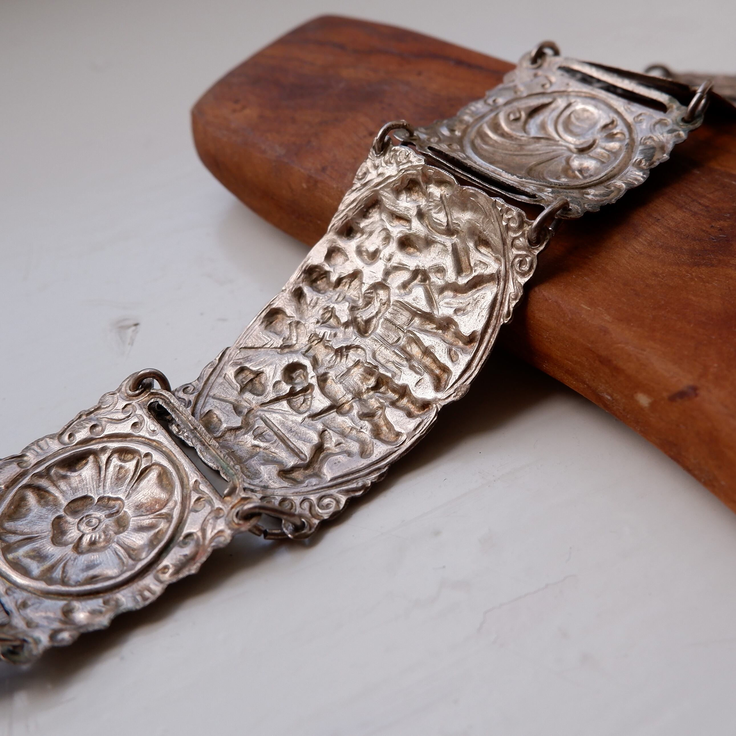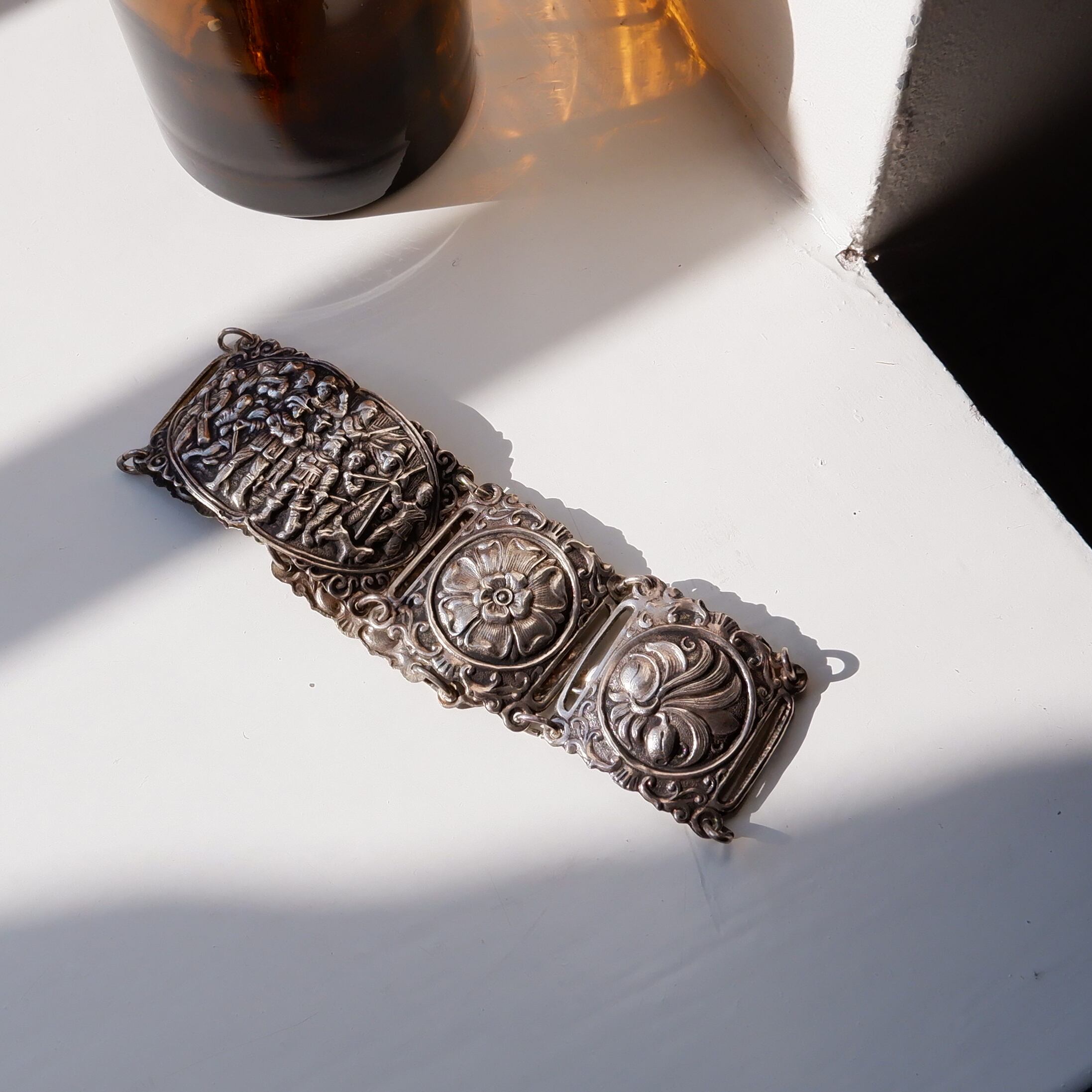 17世紀のオランダの画家レンブラントの代表作「夜警」が描かれている、合金製のブレスレットです。