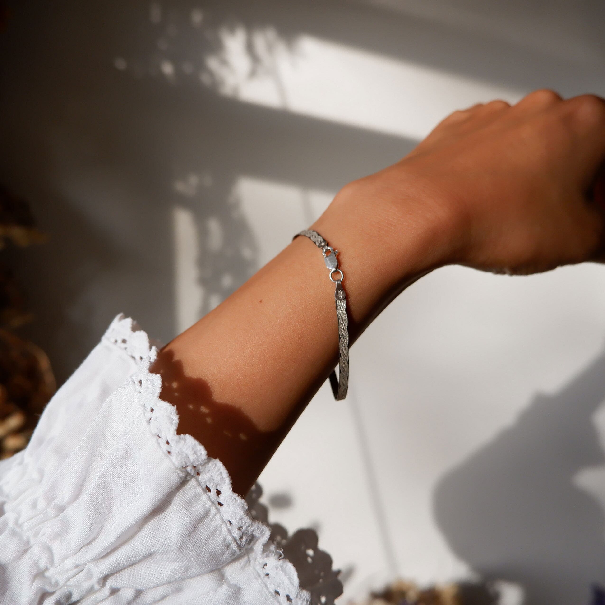 まるで生きている様な銀細工。表面には、スネークスキンのパターンが刻まれています。