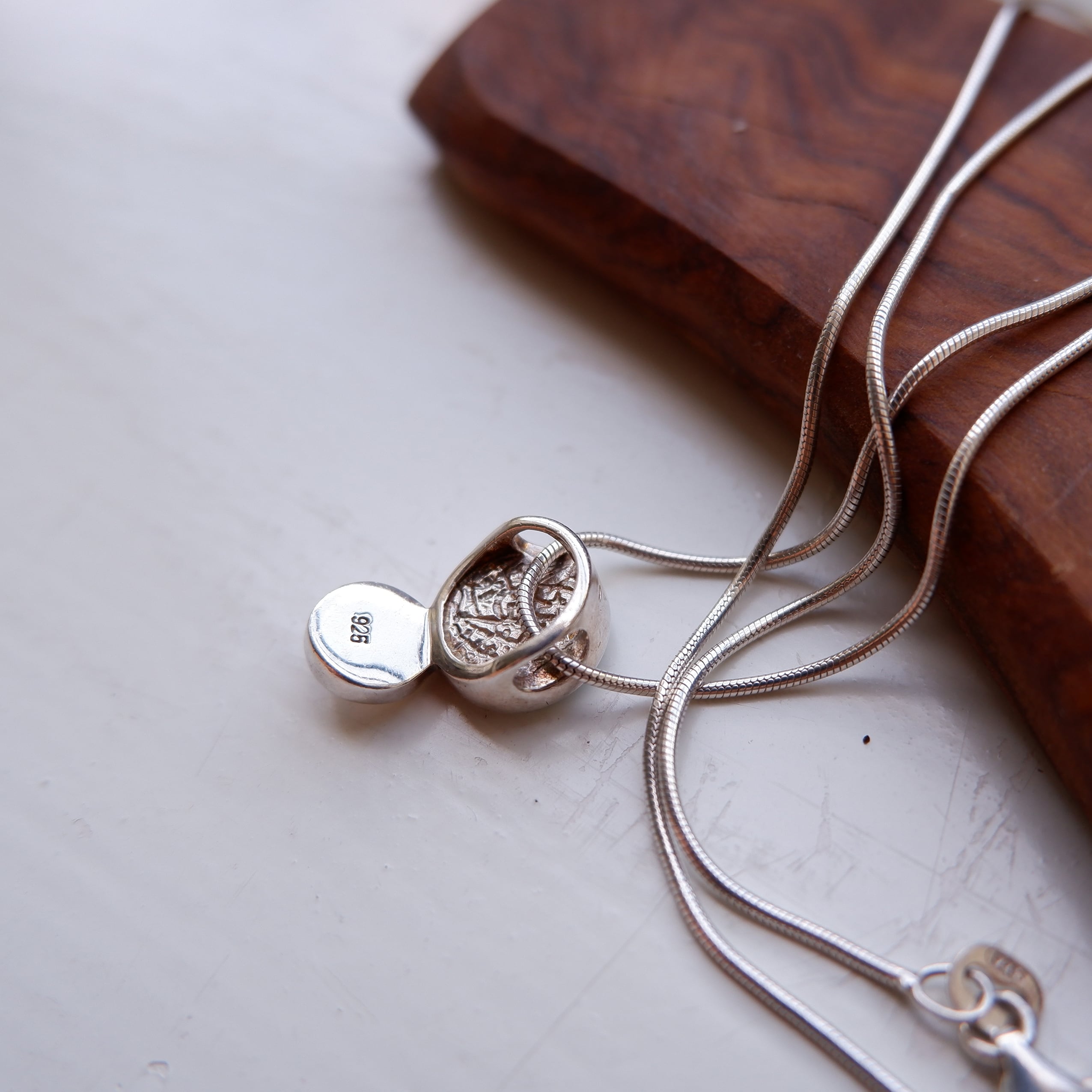 ペンダントの裏側に素材を表す925の数字、淵の部分にはオランダの管理局が古い時代に使用していたマークが刻印されています。