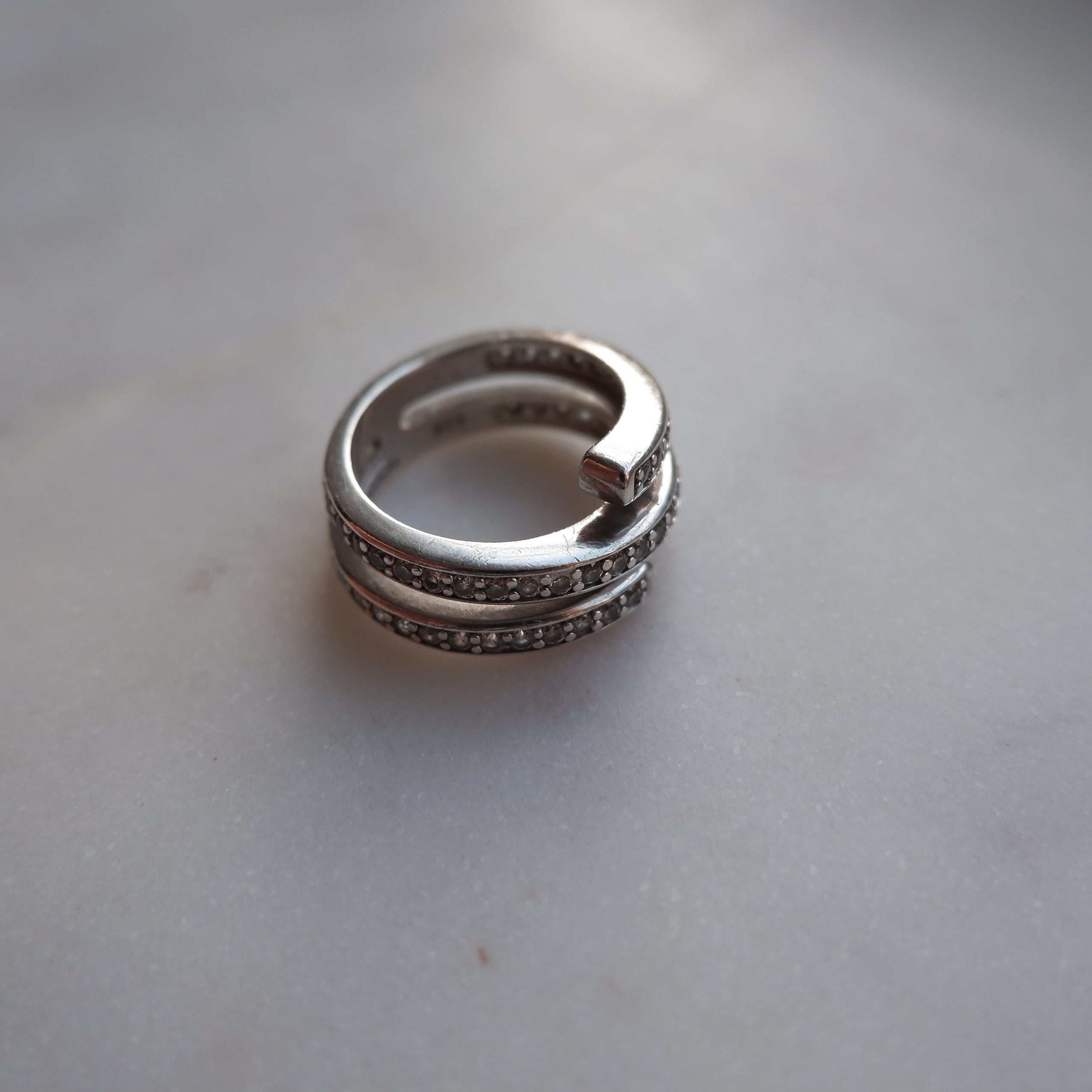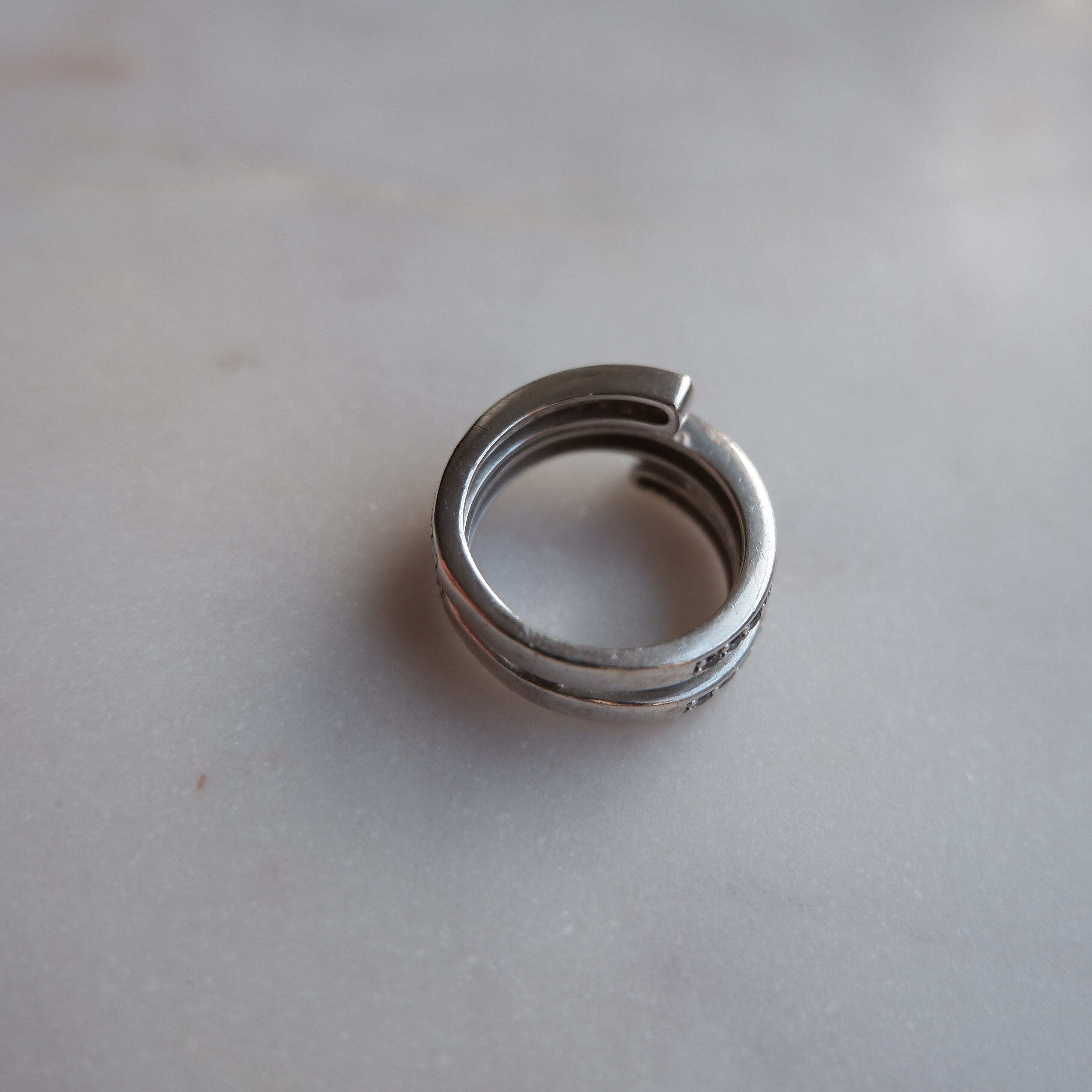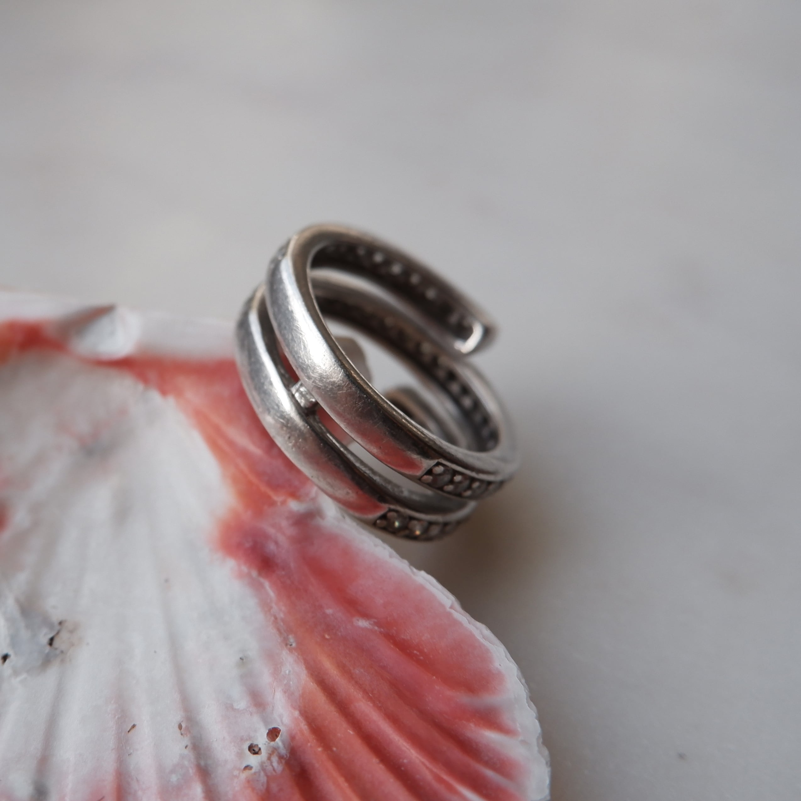 肉厚なヴィンテージシルバー製の螺旋デザインのリングです。