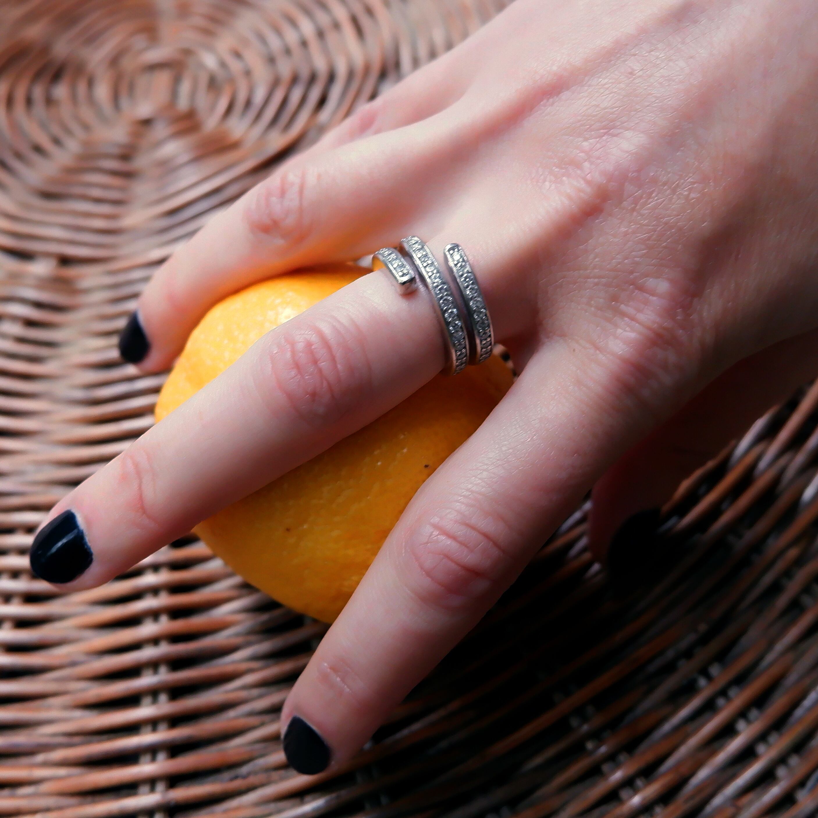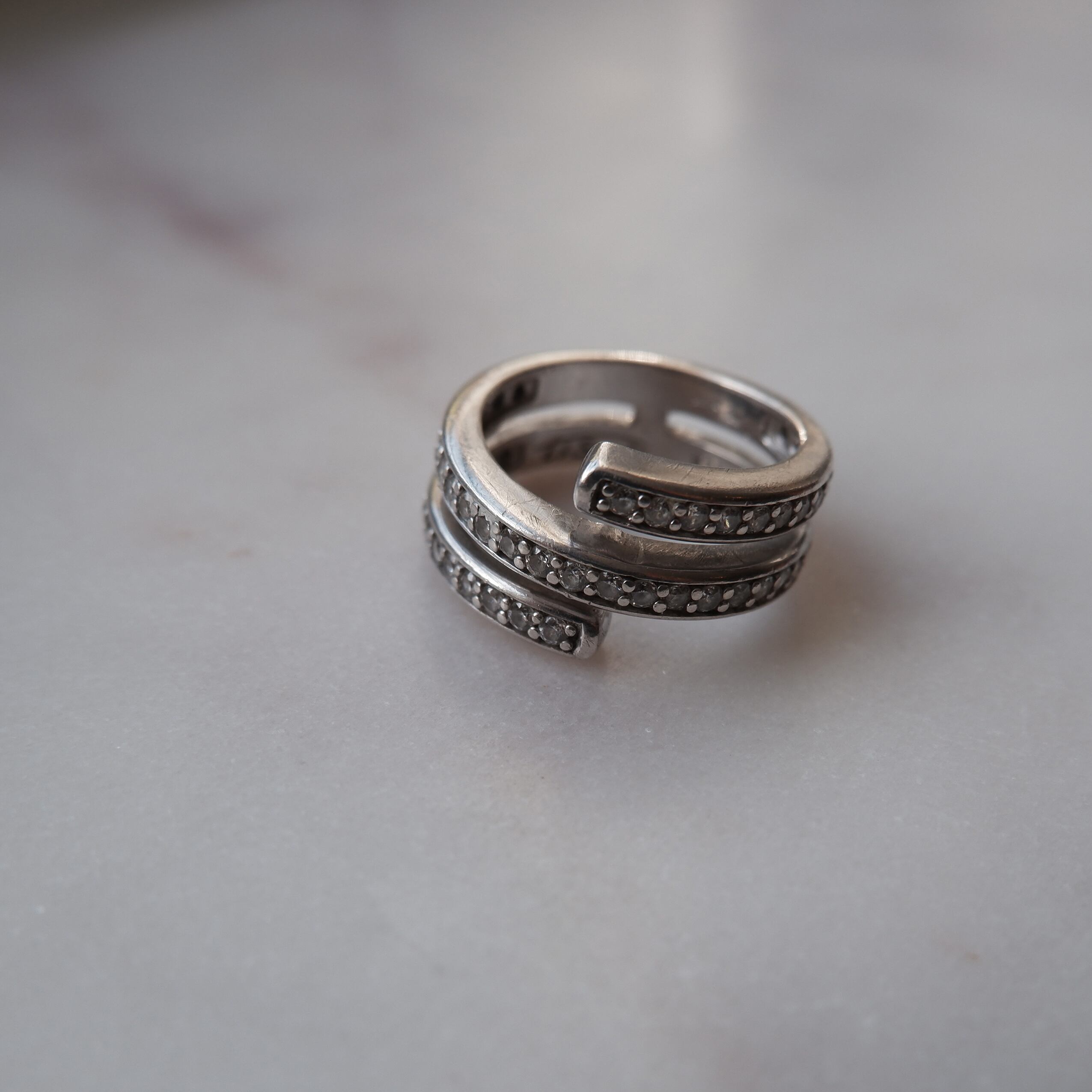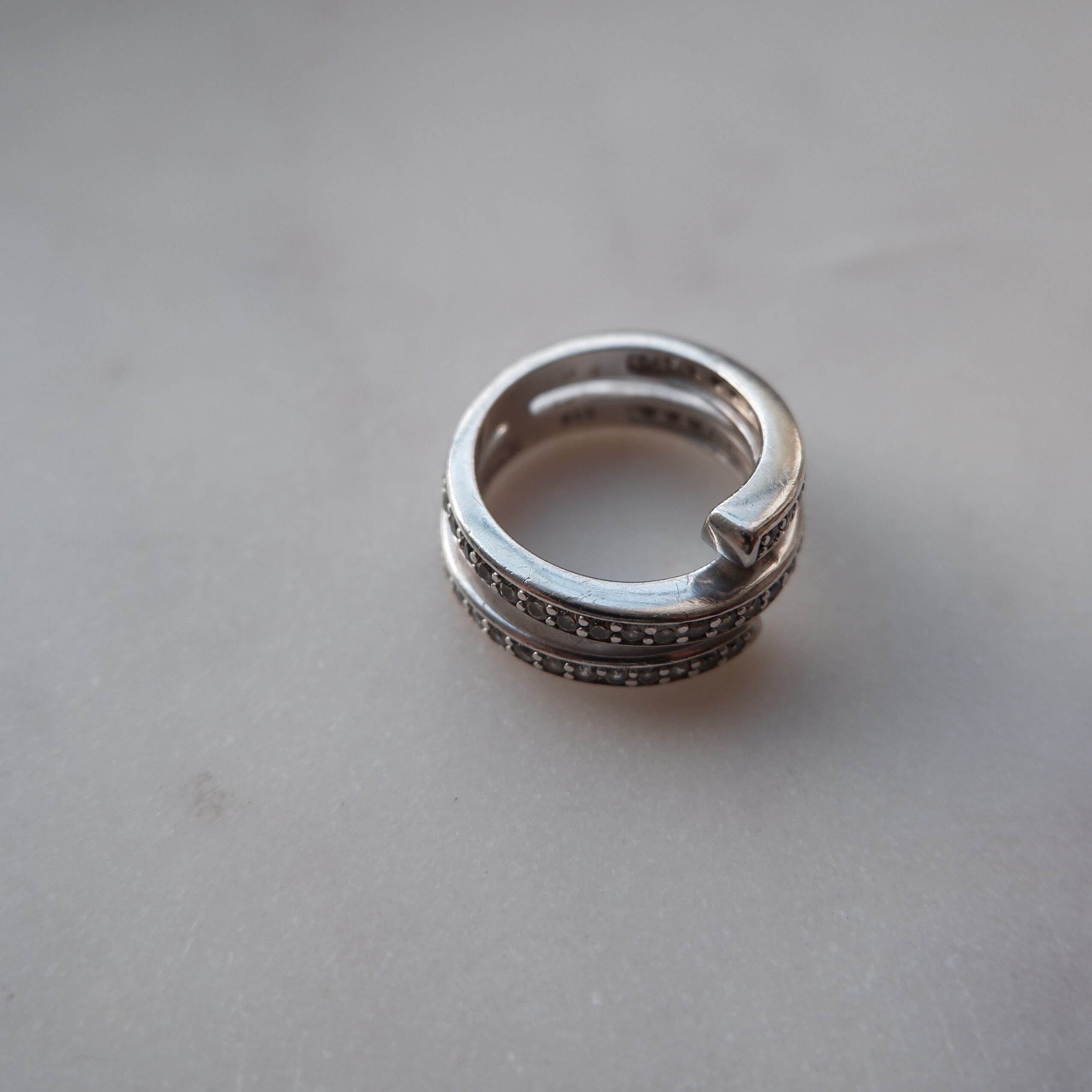 ゆったりと円を描く銀の上にはジルコニアの石が敷き詰められています。