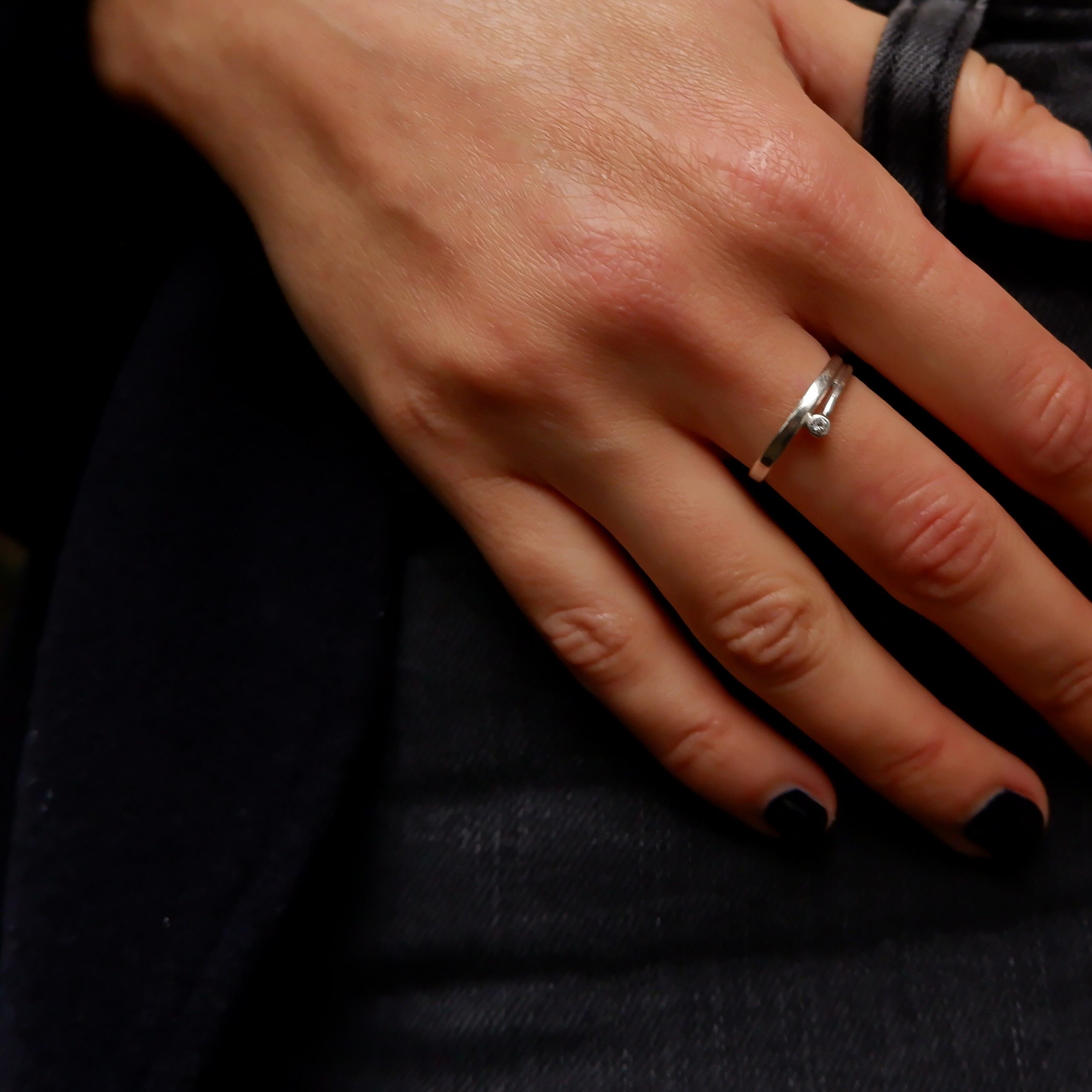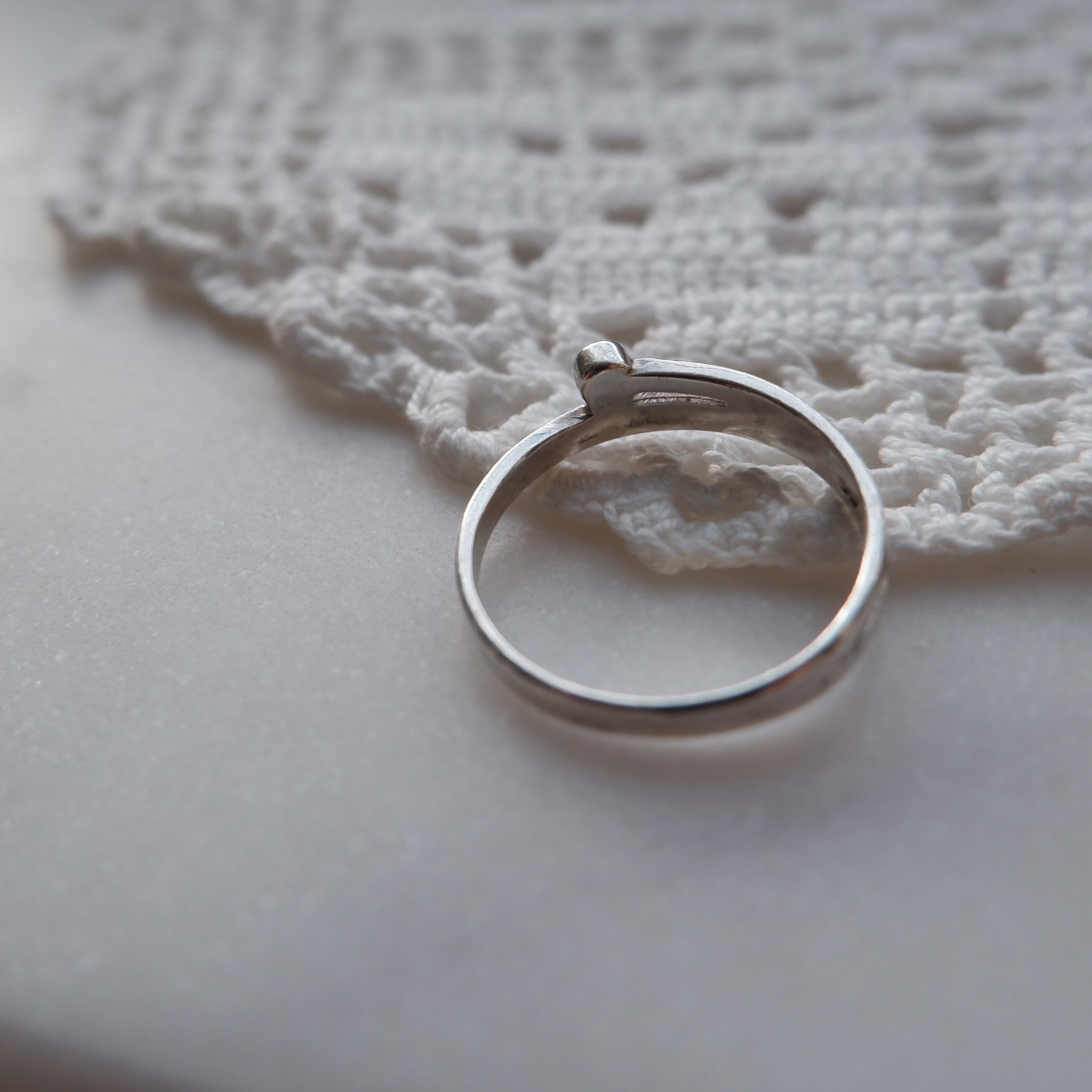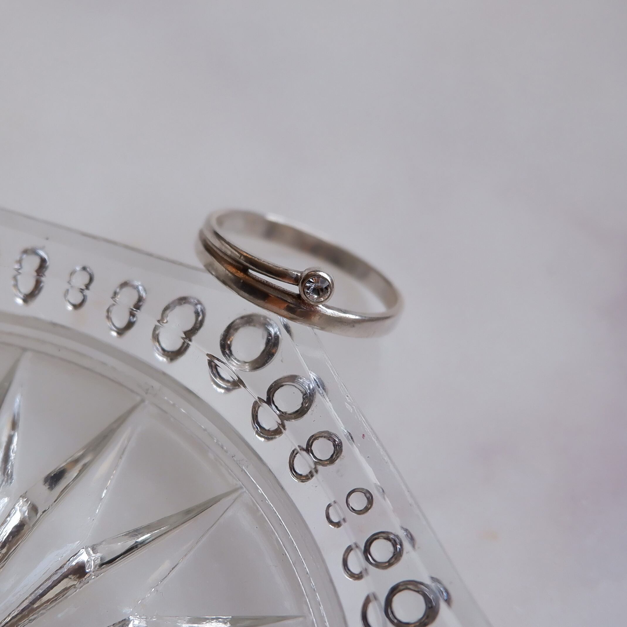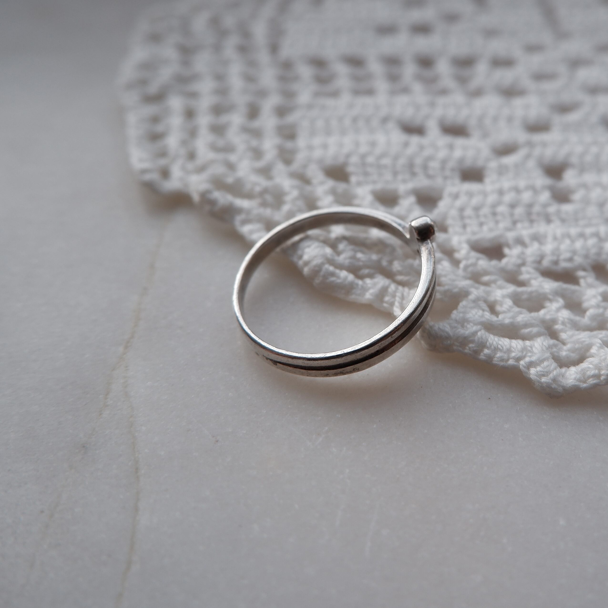 細いシルバーラインがクルッと指に巻きついた様な、可愛いデザインの一品です。