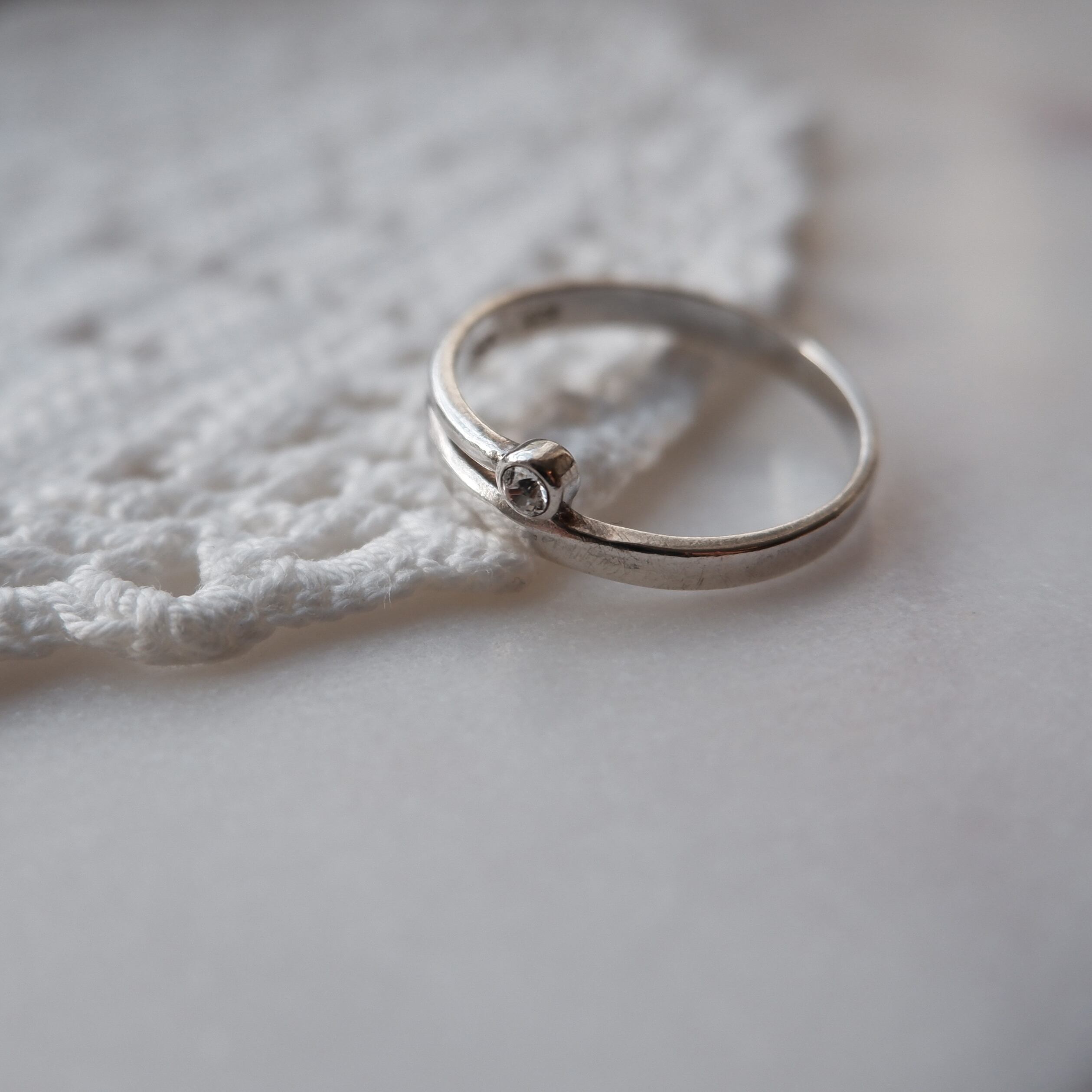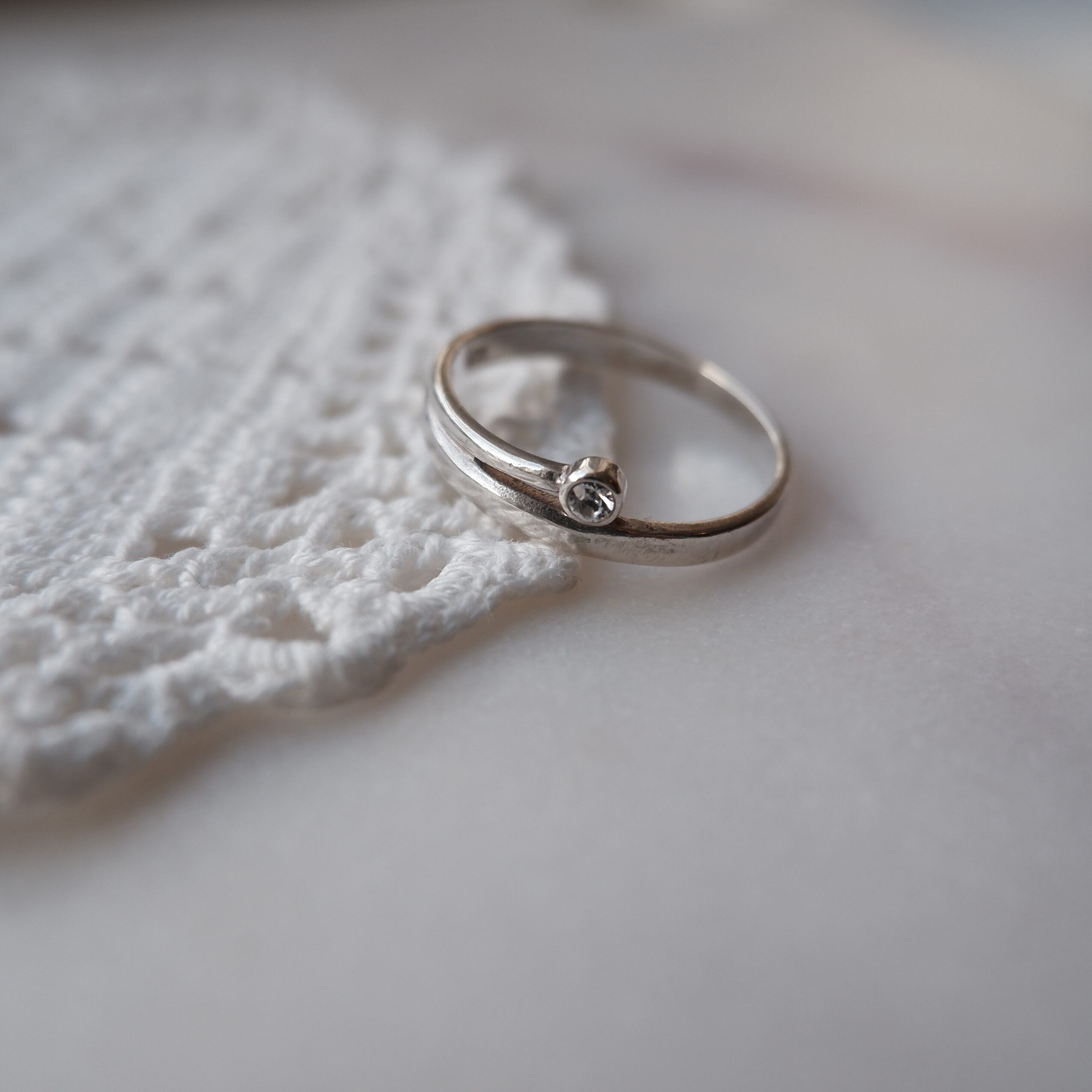 一粒のクリスタルガラスがワンポイントとなったシルバーリングです。