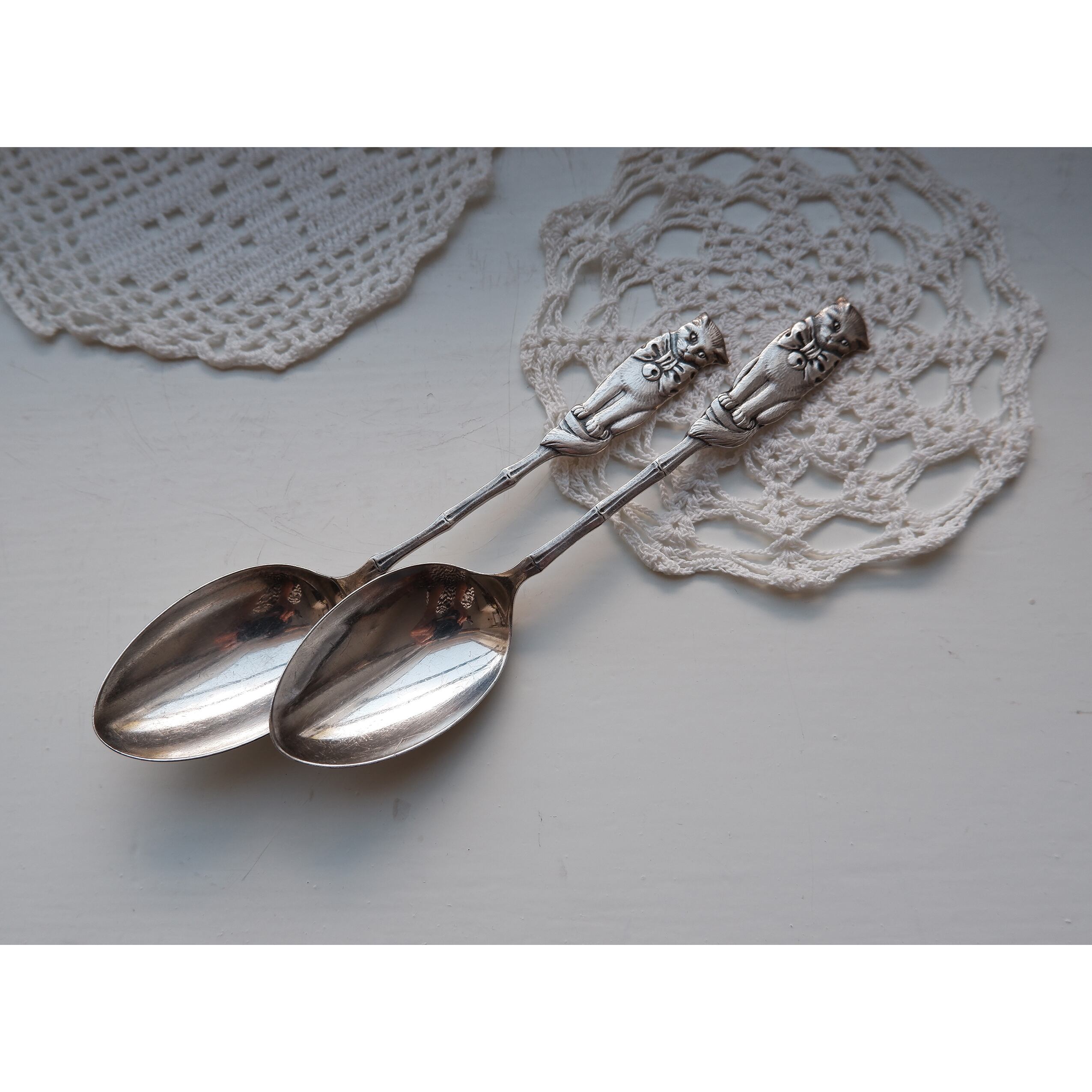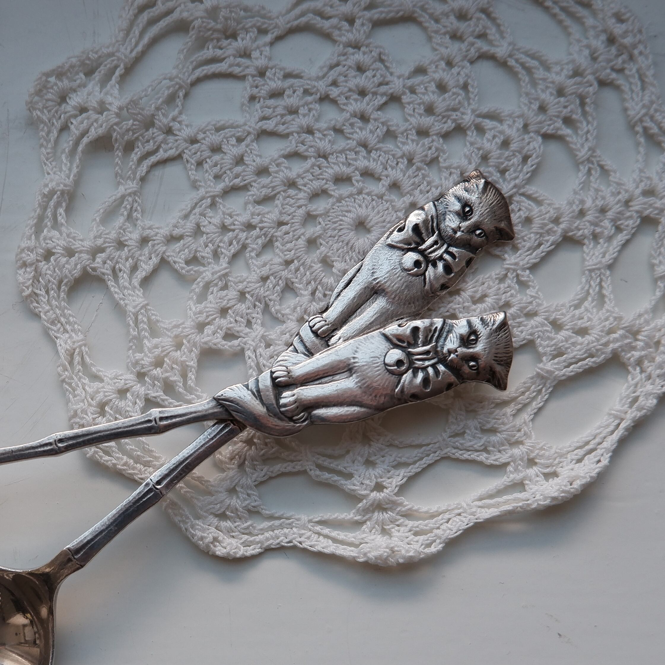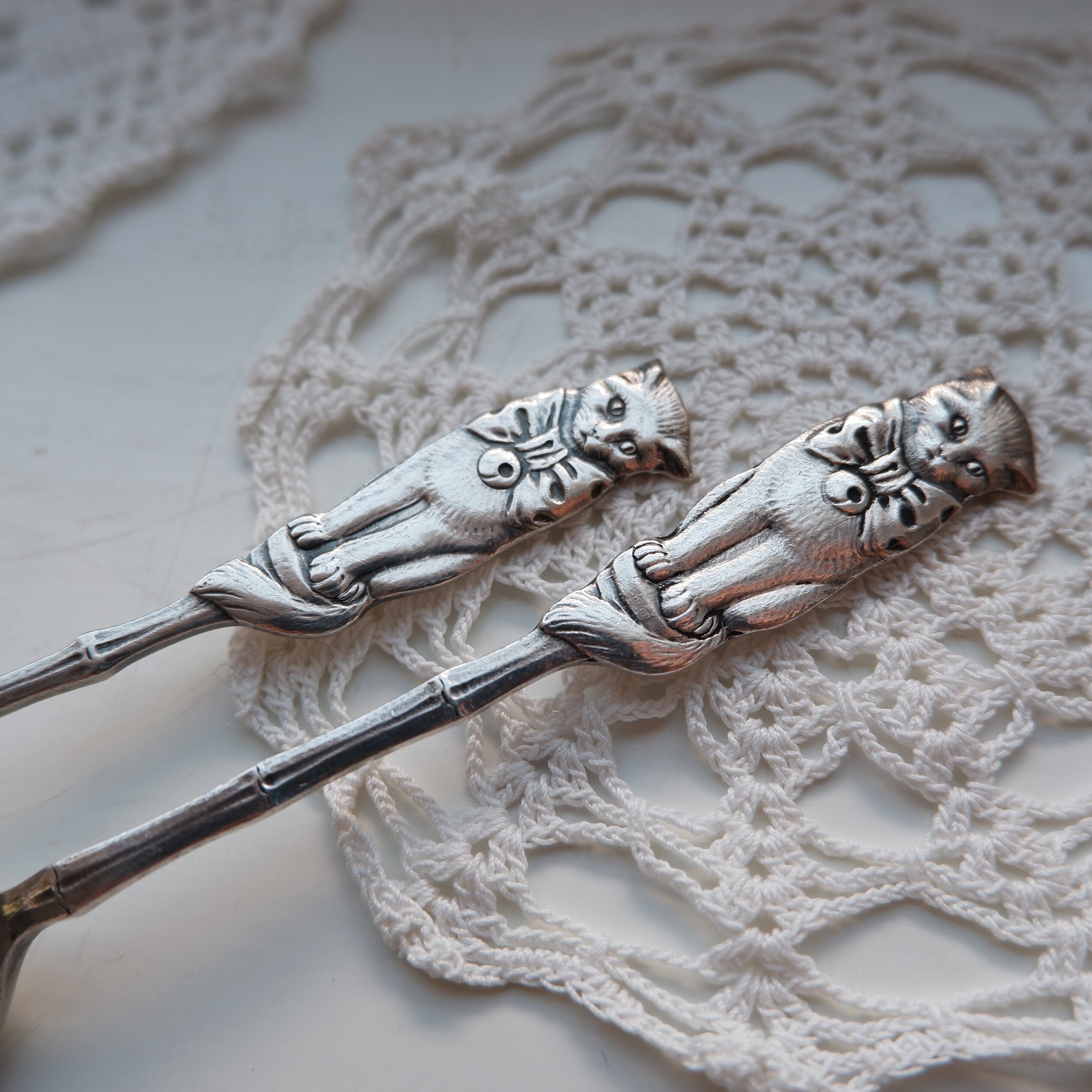 鈴をつけた猫がモチーフとなった、シルバープレート製のスプーンセットです。