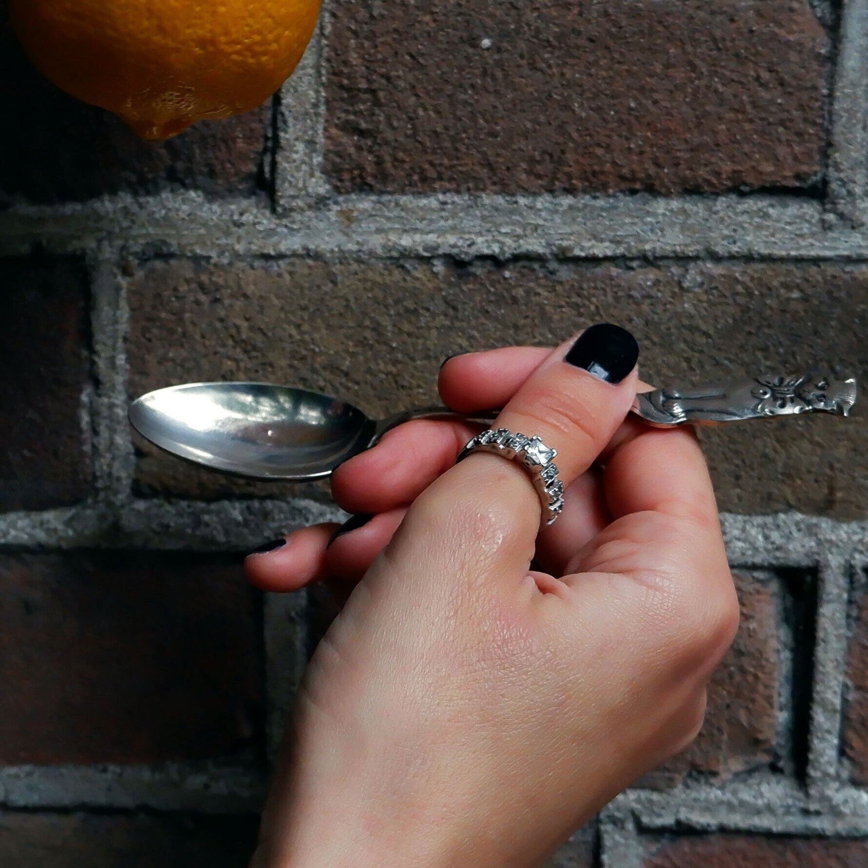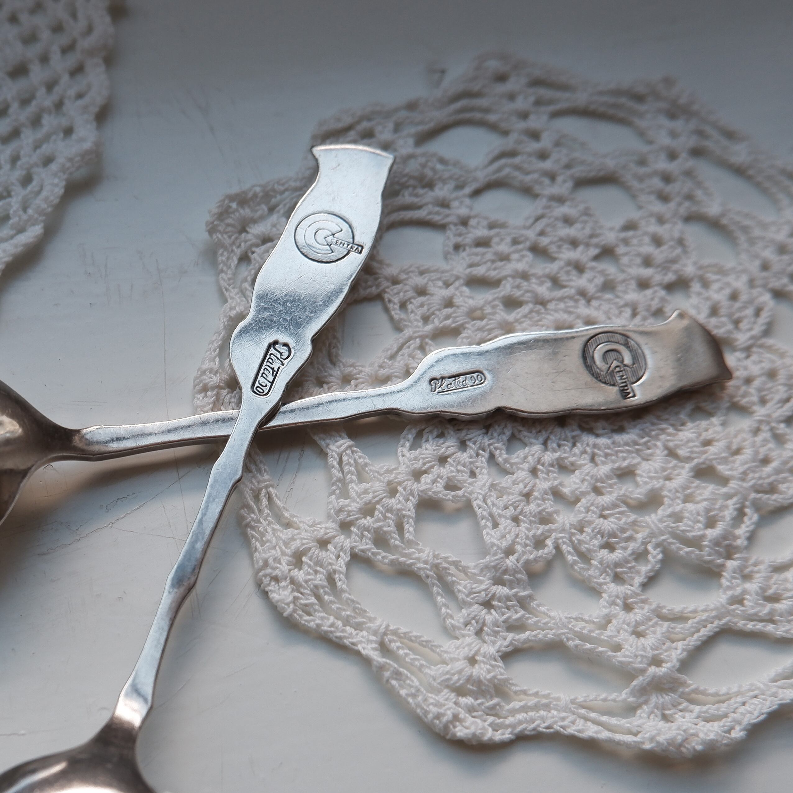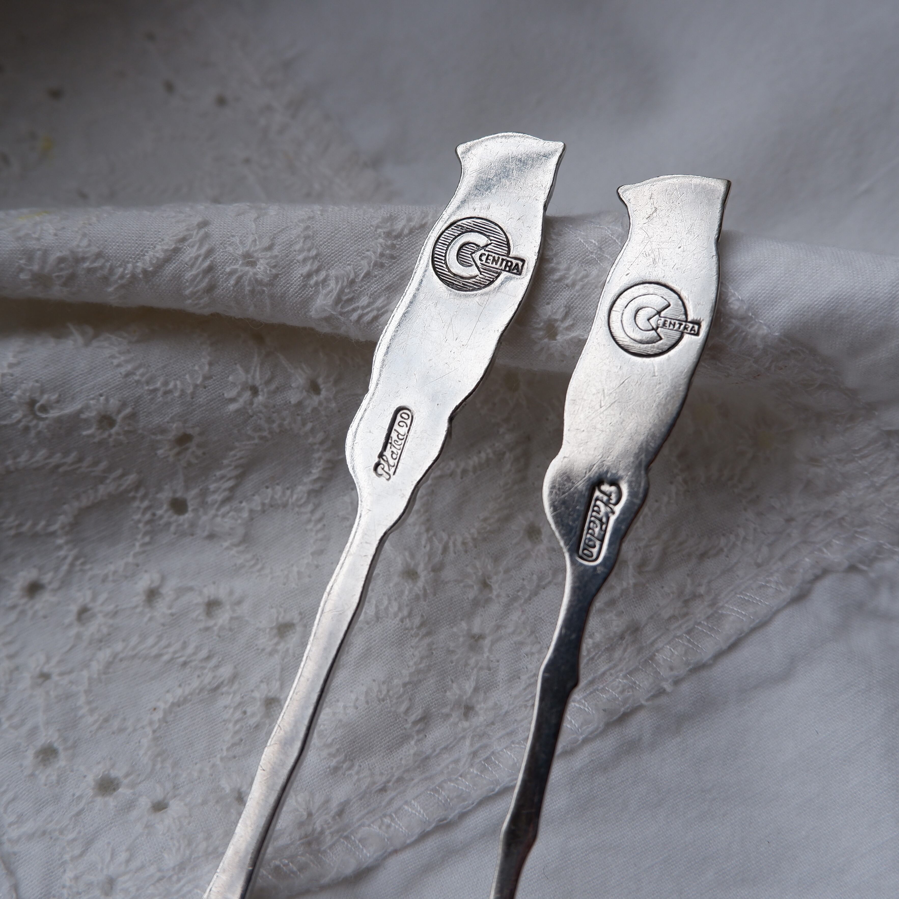 鈴をつけた猫がモチーフとなった、シルバープレート製のスプーンセットです。