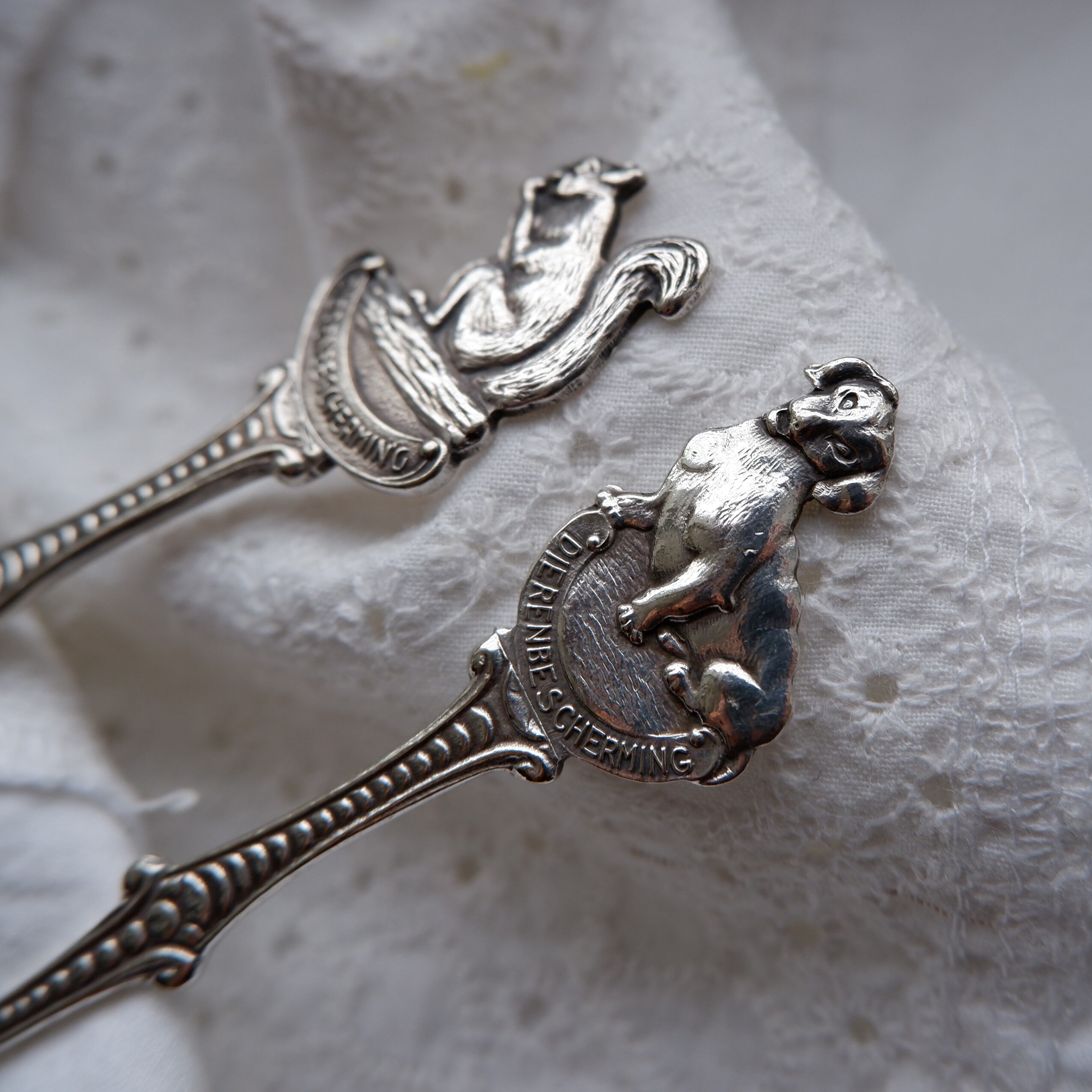 リスと犬がモチーフとなった、シルバープレート製のスプーンセットです。