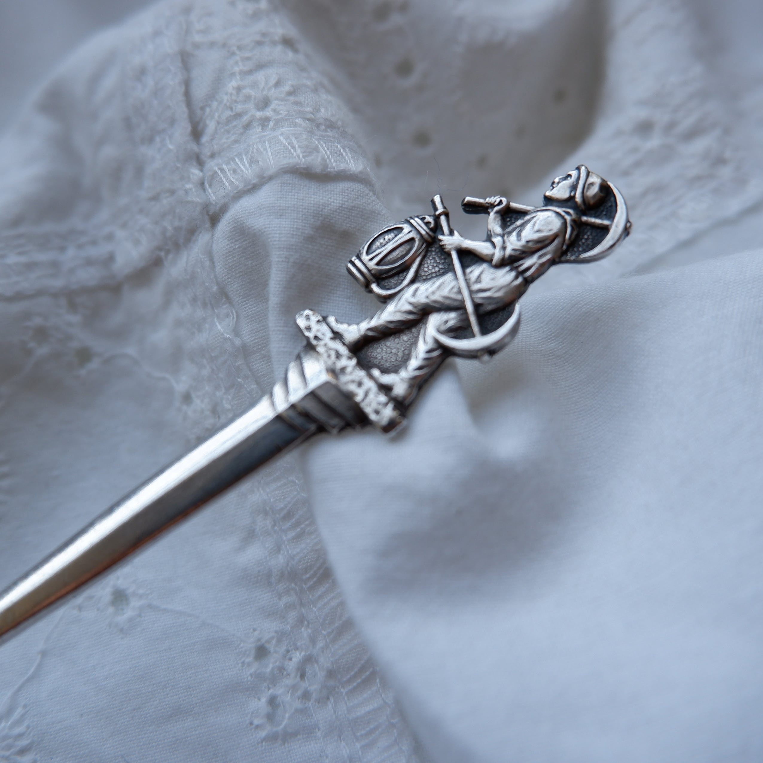 働く炭鉱員の姿が描かれた、シルバープレート製のティースプーンです。