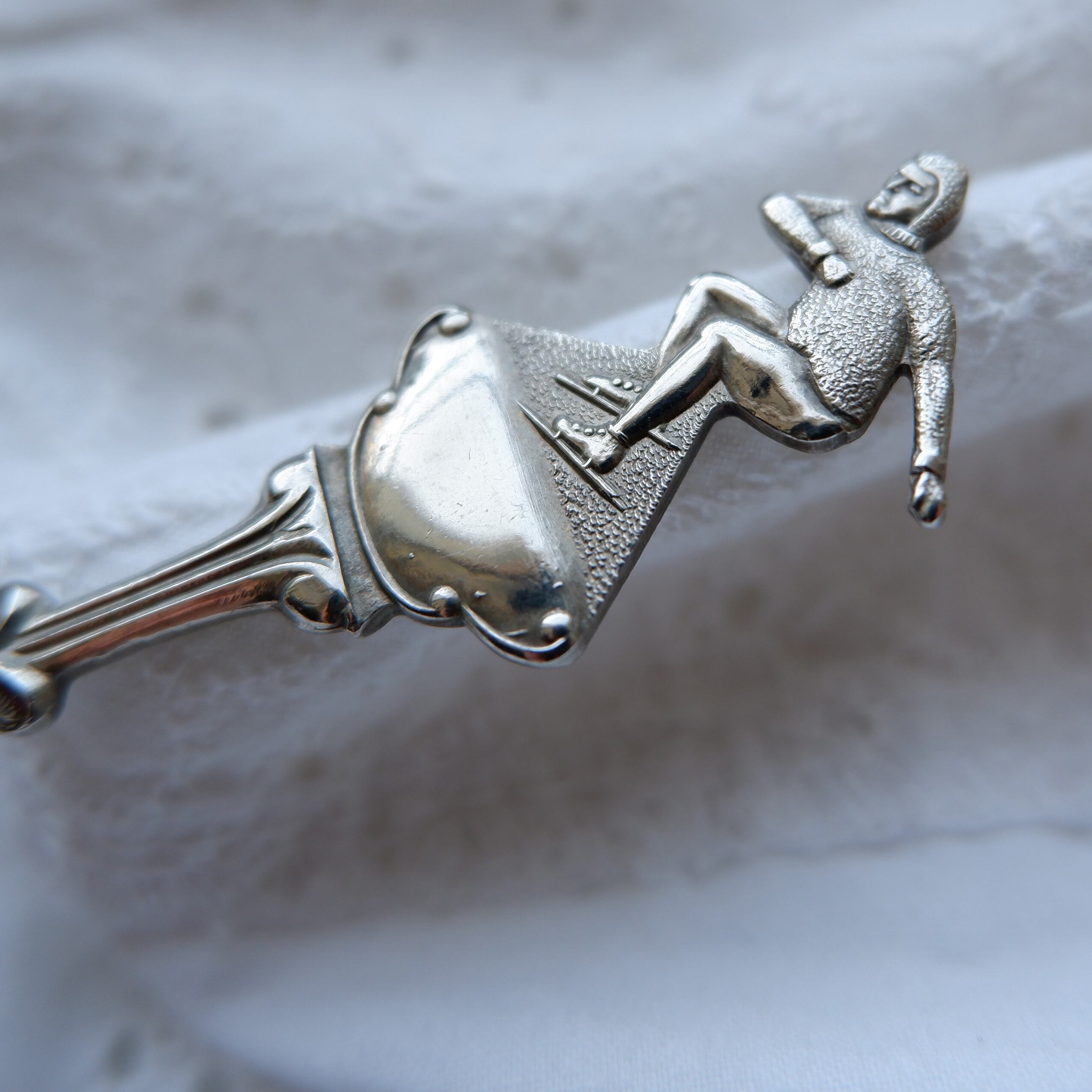 スキーをする人がモチーフとなった、シルバープレート製のティースプーンです。