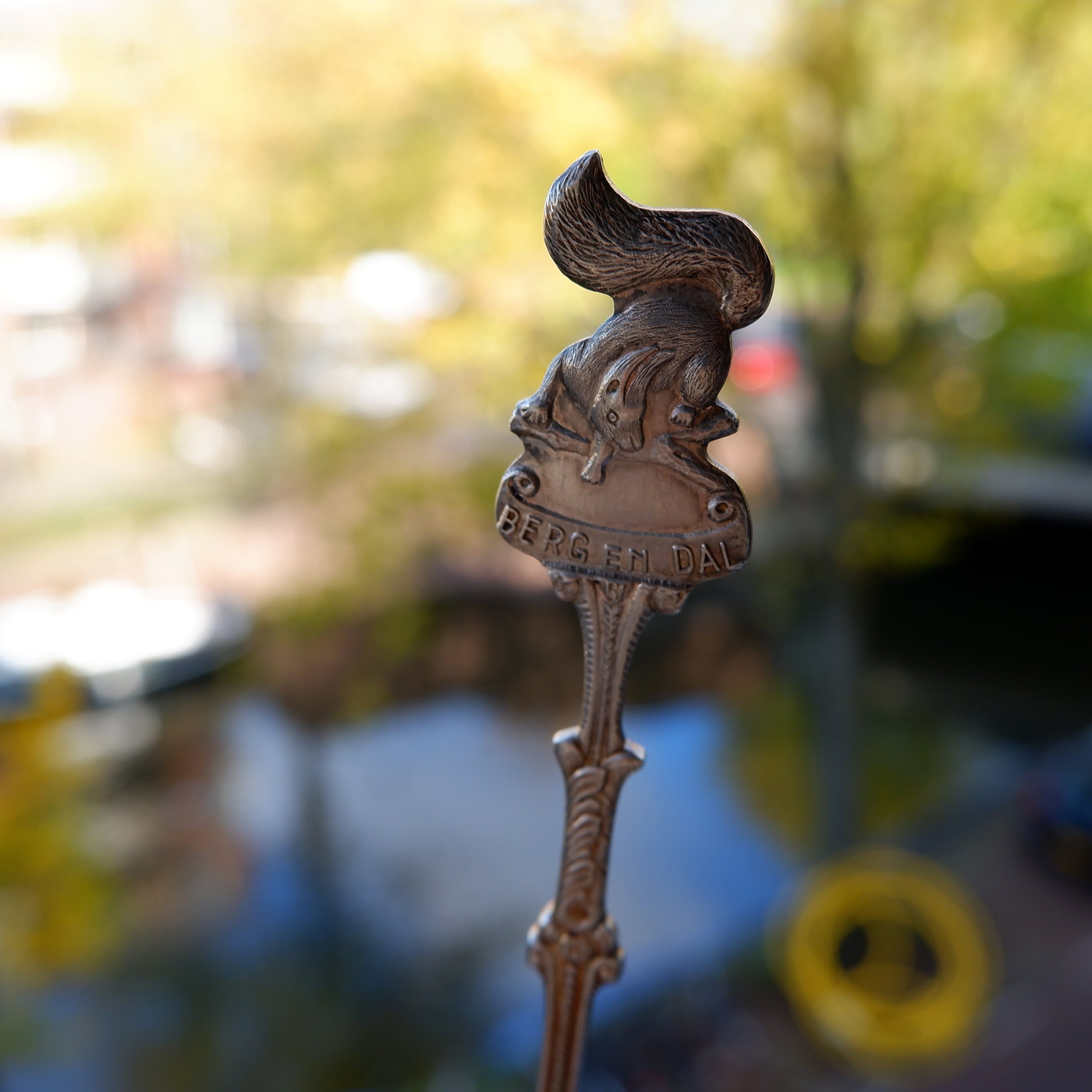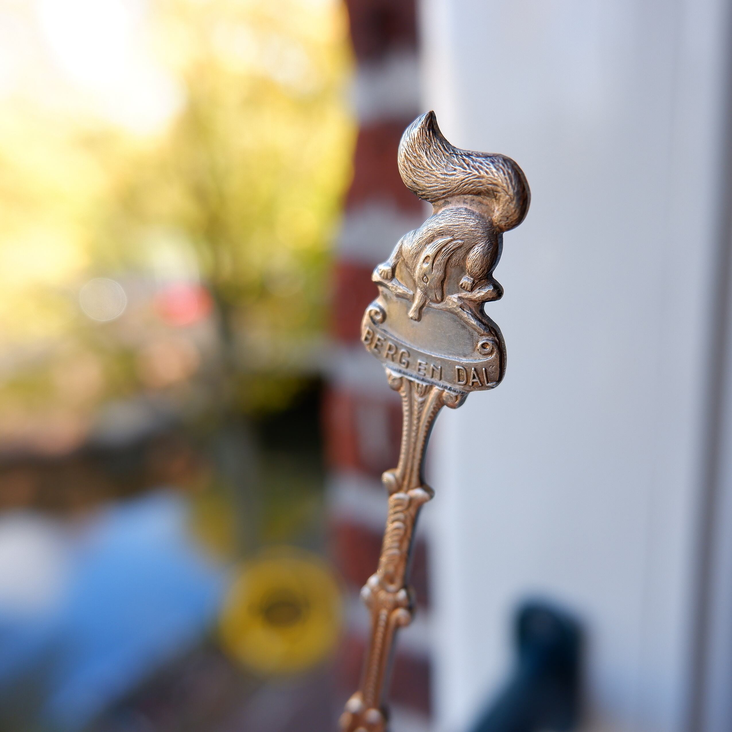 今にも木から飛び降りて来そうなリスがモチーフとなったシルバープレート製のスプーンです。