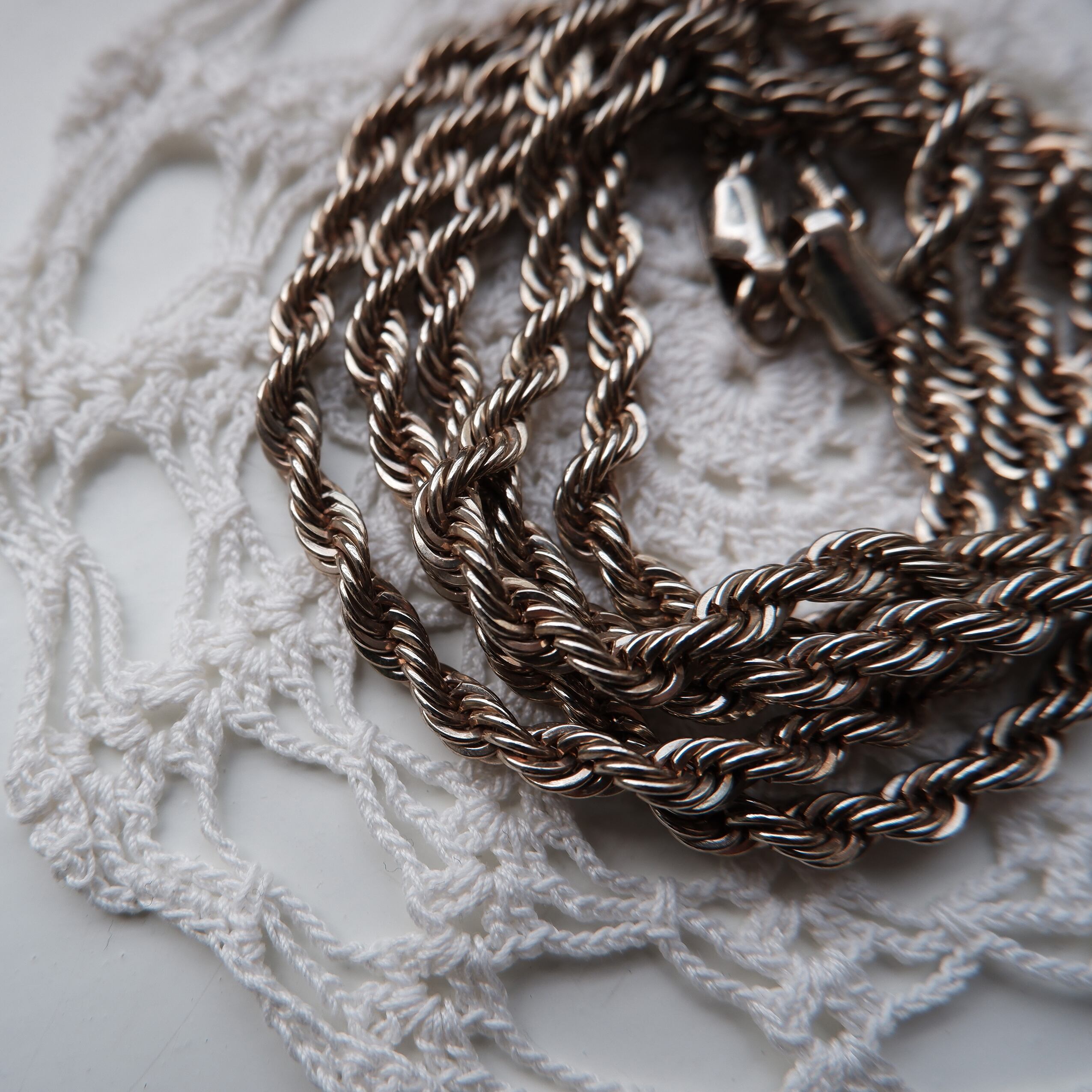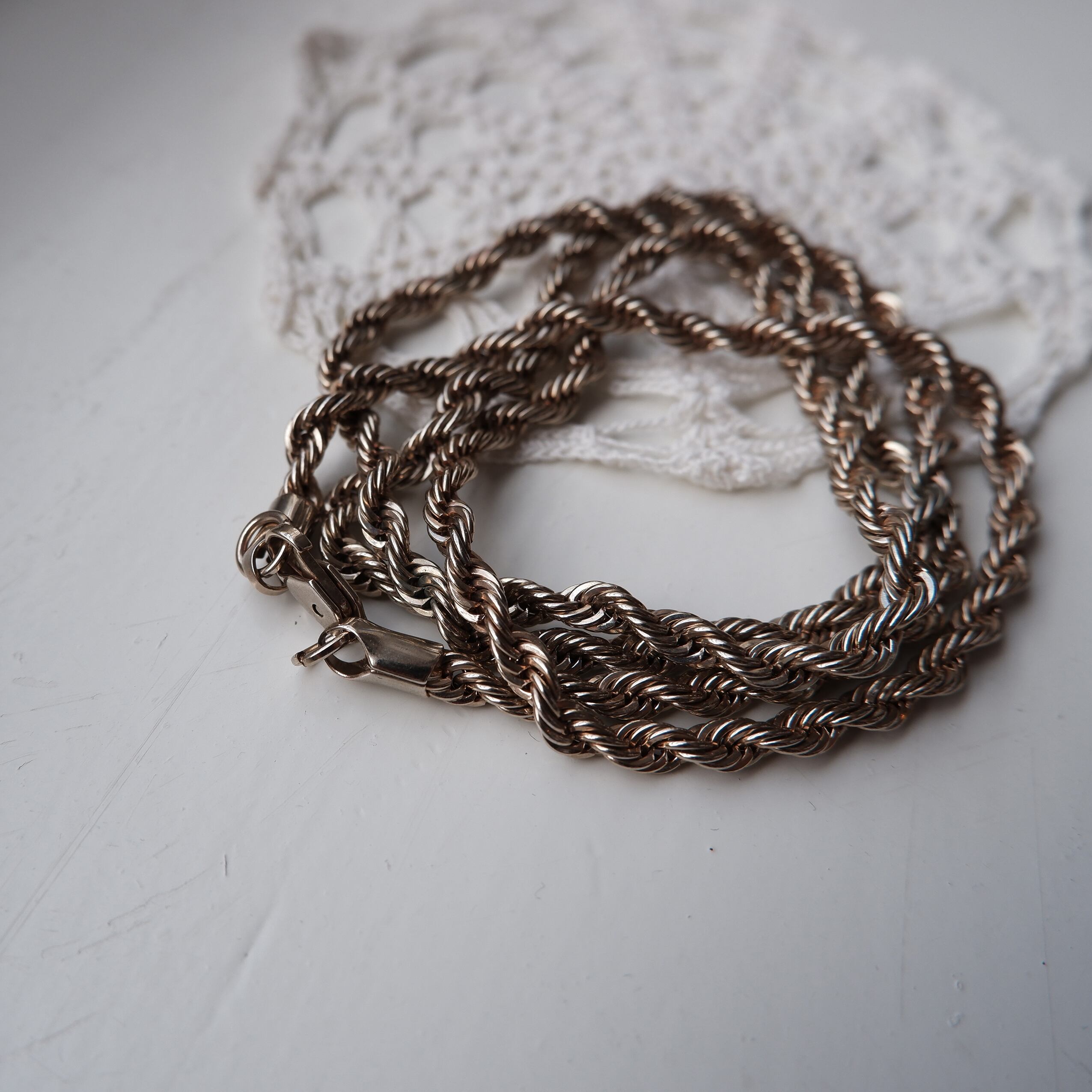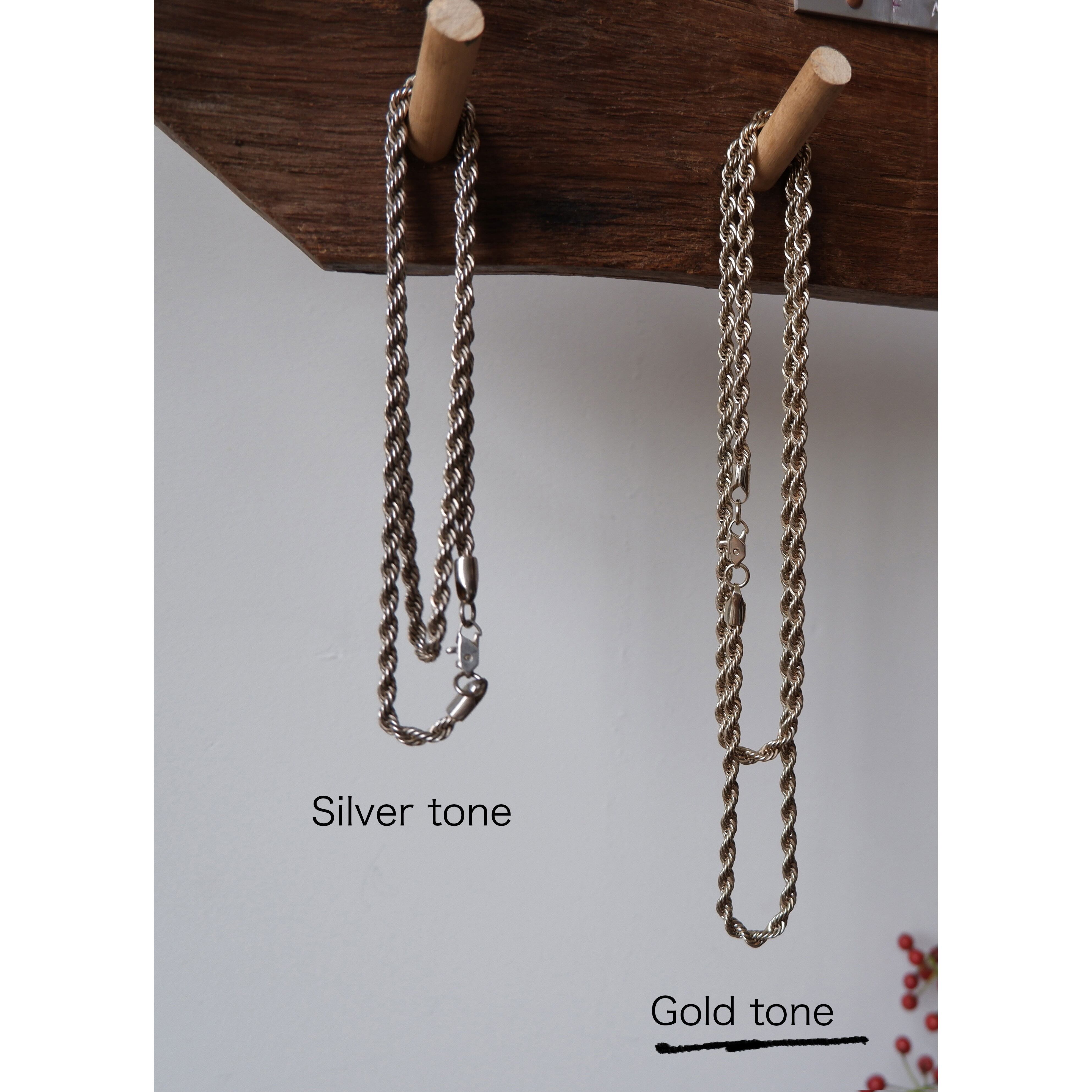 ロープの様な捻れた造りのチェーンで首元へシックなアクセントをもたらしてくれます。