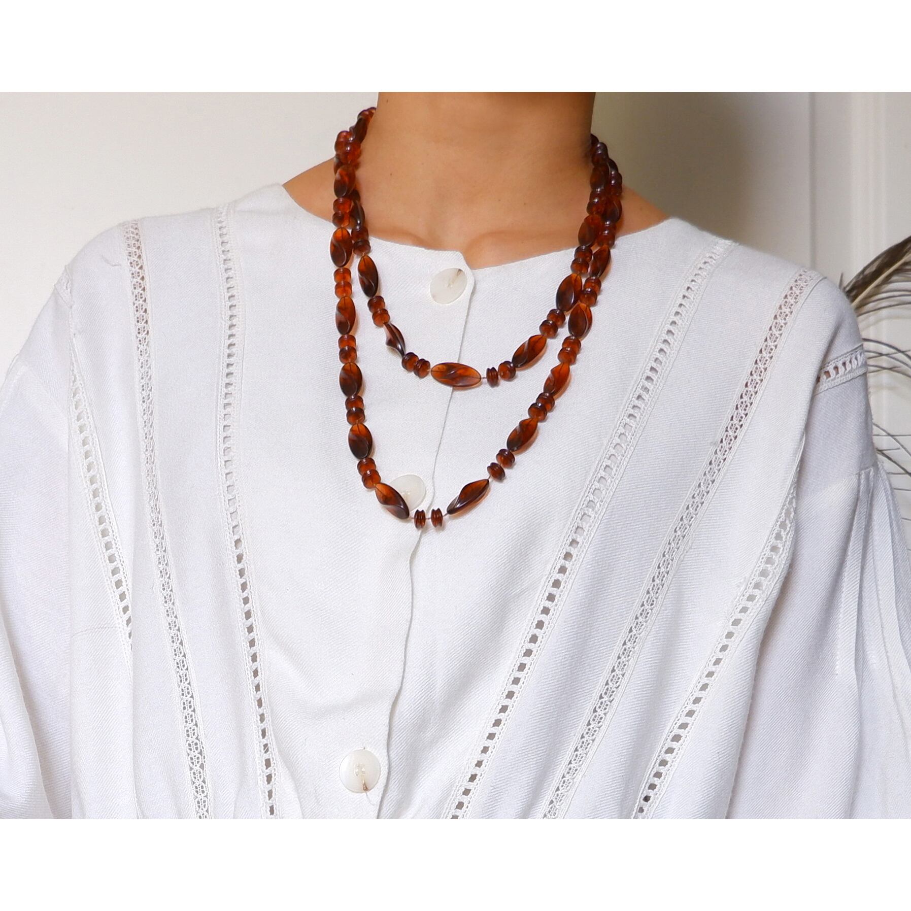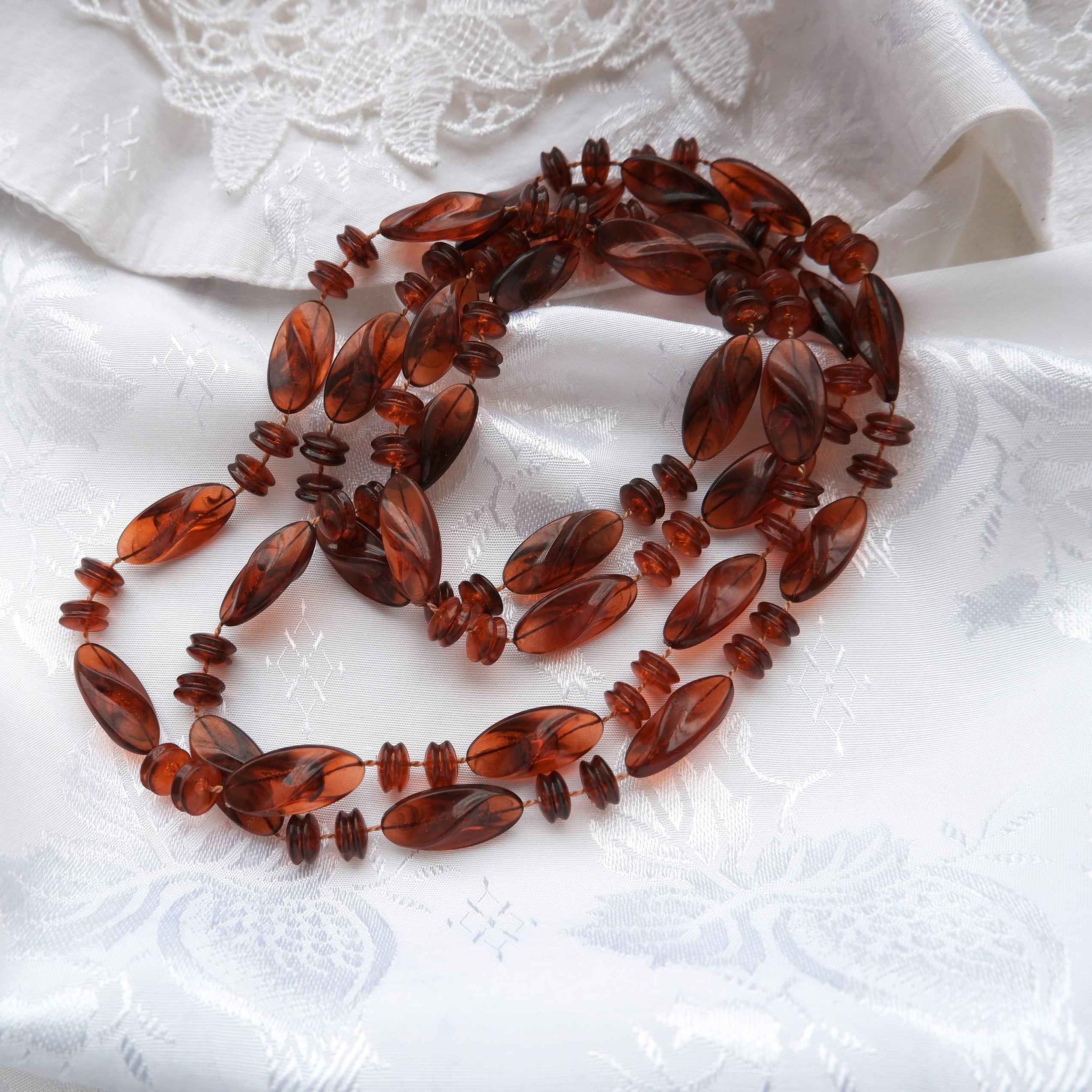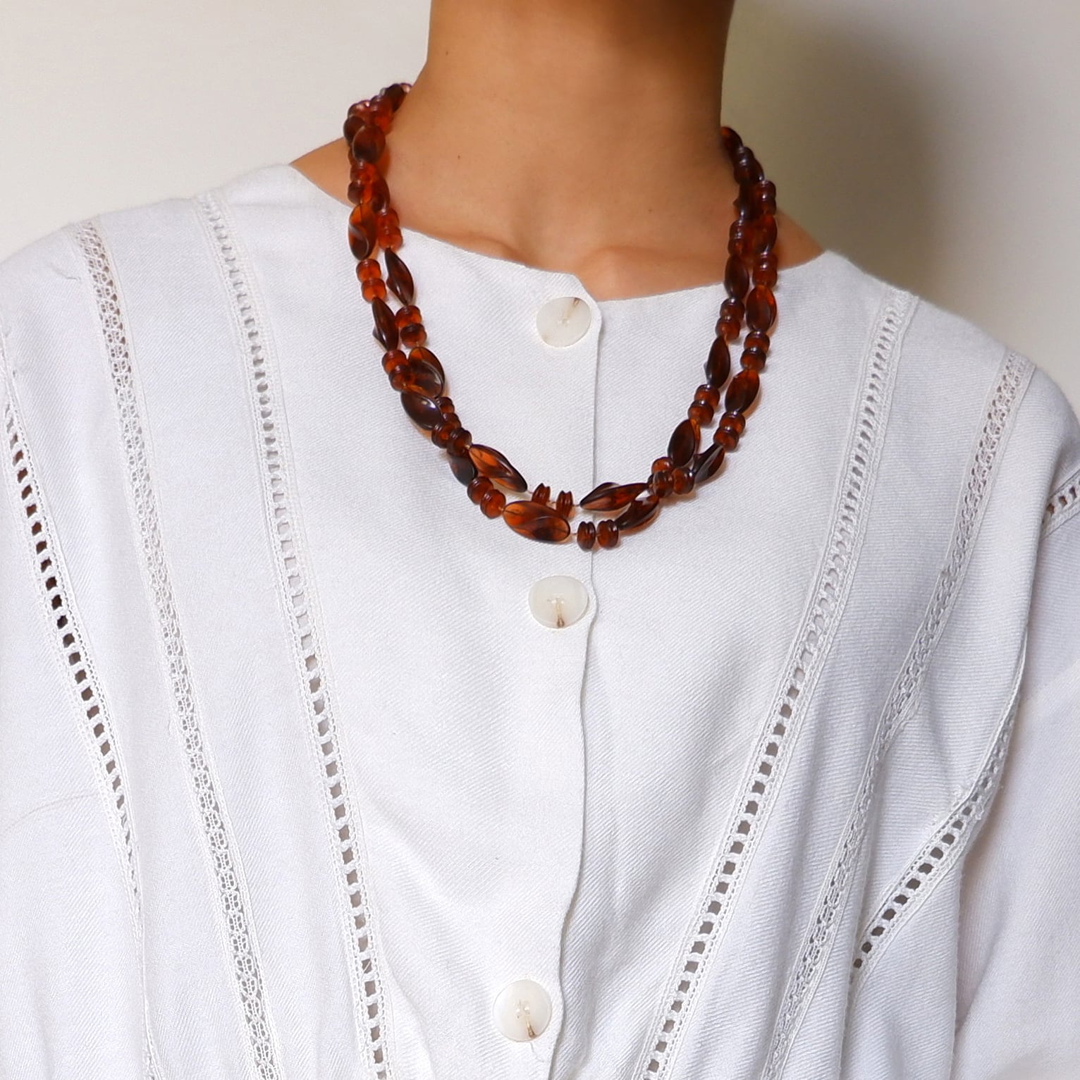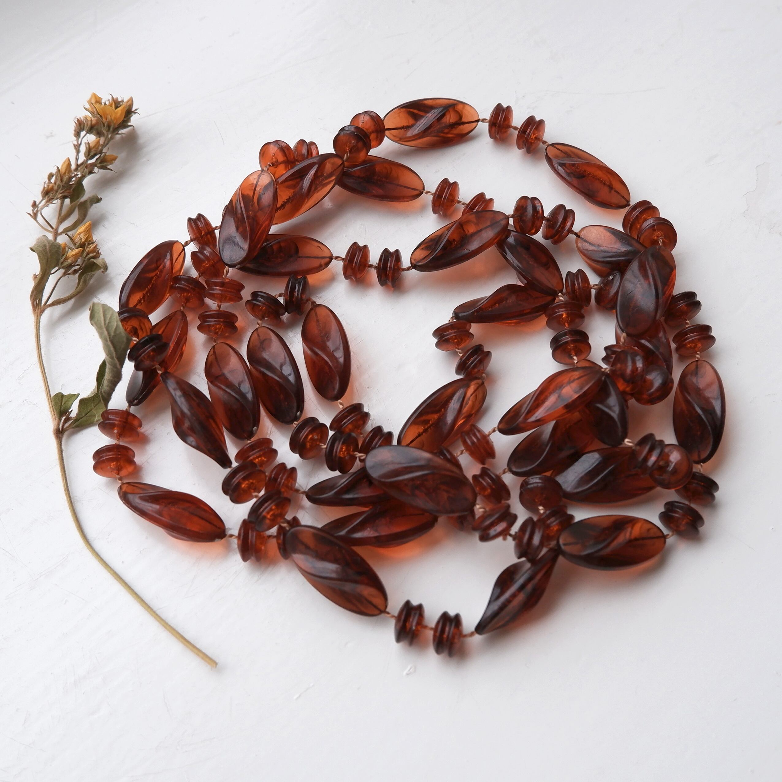 ヴィンテージ樹脂のロングネックレス (fur-37)
