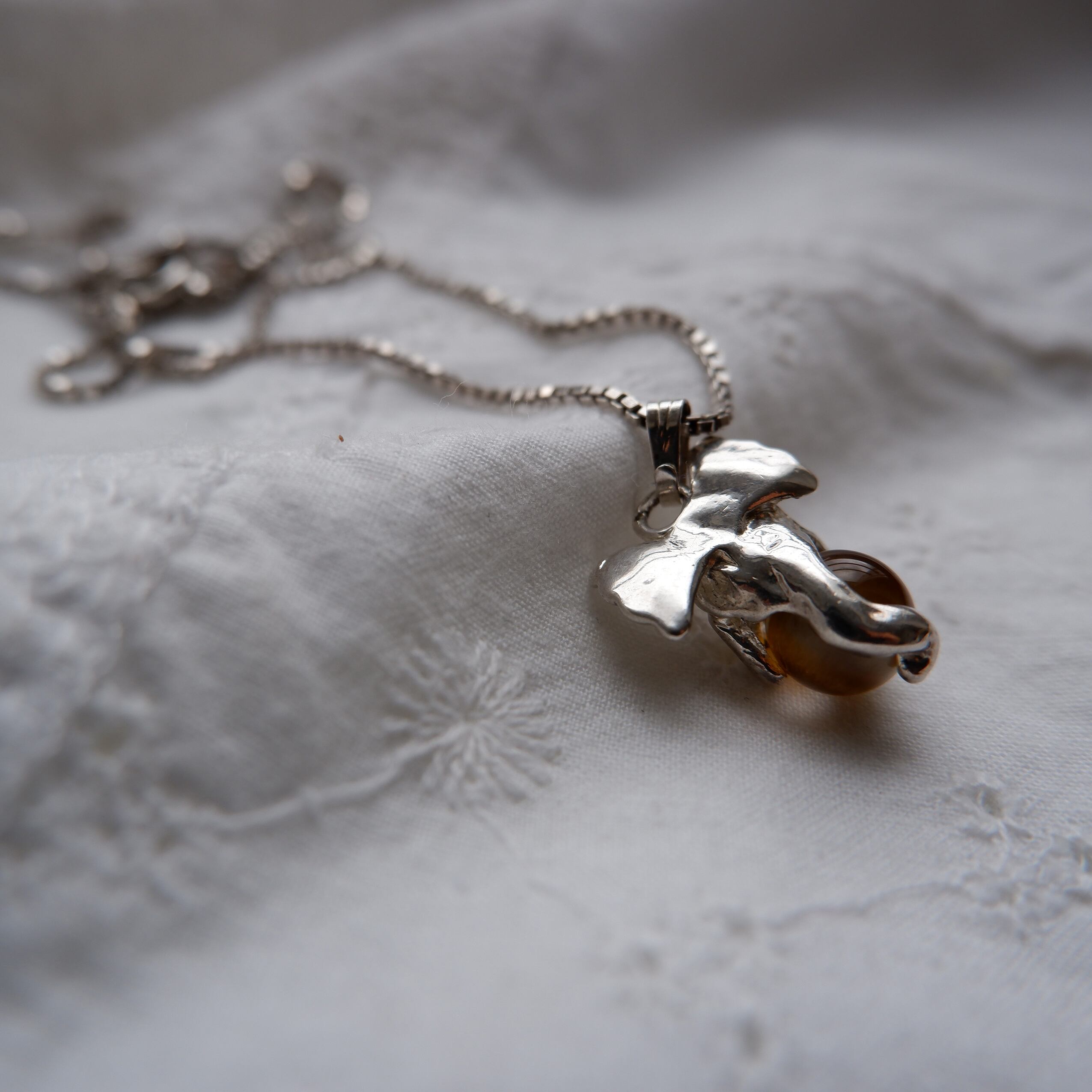 石の上に身をゆだねる、可愛いらしいデザインの一品です。