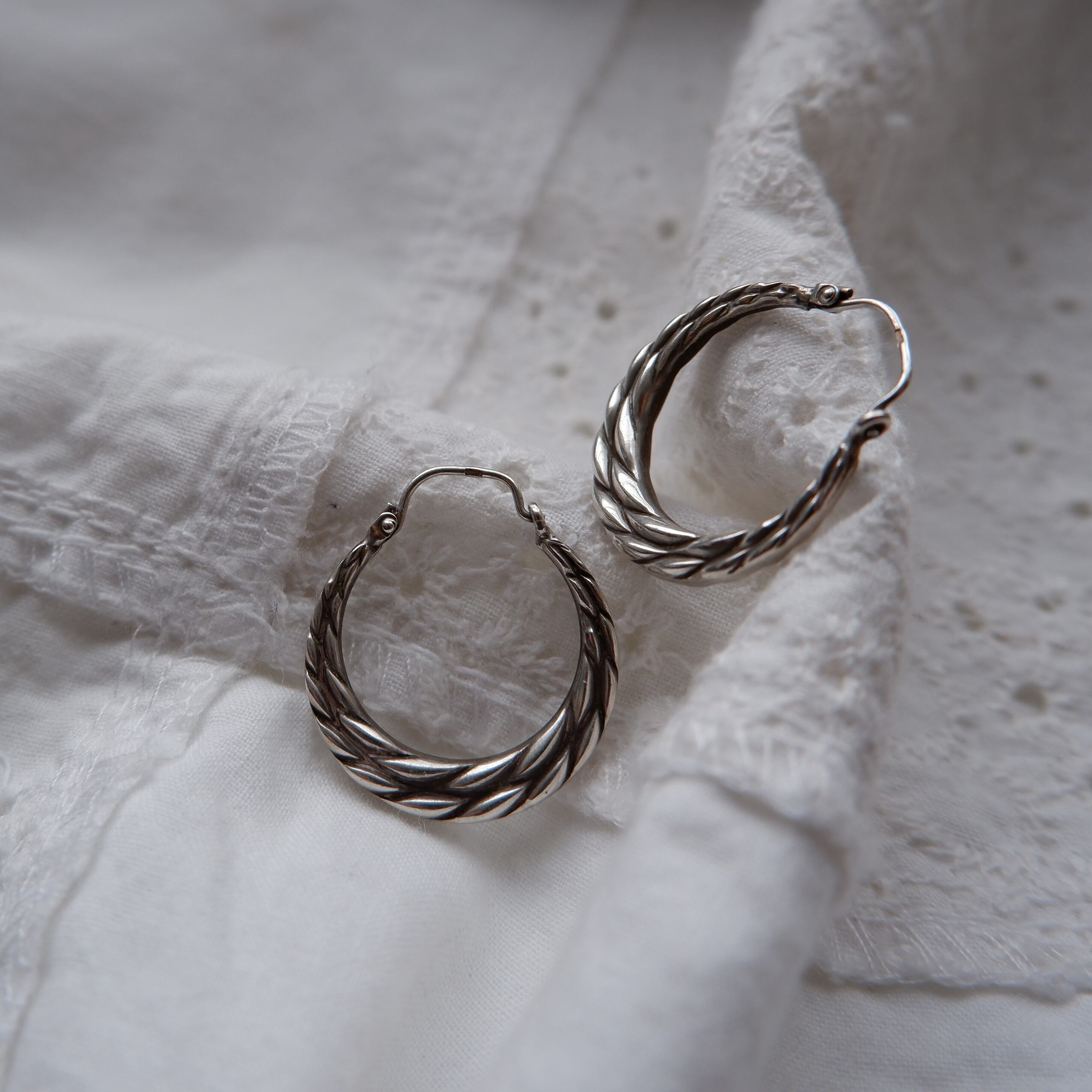 70'sドイツ製 ロープの彫金フープピアス (fur-60)