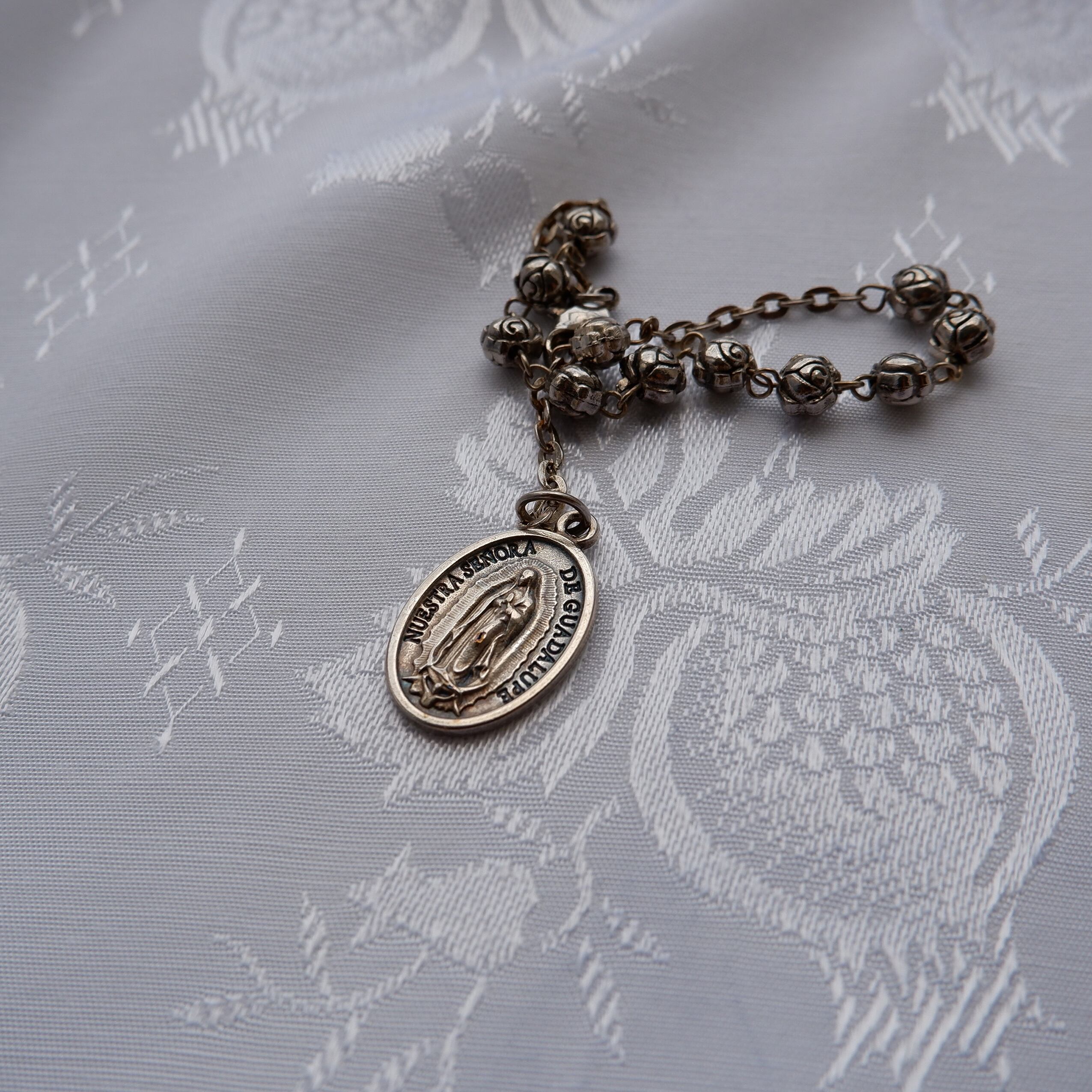 ペンダントの聖母の名は、「グアダルーペの聖母 (Nuestra Señora de Guadalupe) 」。バチカンで公認された、メキシコ・グアダルーペに現れた聖母です。