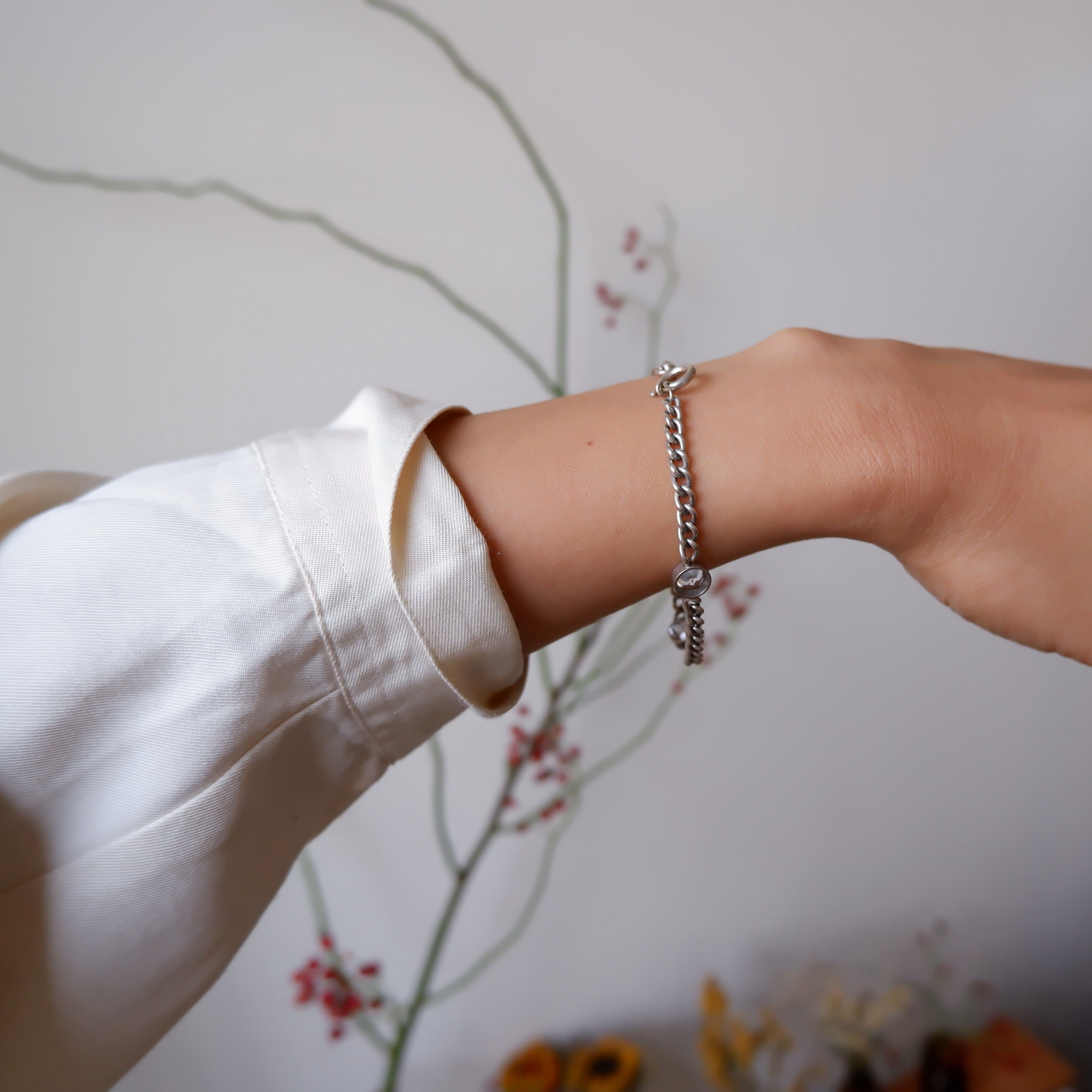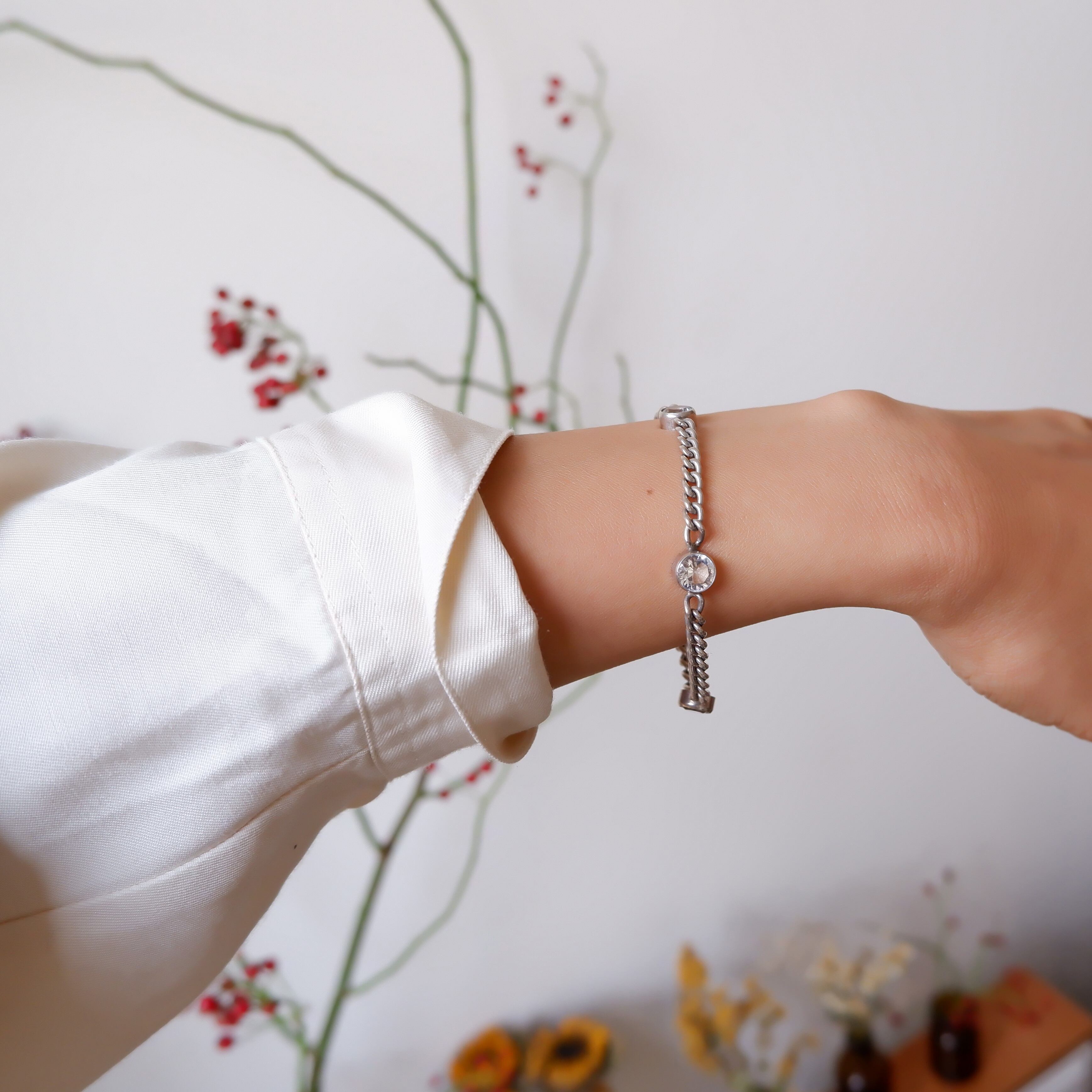 クリスタルガラスがモチーフとなった、シルバー製のヴィンテージブレスレットです。