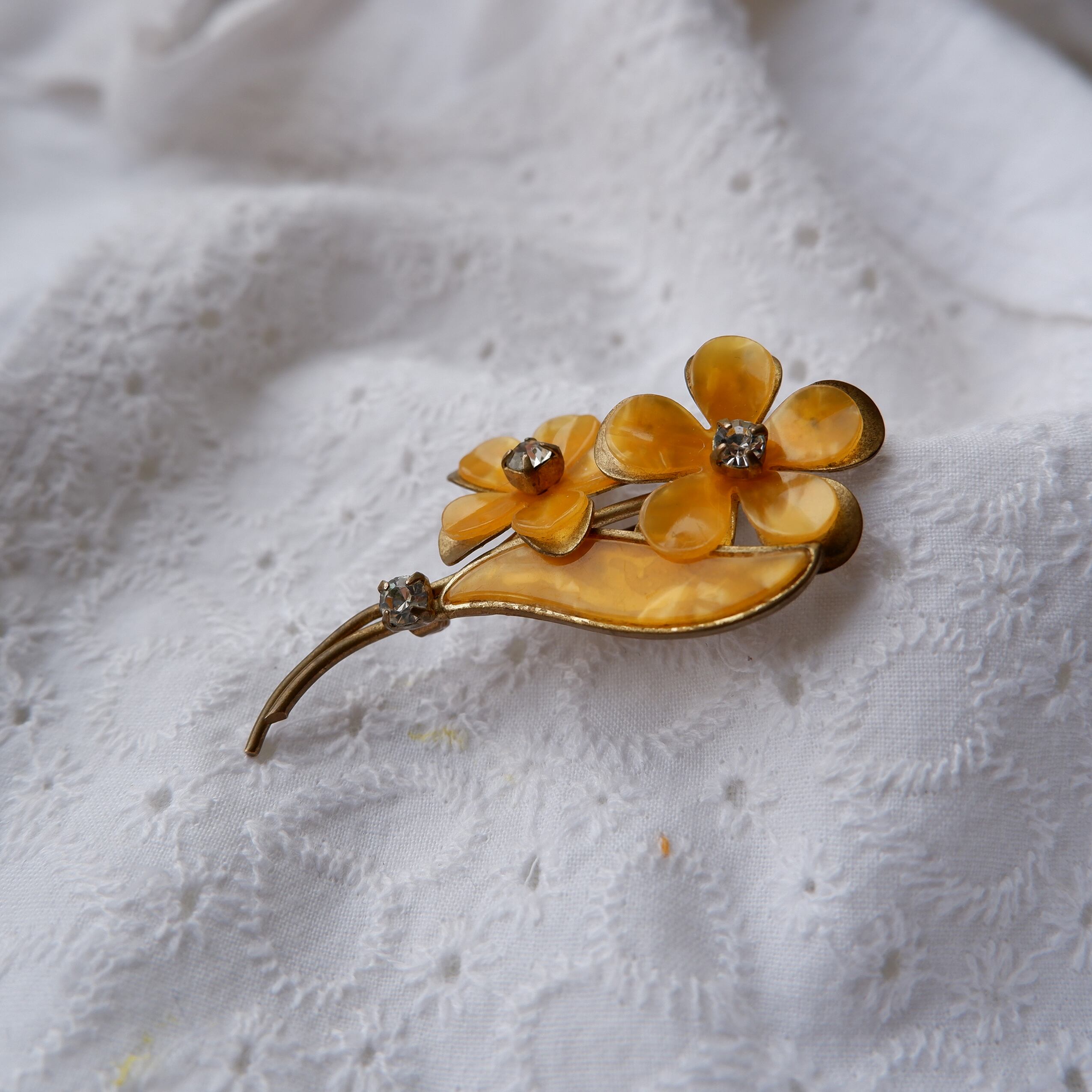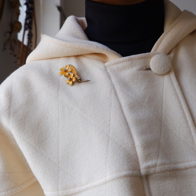 こっくりとした古い時代の合金の色に、セルロイドの繊細な風合いと少し大きめのビジュー。手にしていると、当時のヨーロッパの風景が浮かんでくるよう。趣きのある素敵な一品です。