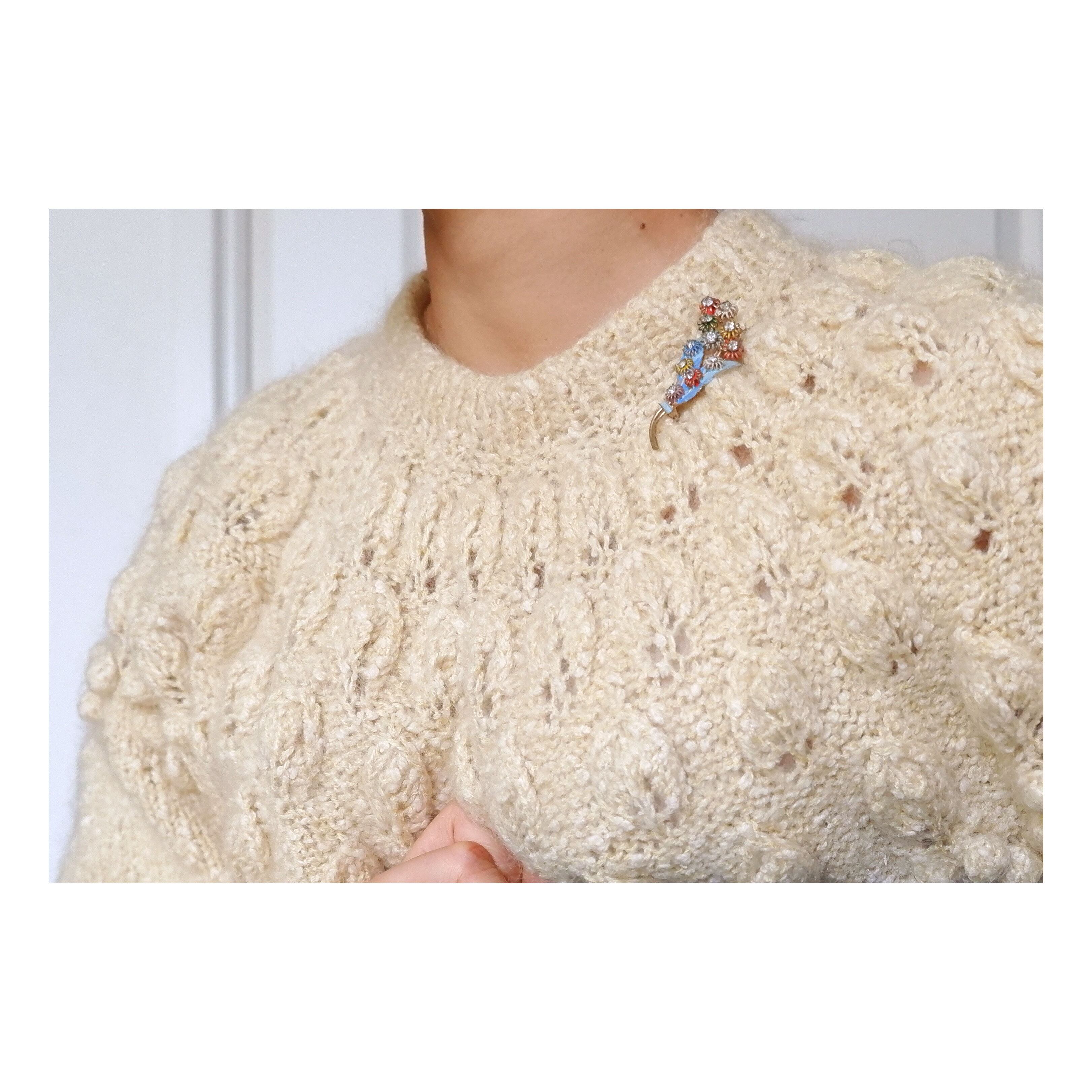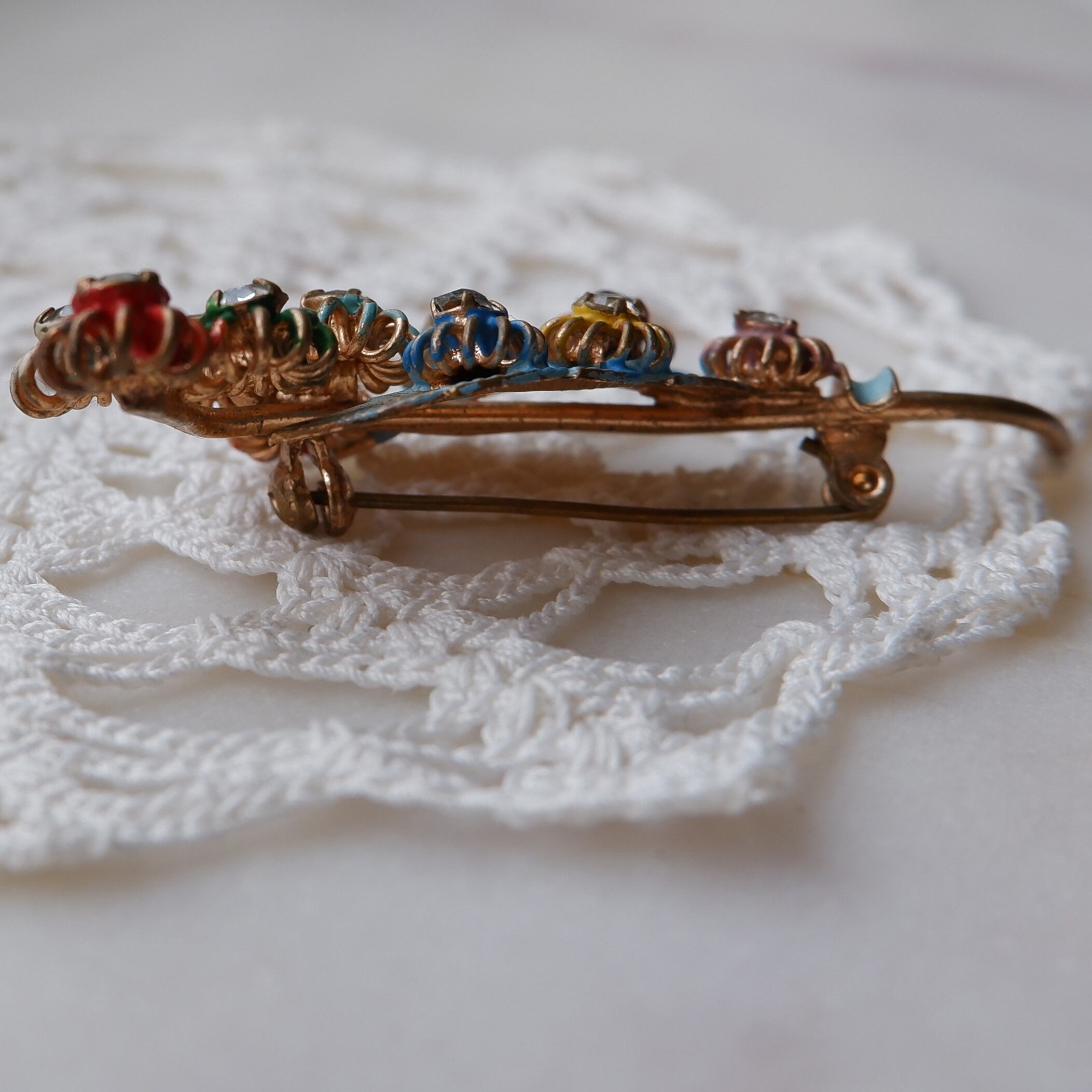 彫金と鮮やかな彩色の手仕事の跡など、古い時代に作られたアクセサリー特有の細かなディテールが味わえる一品です。