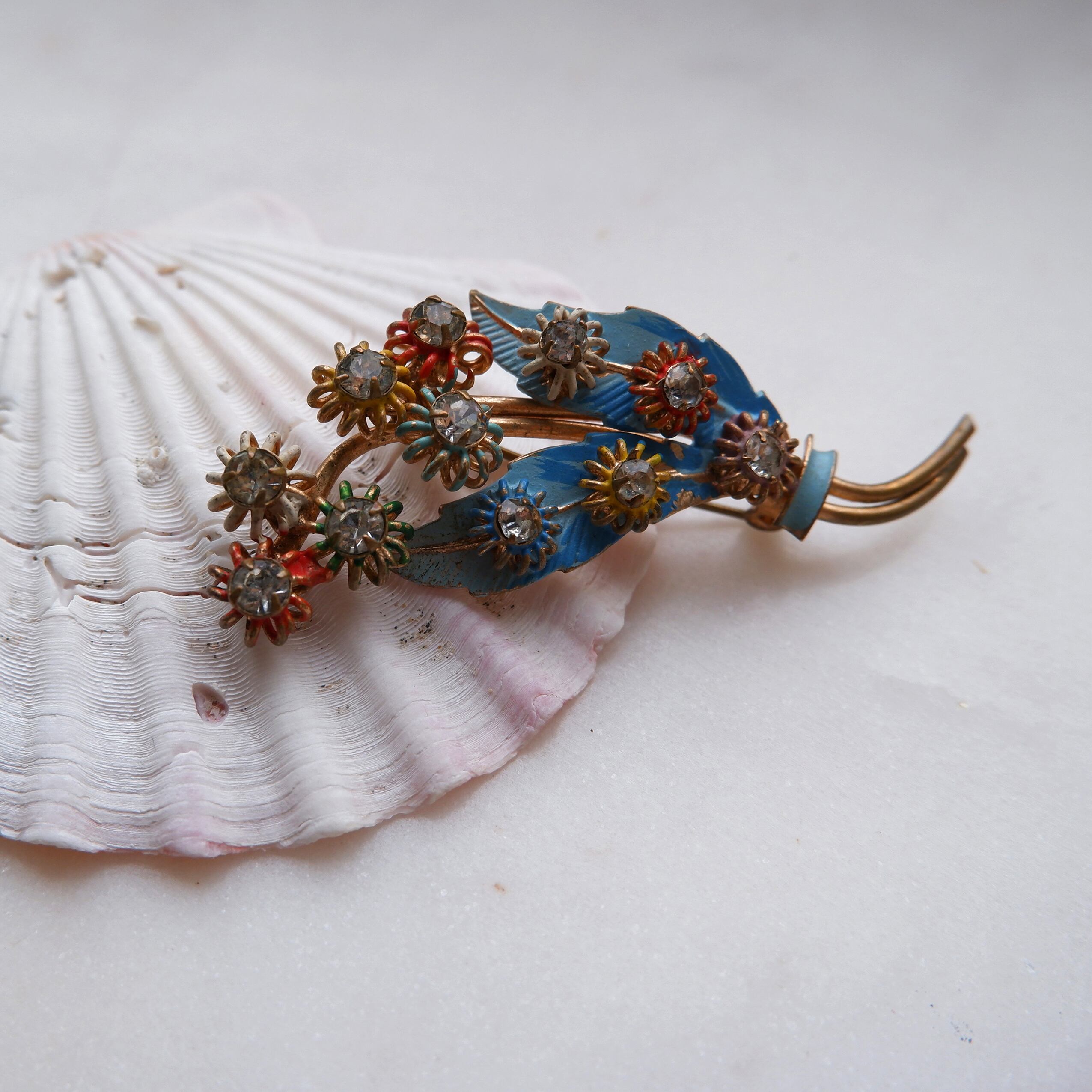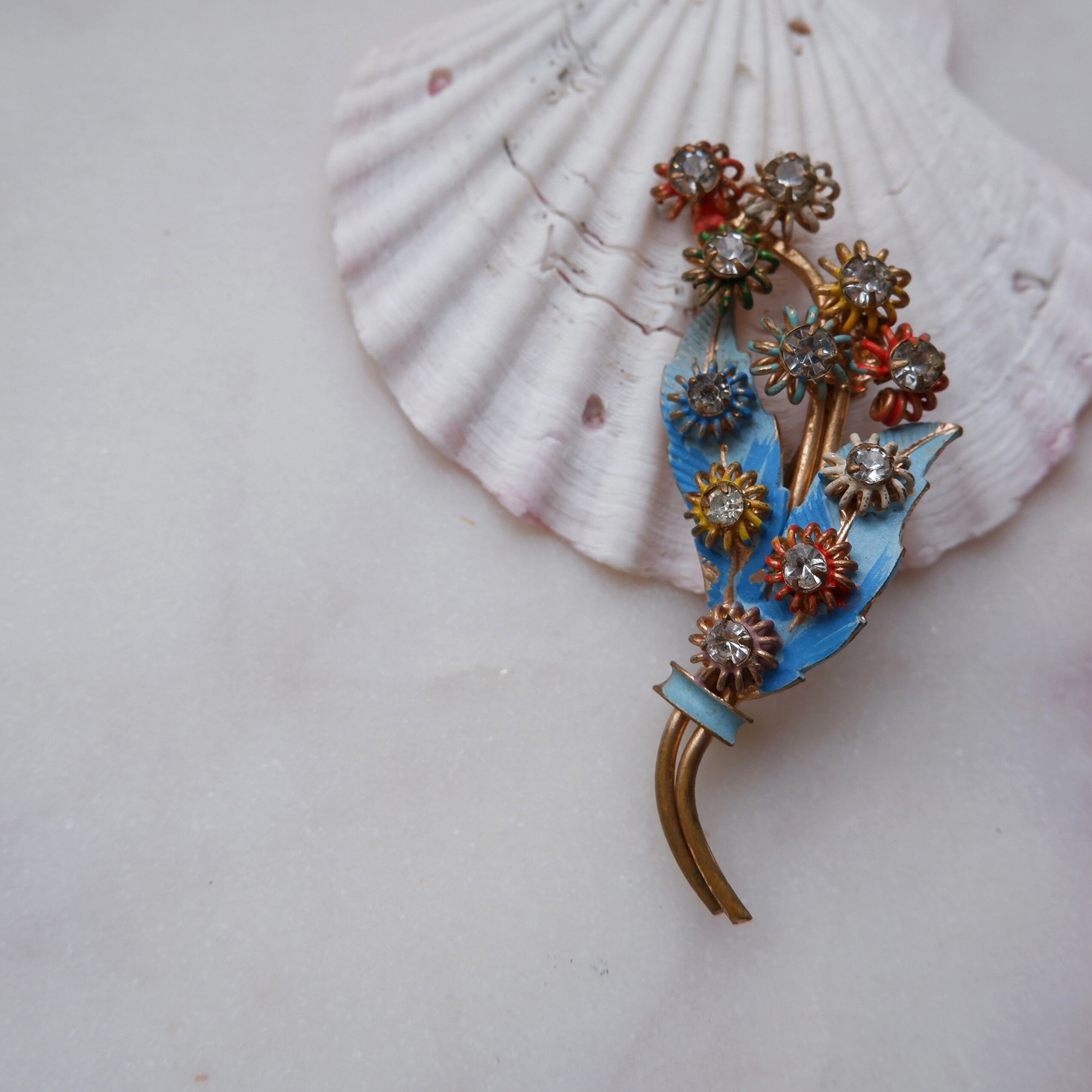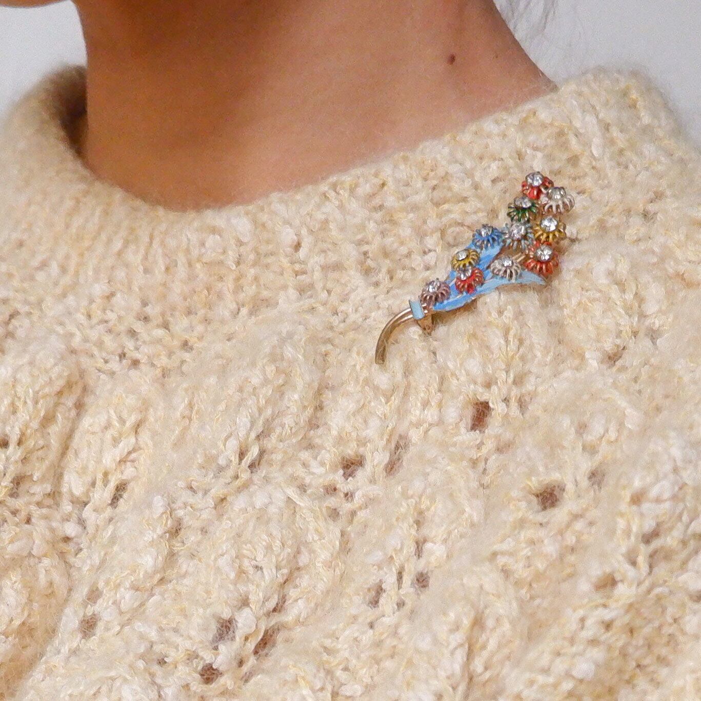 鮮やかな彩色が印象的な、合金製のお花のブローチです。