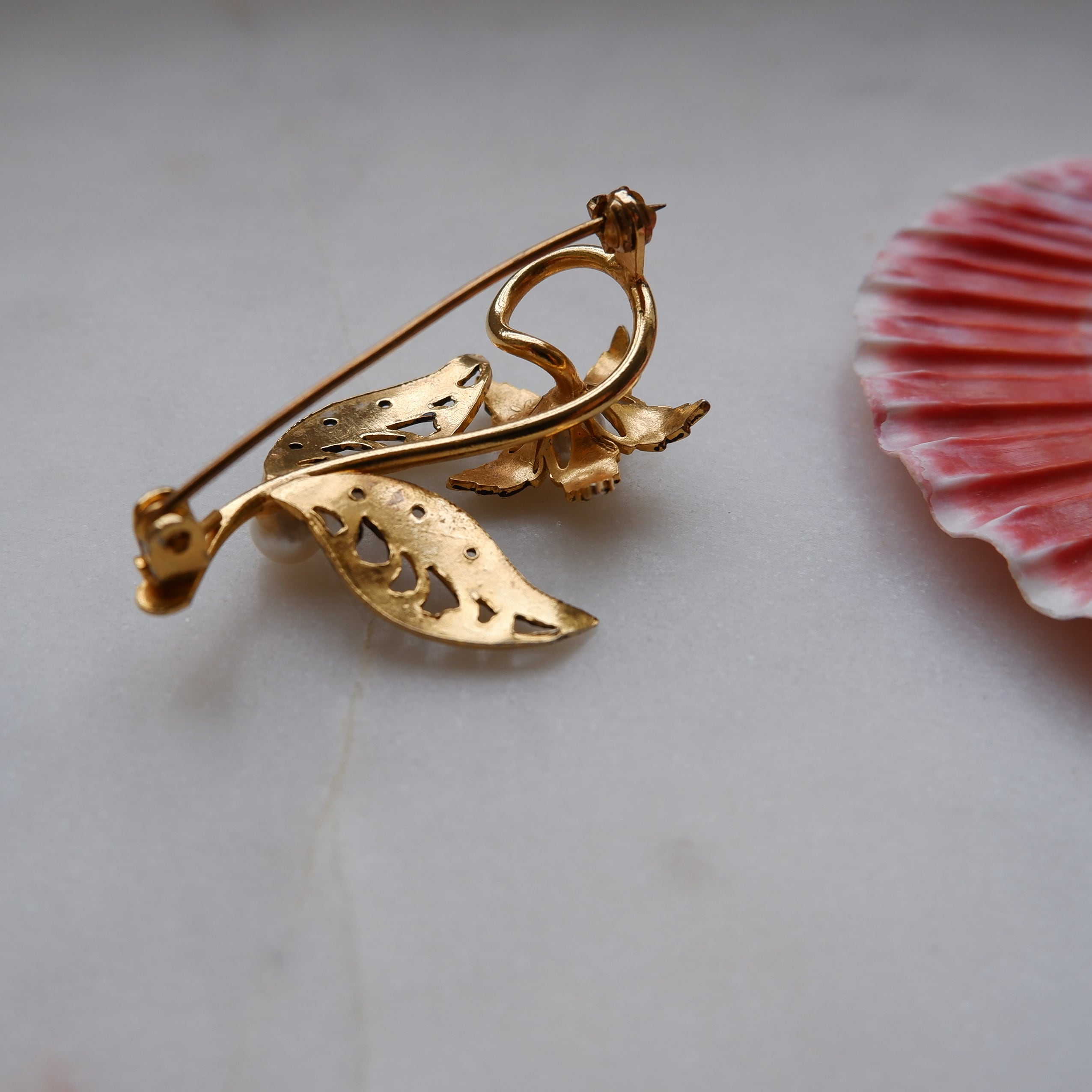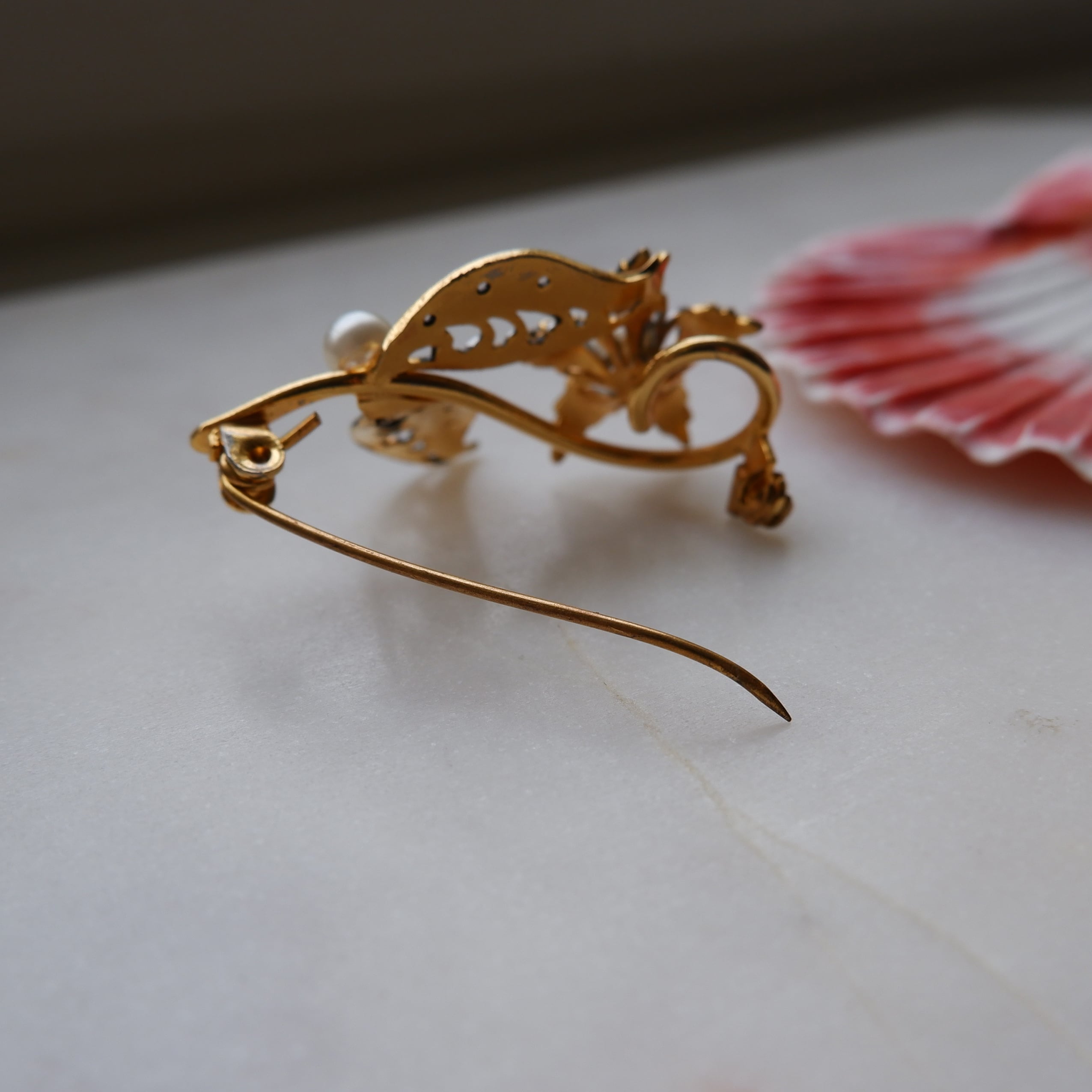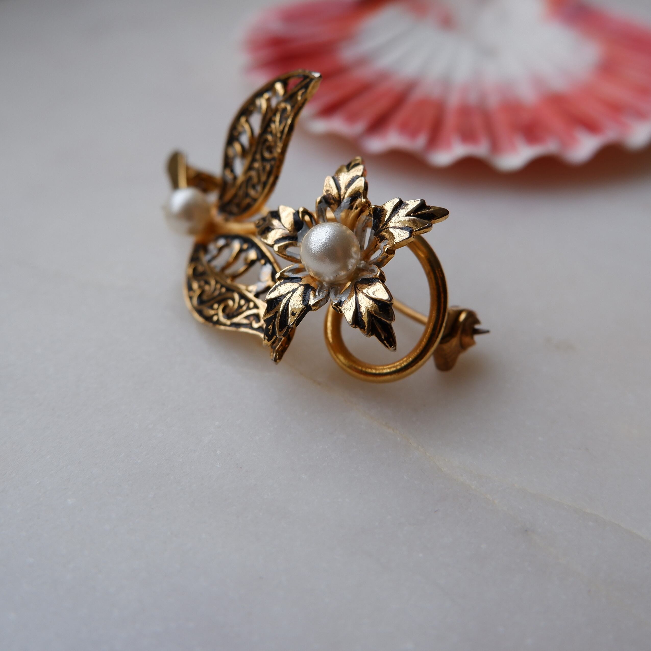 アール・ヌーヴォー調の彫金で描かれた植物柄のブローチです。