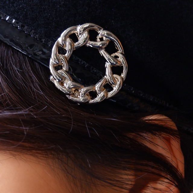 襟元や、スカーフ、ポケットの縁など、様々な場所で気軽にお楽しみいただけるクリップ型の品です。