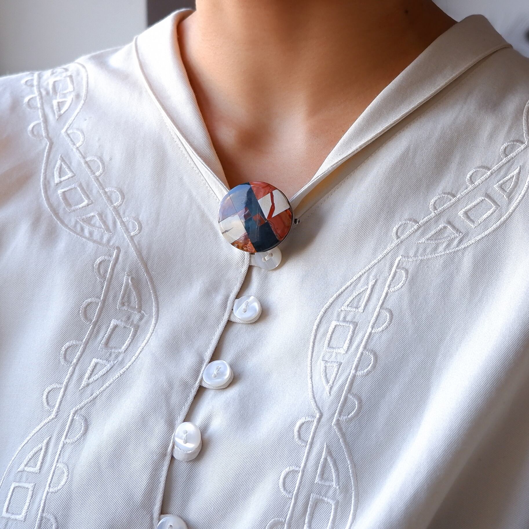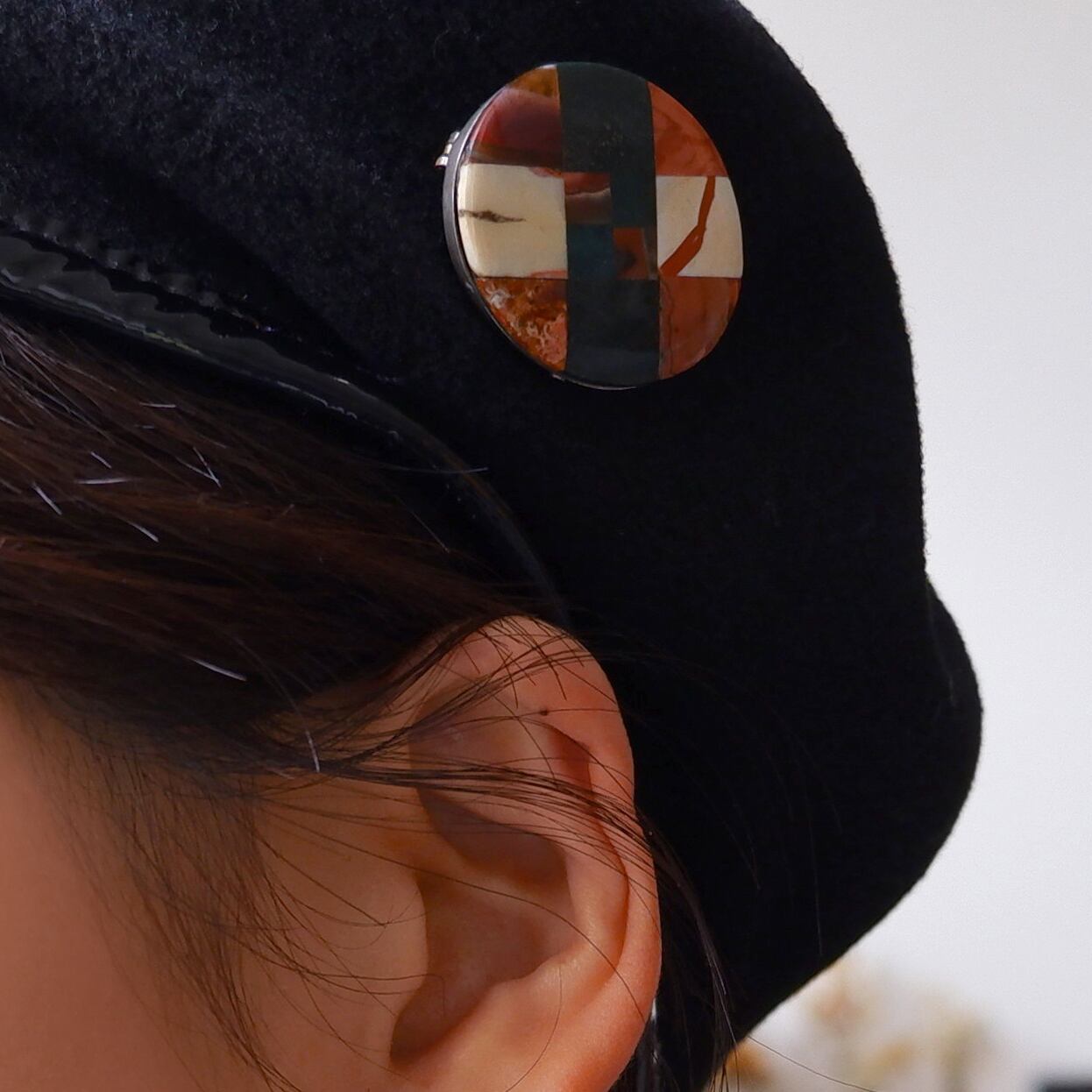 天然石とシルバーを素材に作られたオーバル型のブローチです。