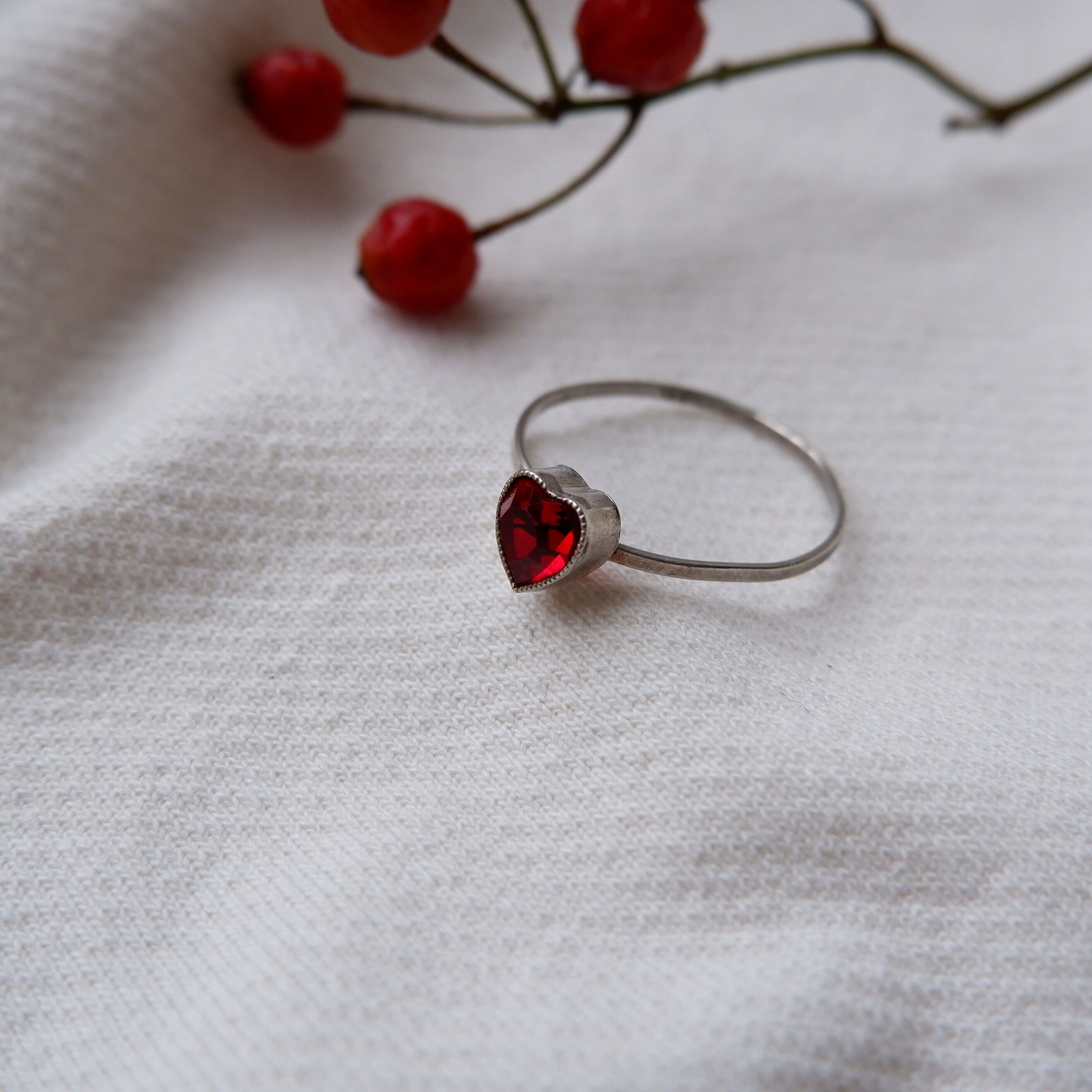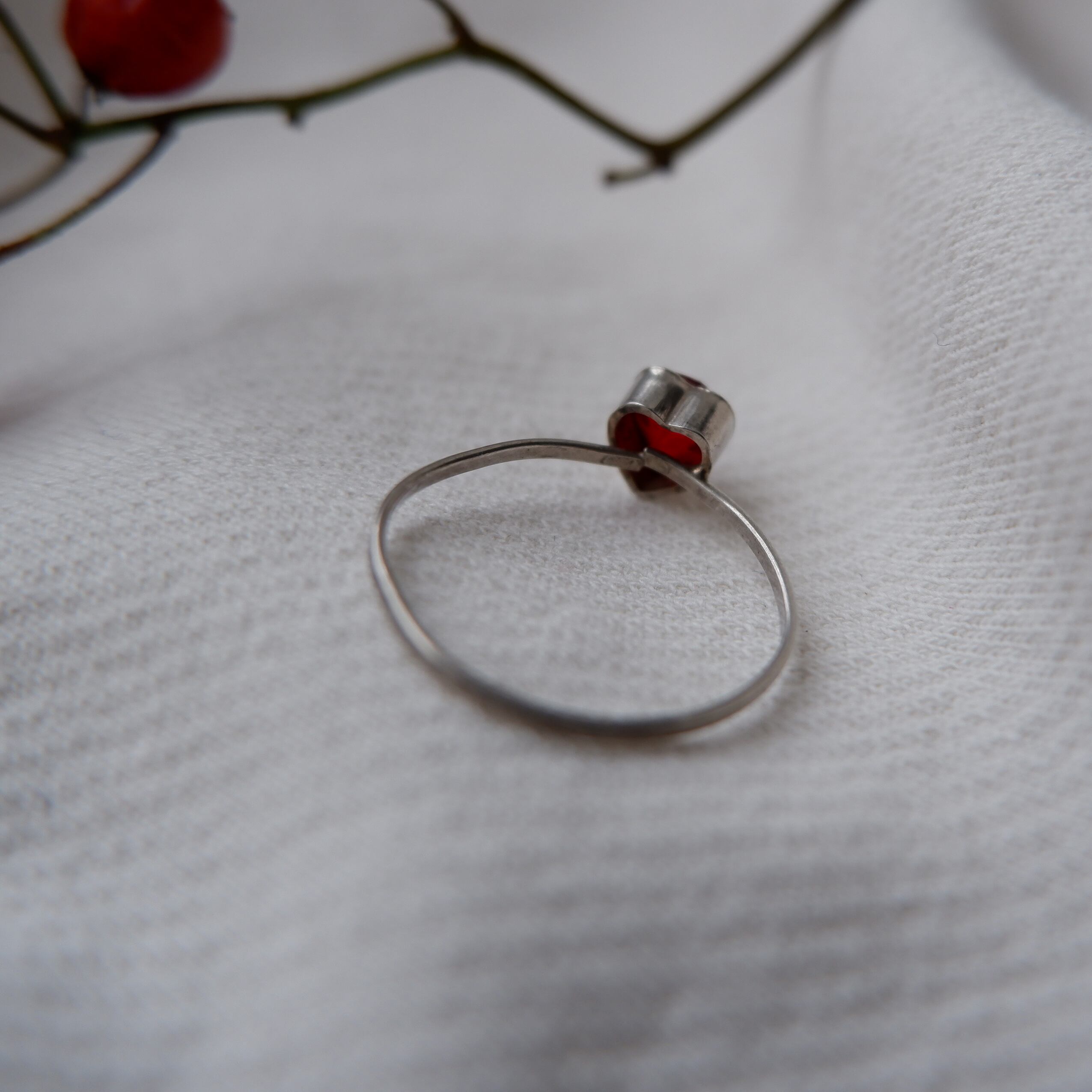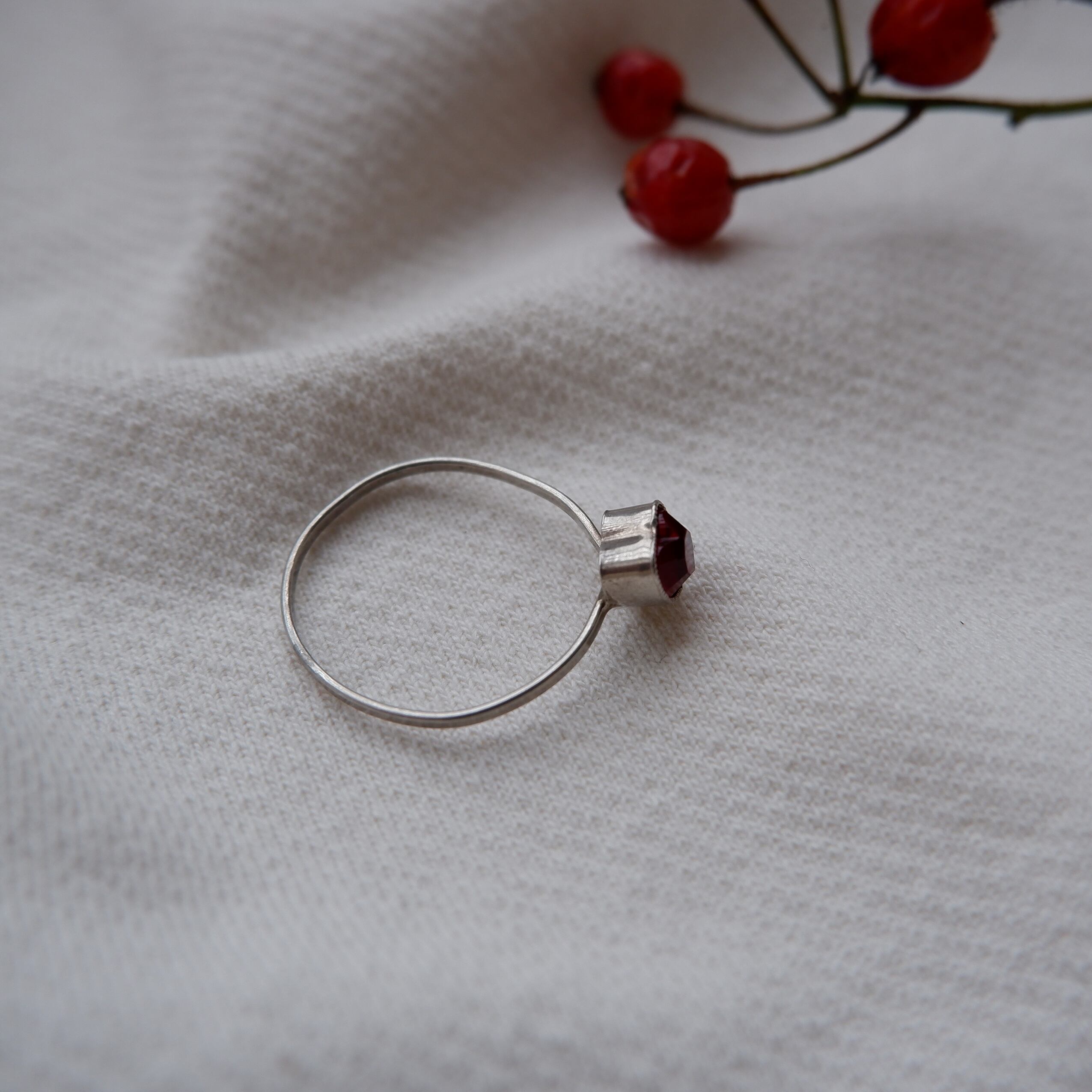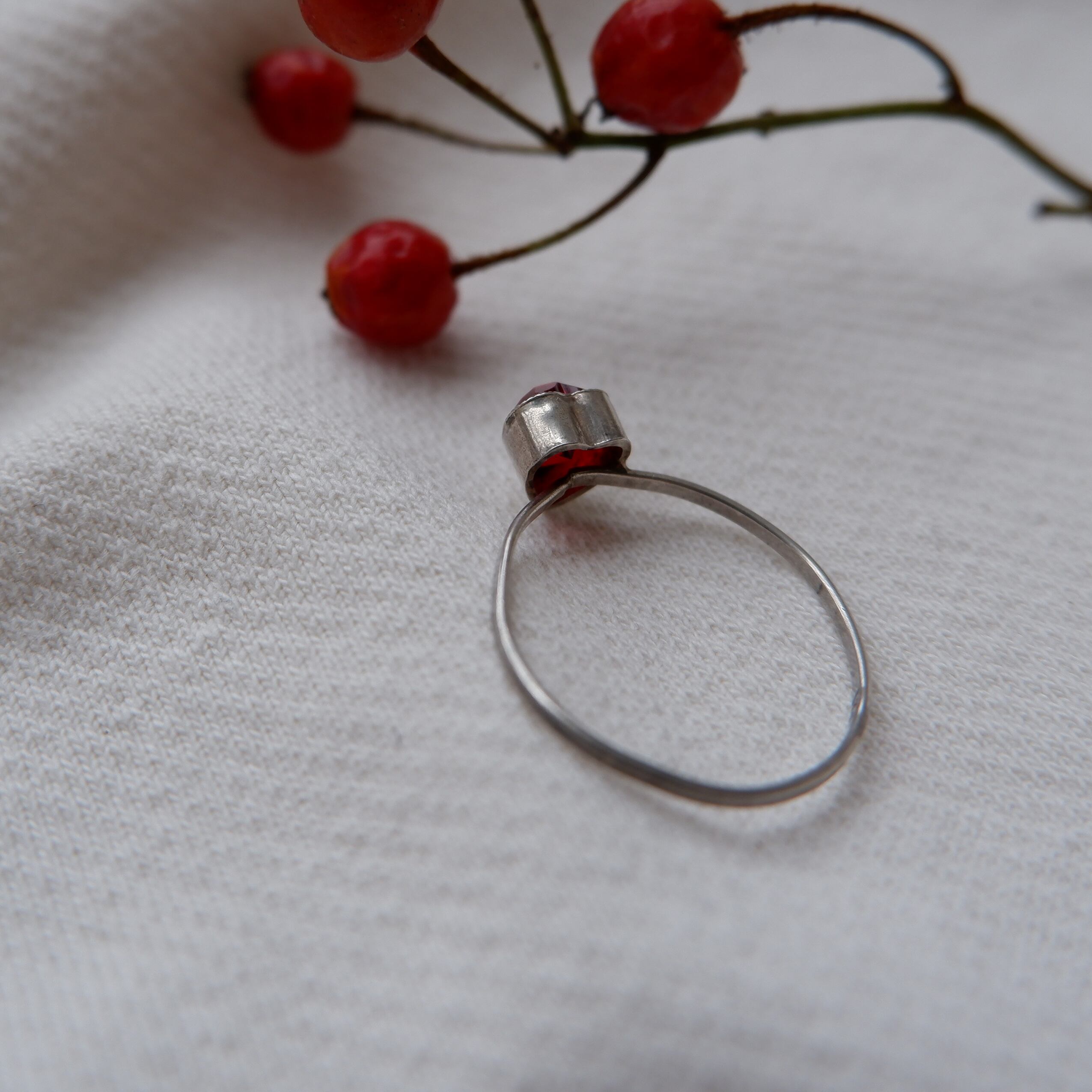 素材はガーネットの石とスターリングシルバーです。こちらは20世紀前半〜中頃のヴィンテージ品です。