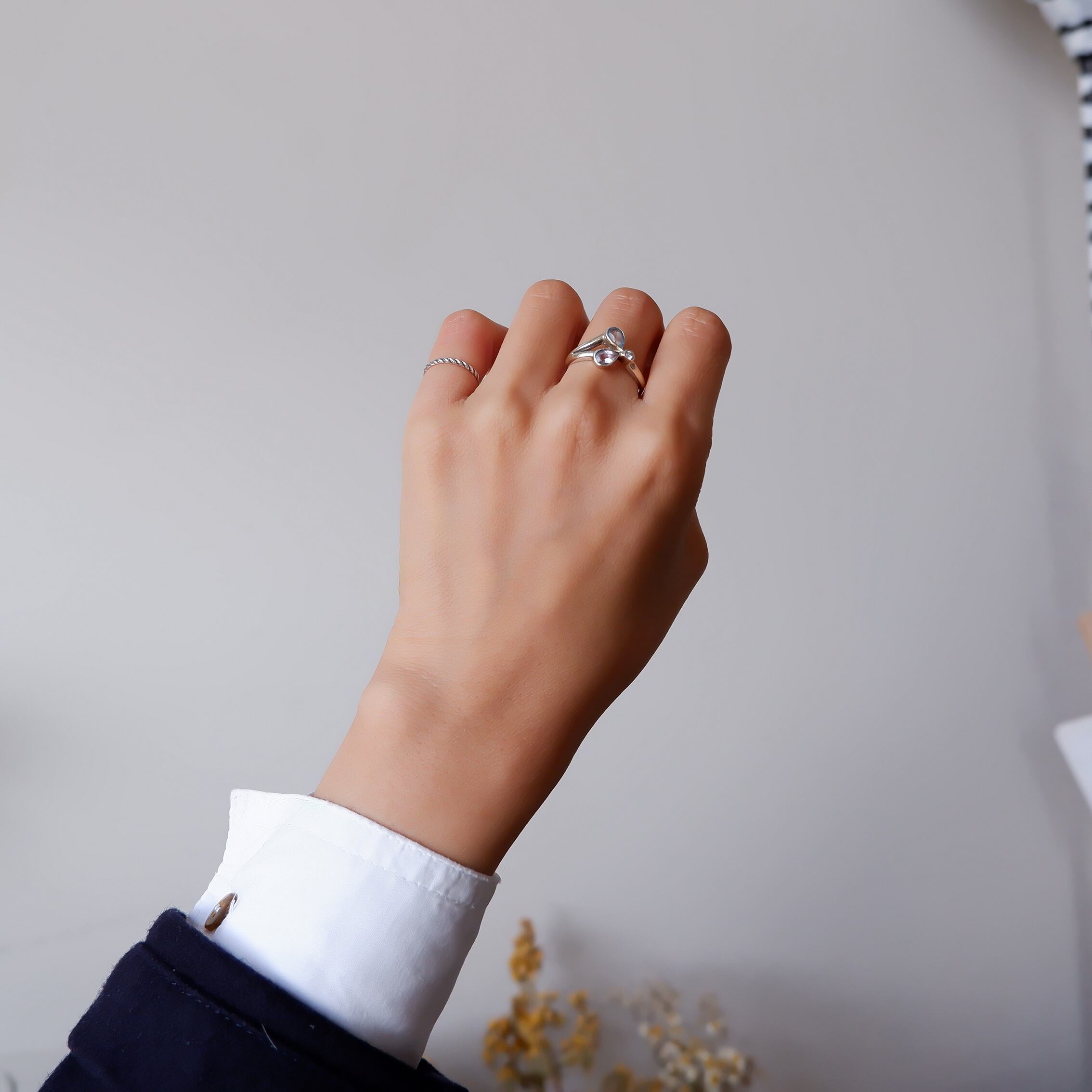 台座上のティアドロップスが柔らかく優しい雰囲気を纏っている一品。