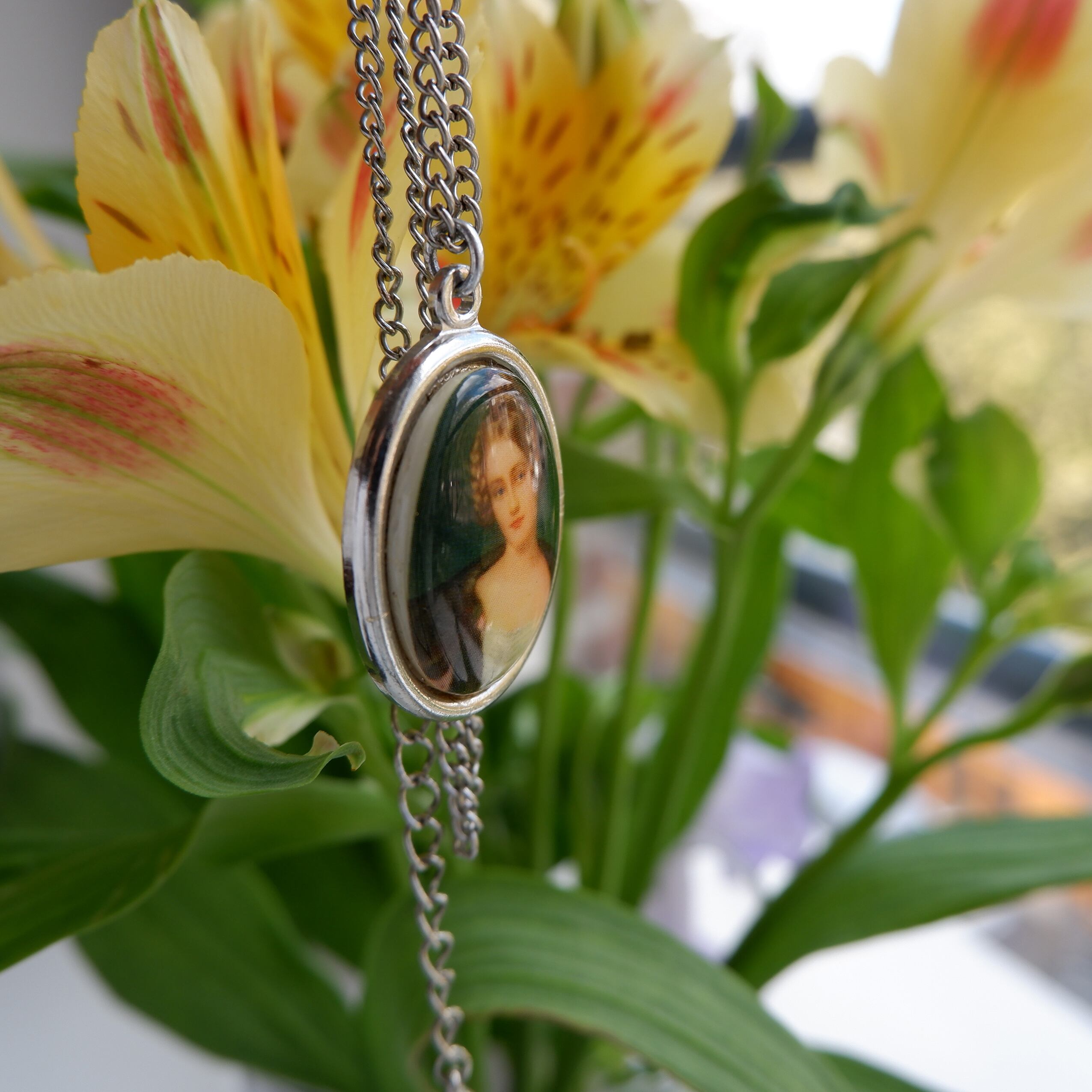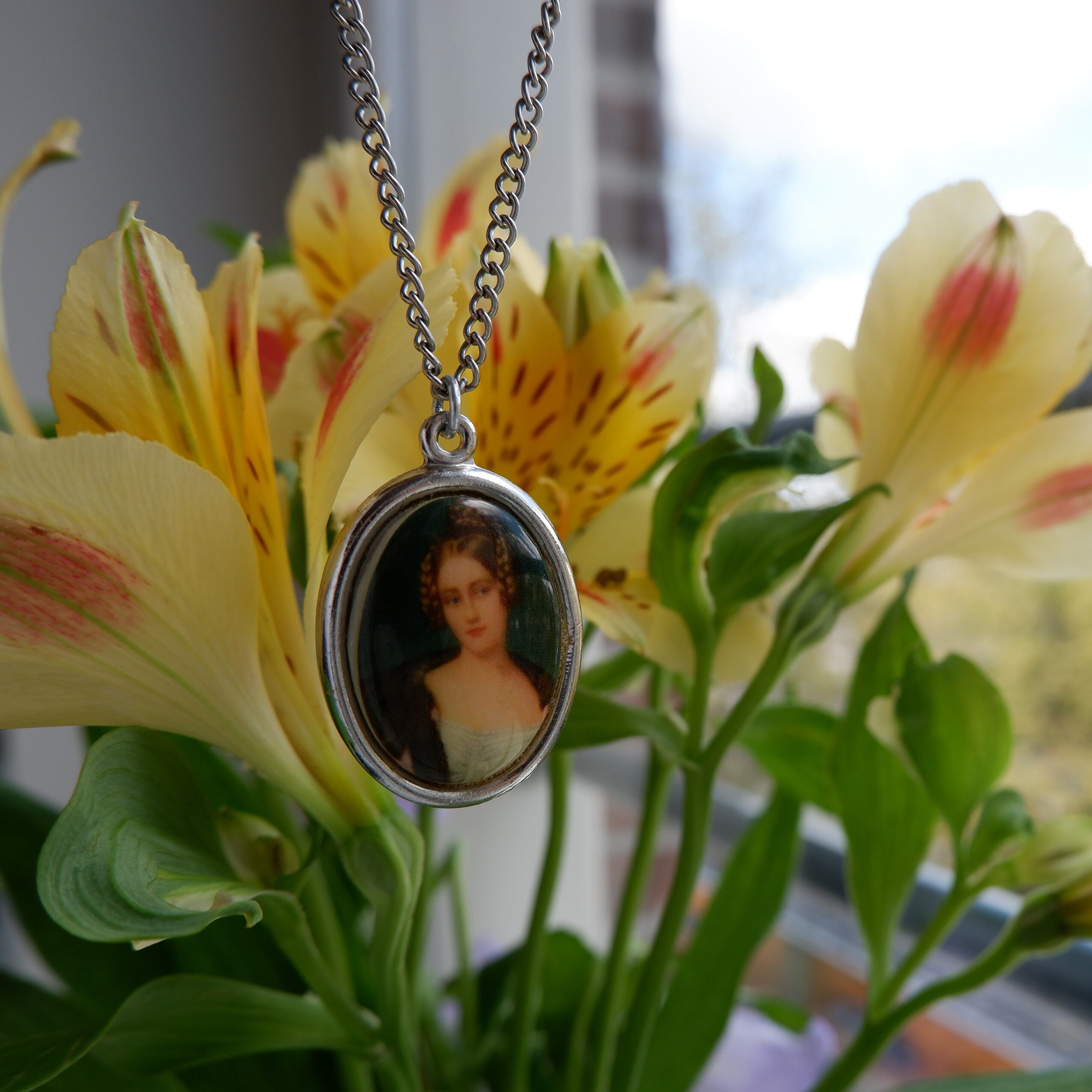 モチーフには、クラシカルなファッションを身に纏った女性が描かれています。
