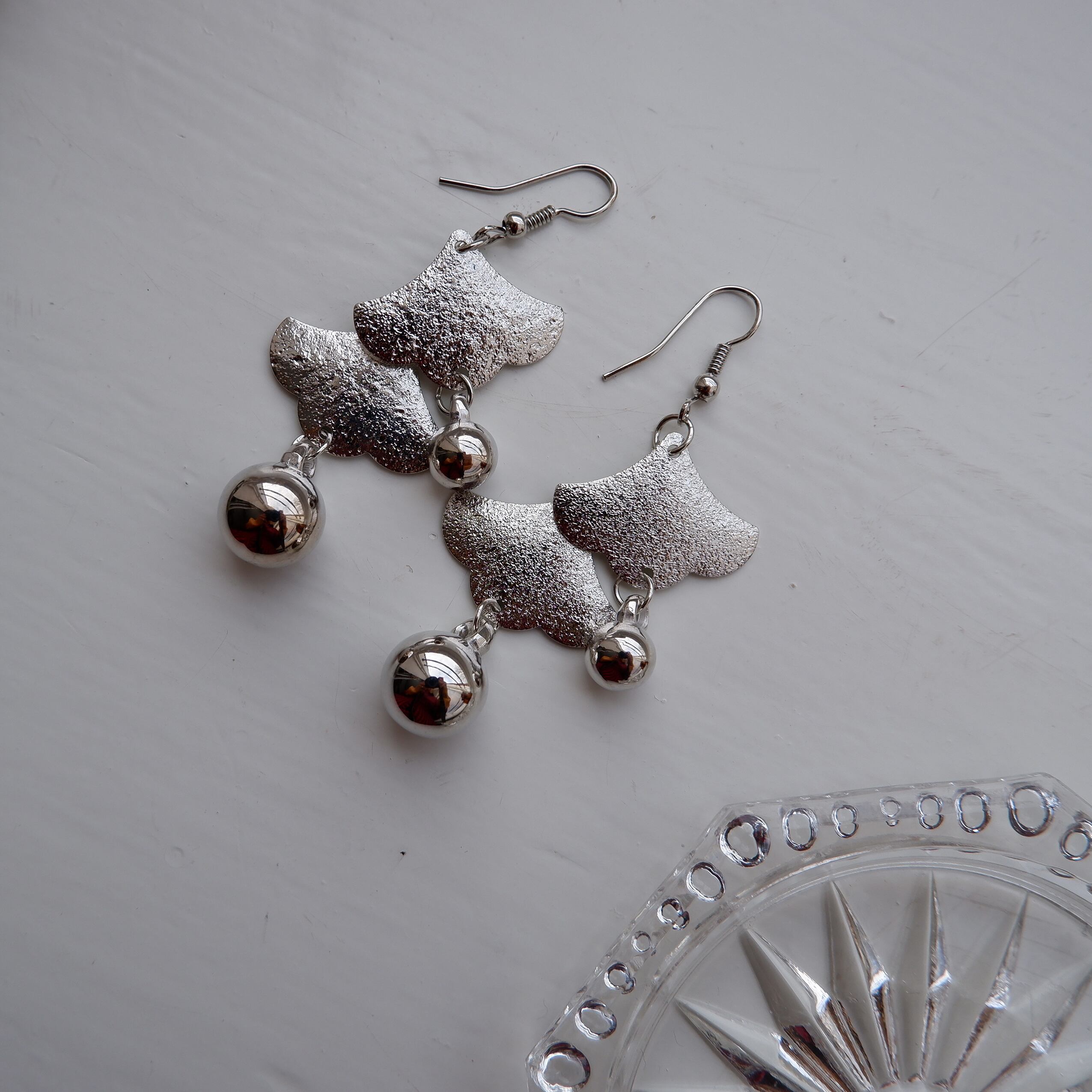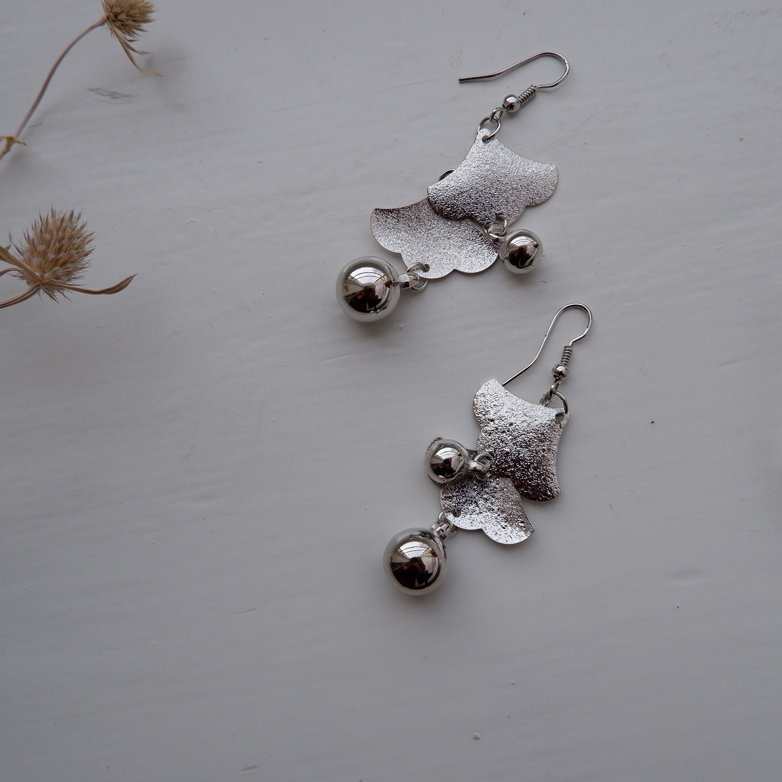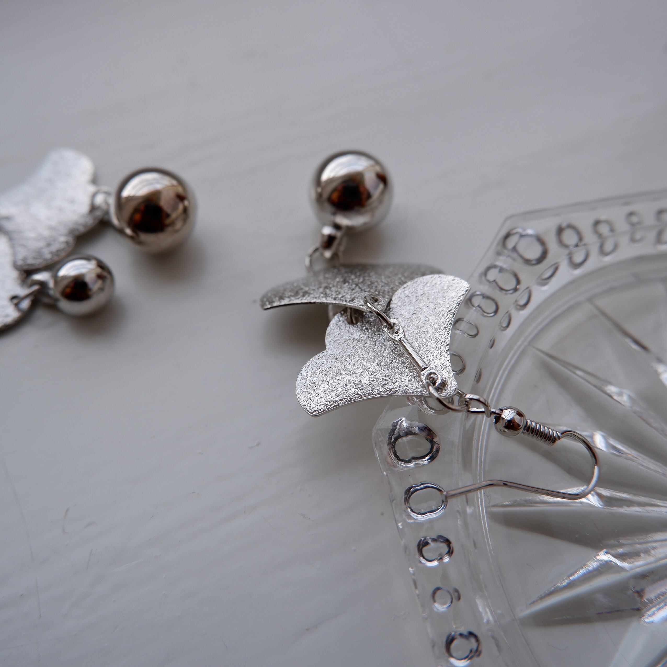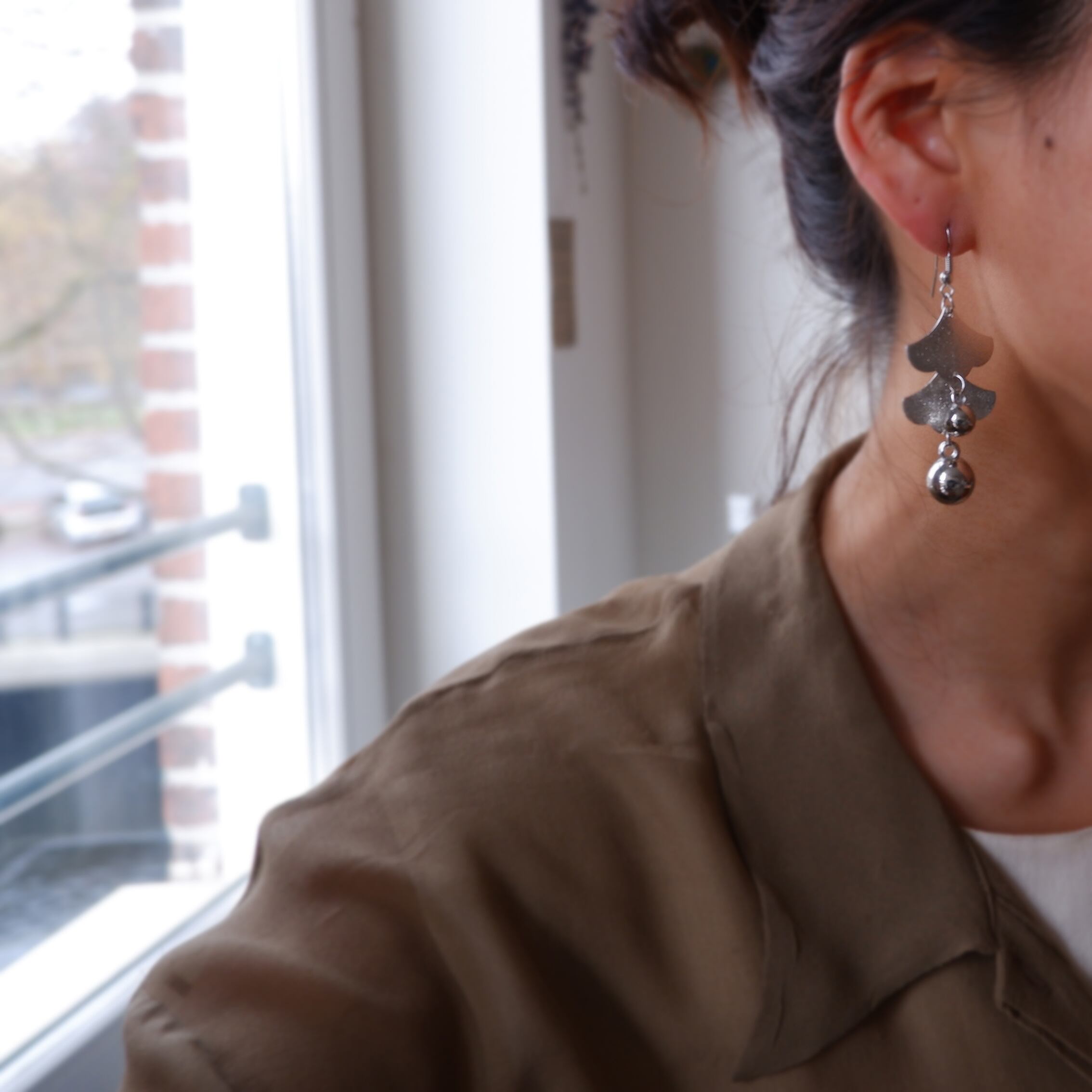 銀杏の葉っぱの様な、滴る雨が描かれているような、雰囲気のあるデザインのピアスです。