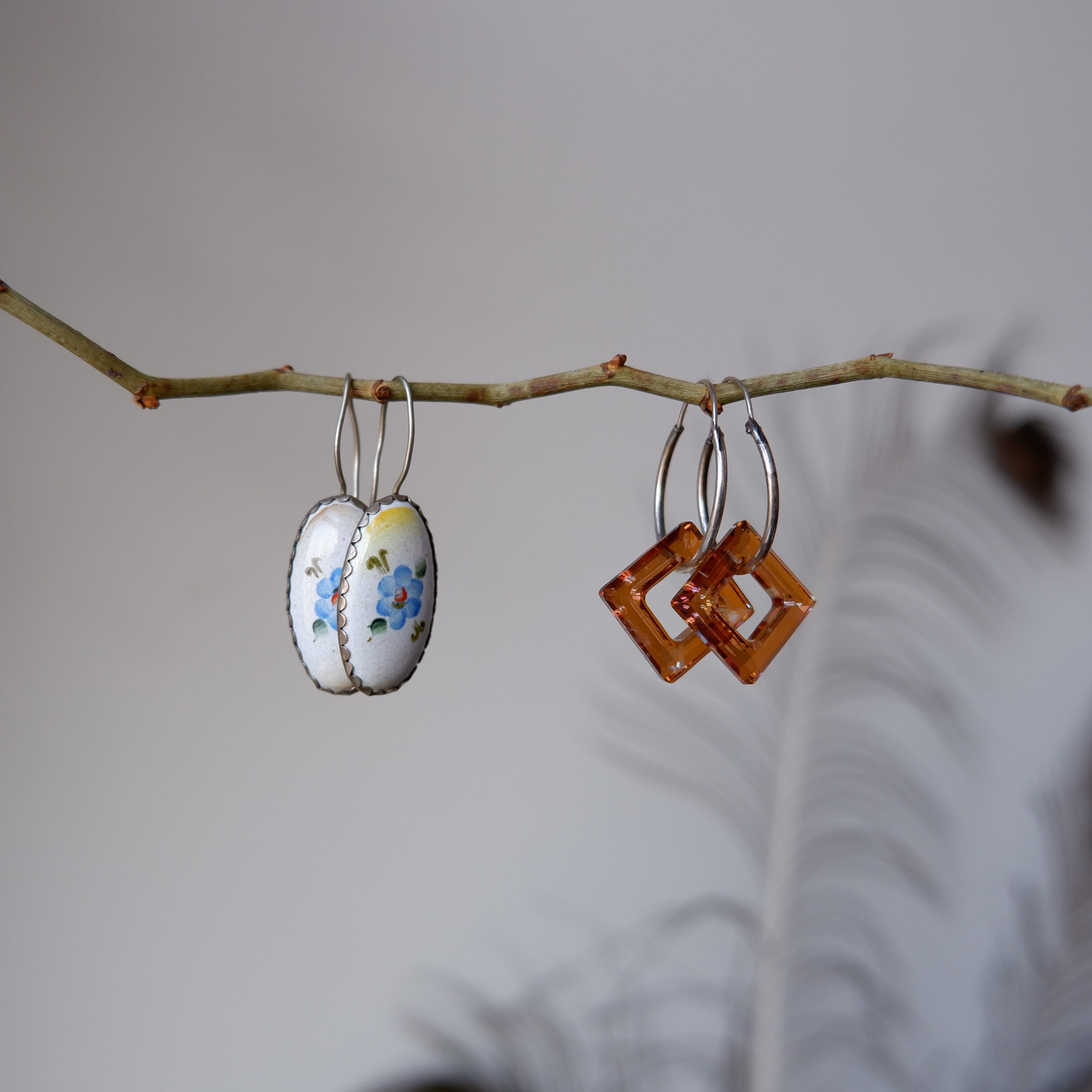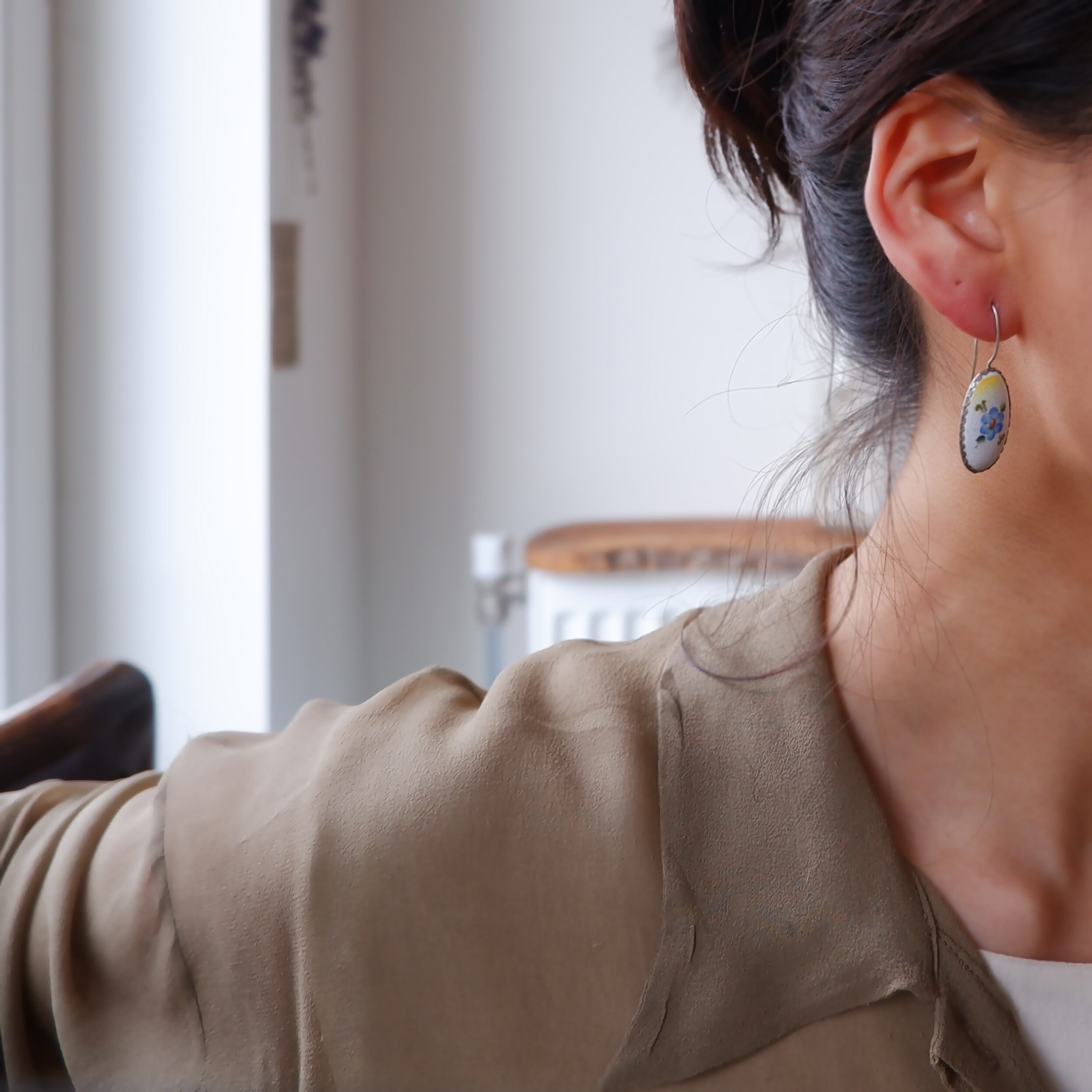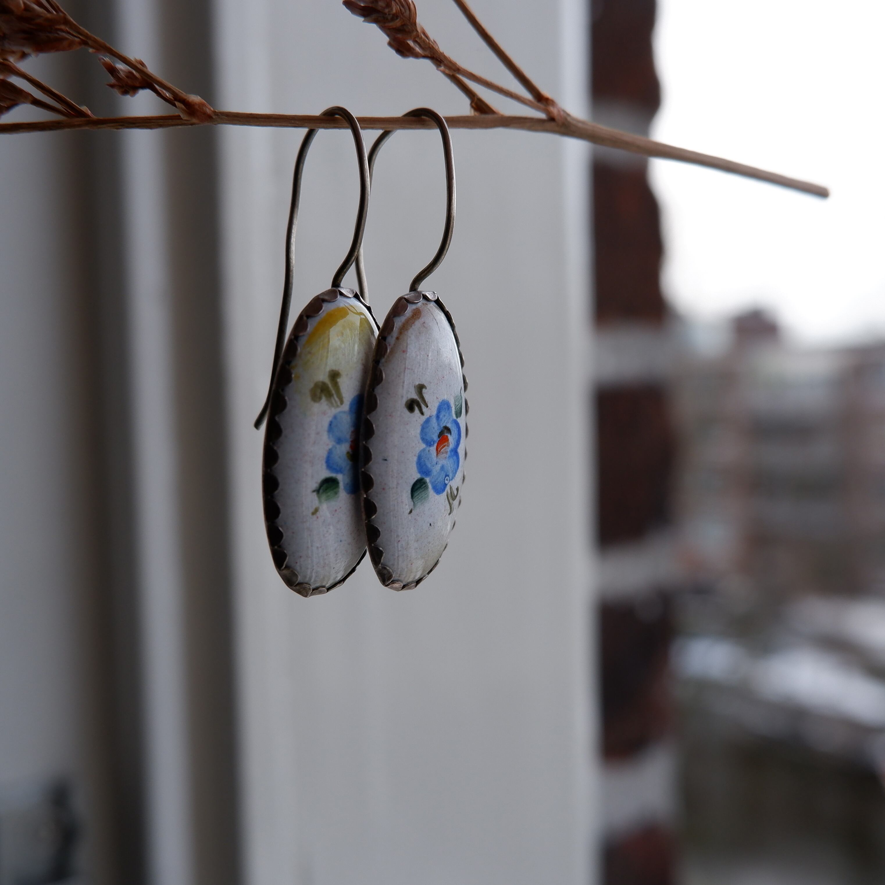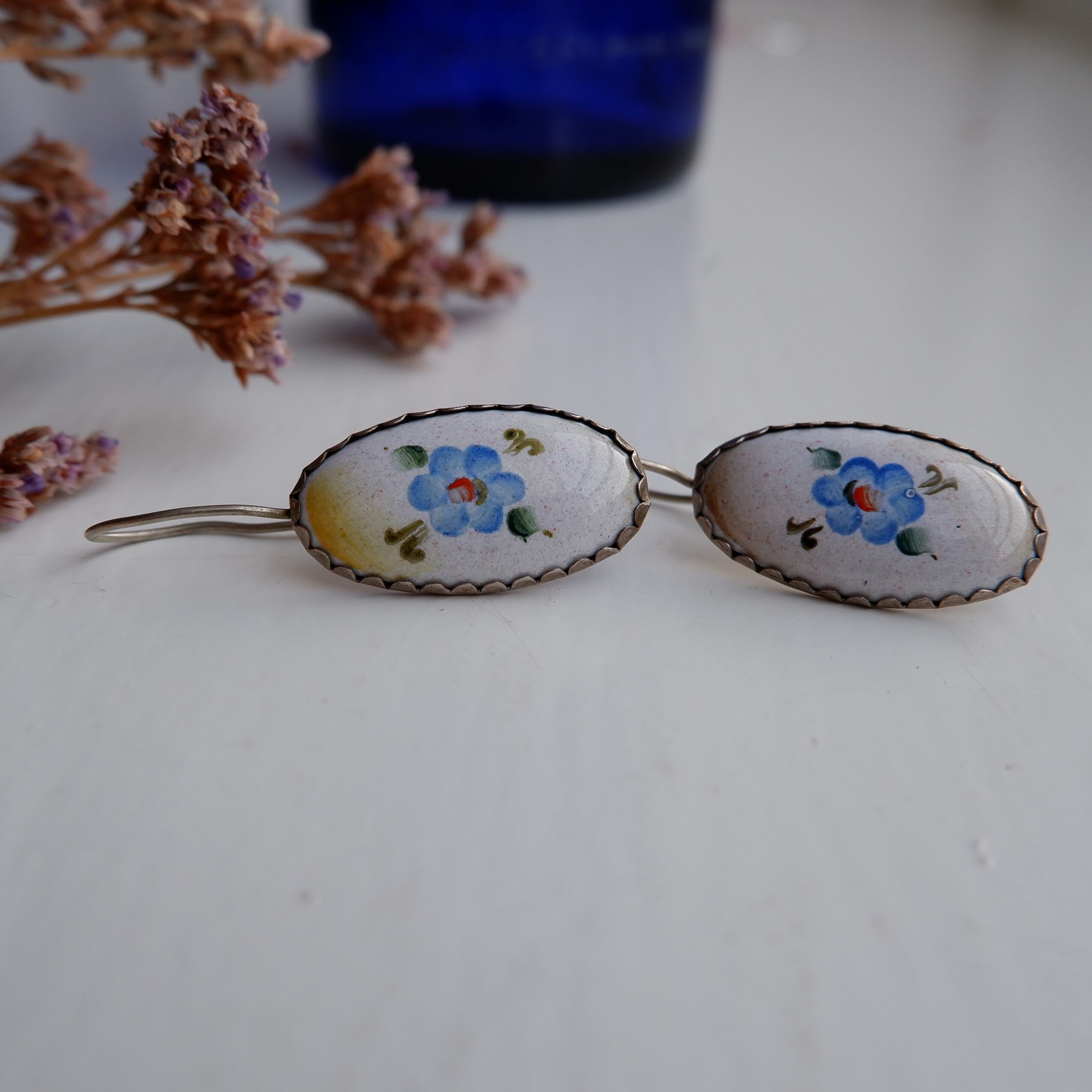南欧の壁画のような着彩が施された、風合いたっぷりなヴィンテージピアスです。