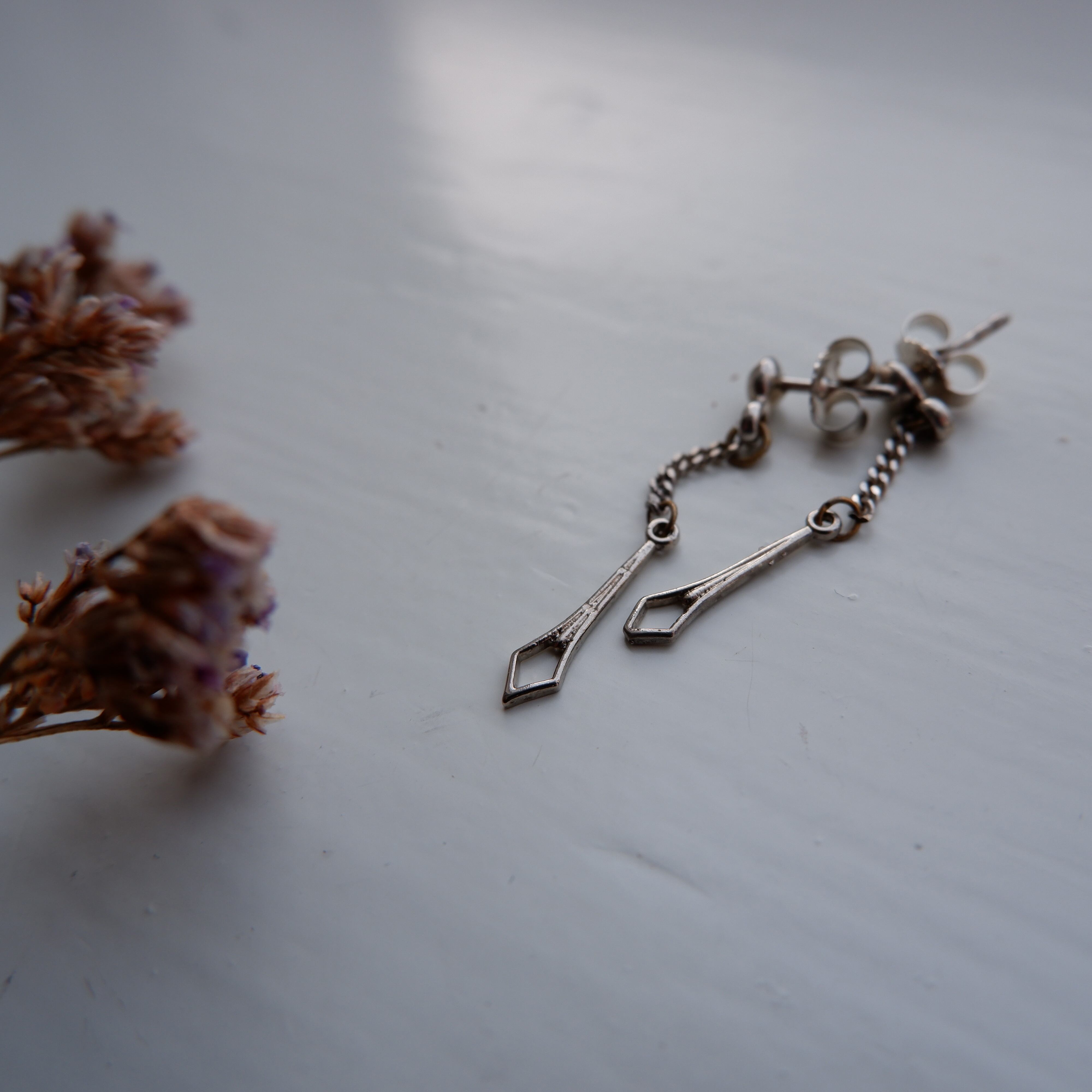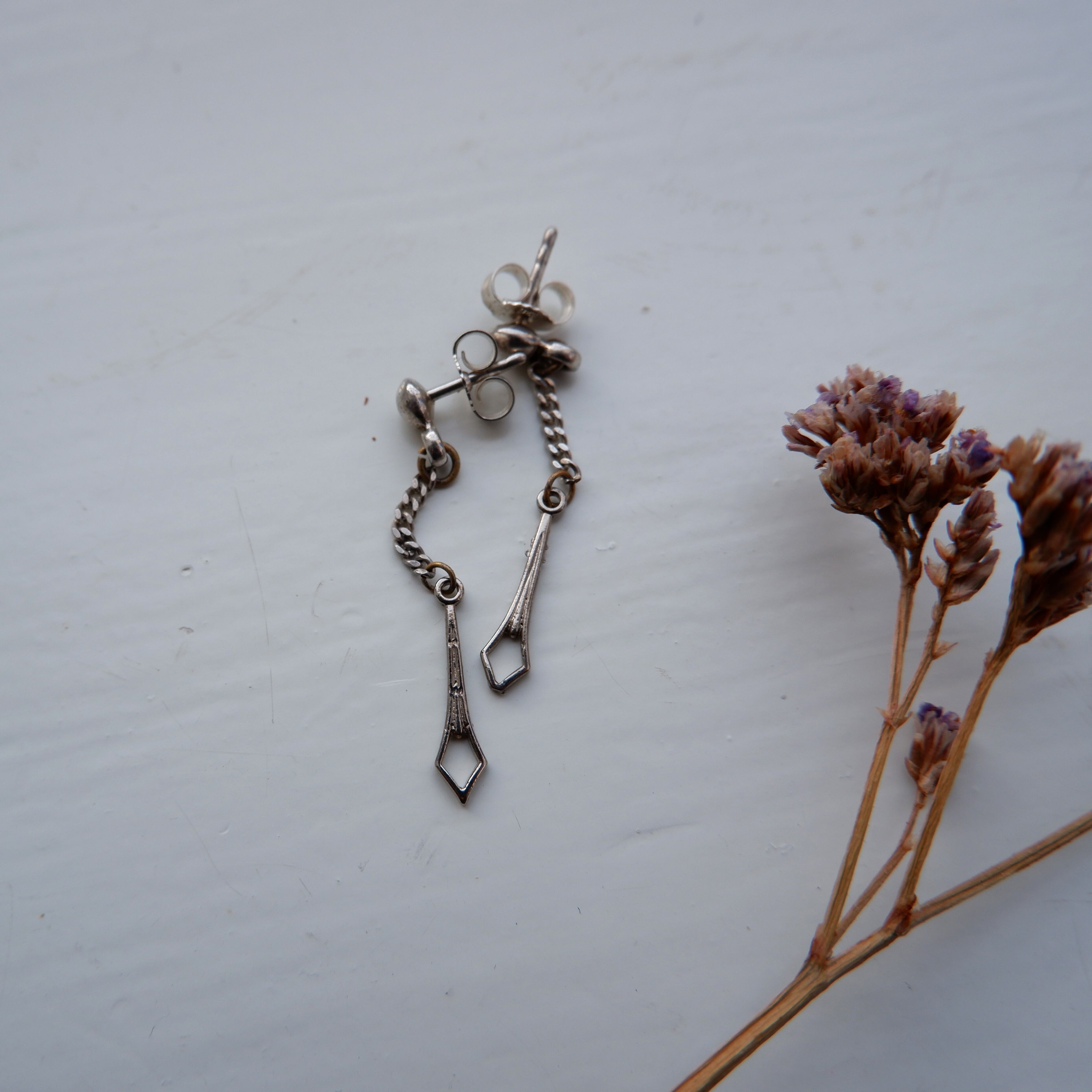 小ぶりなモチーフが揺れる、シルバートーンのピアスです。