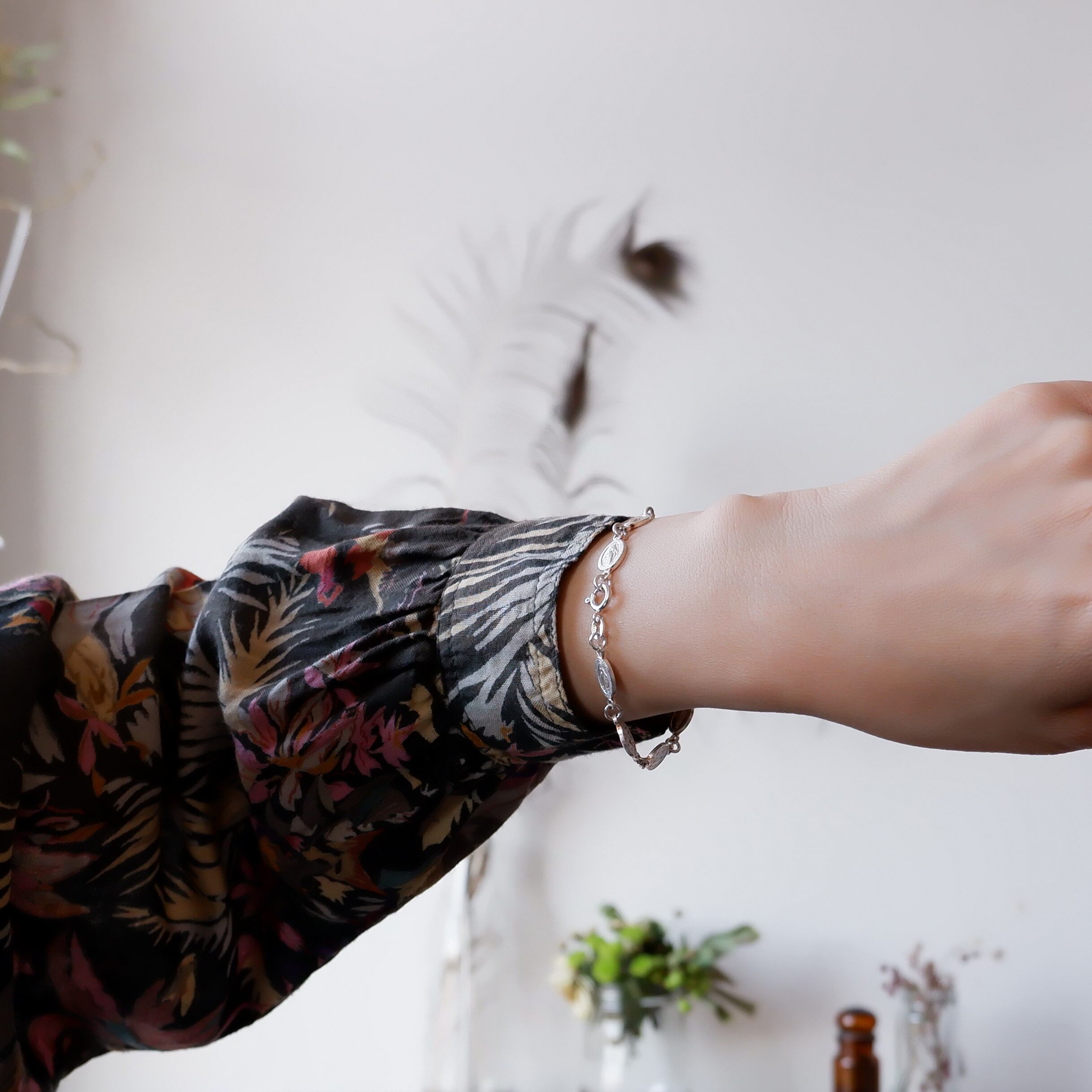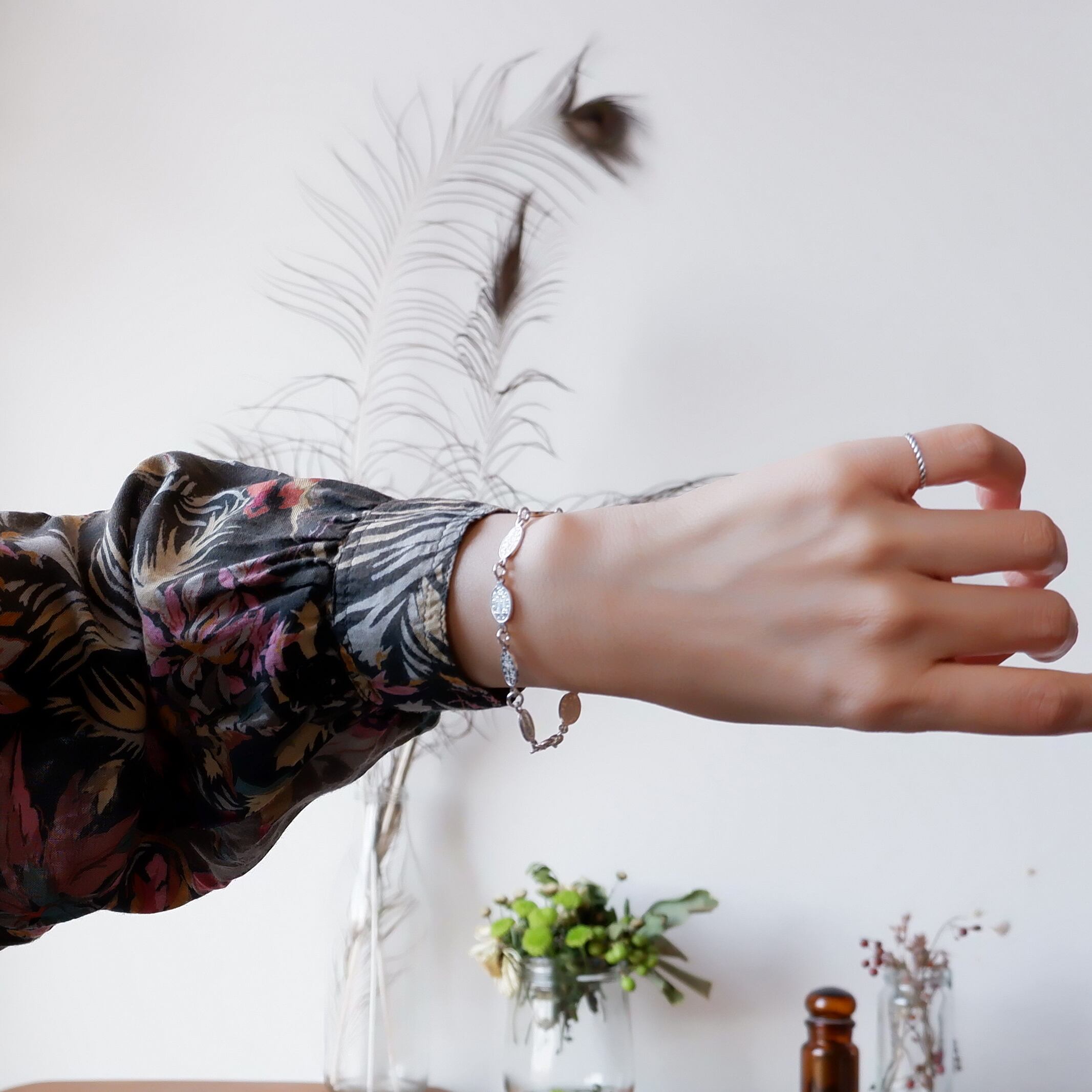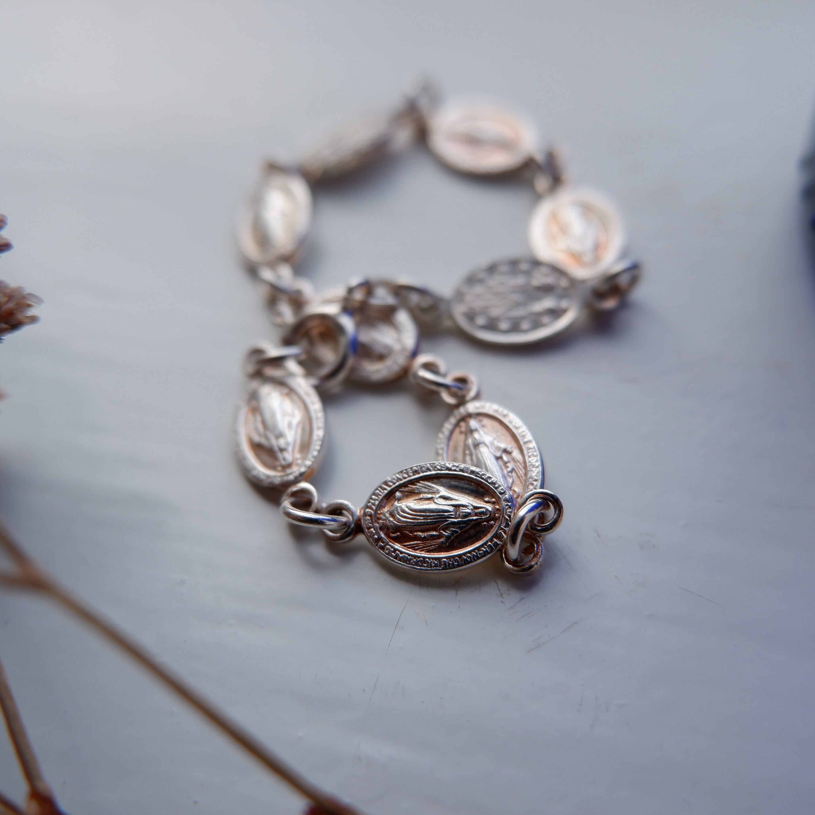 9つのメダルが連なった、スターリングシルバー製のブレスレットです。