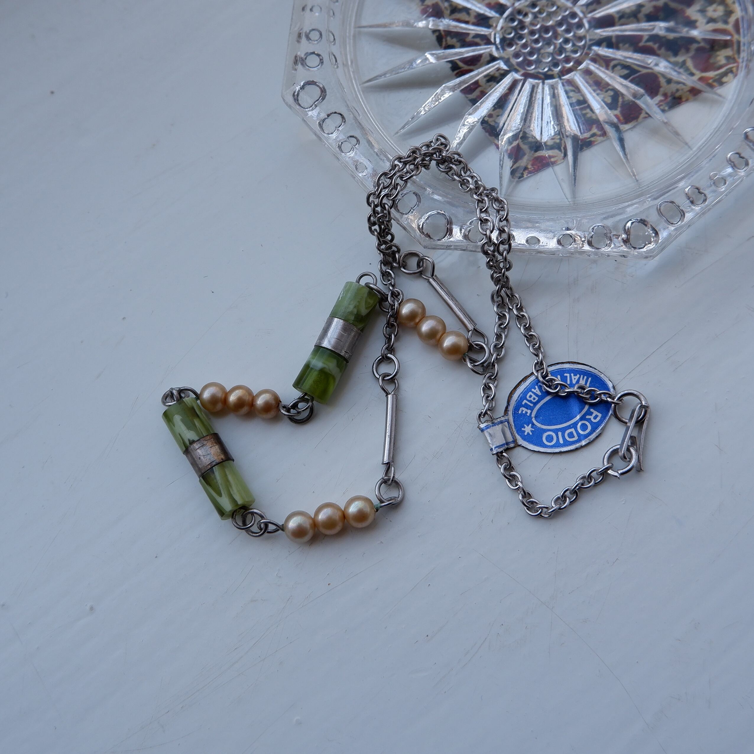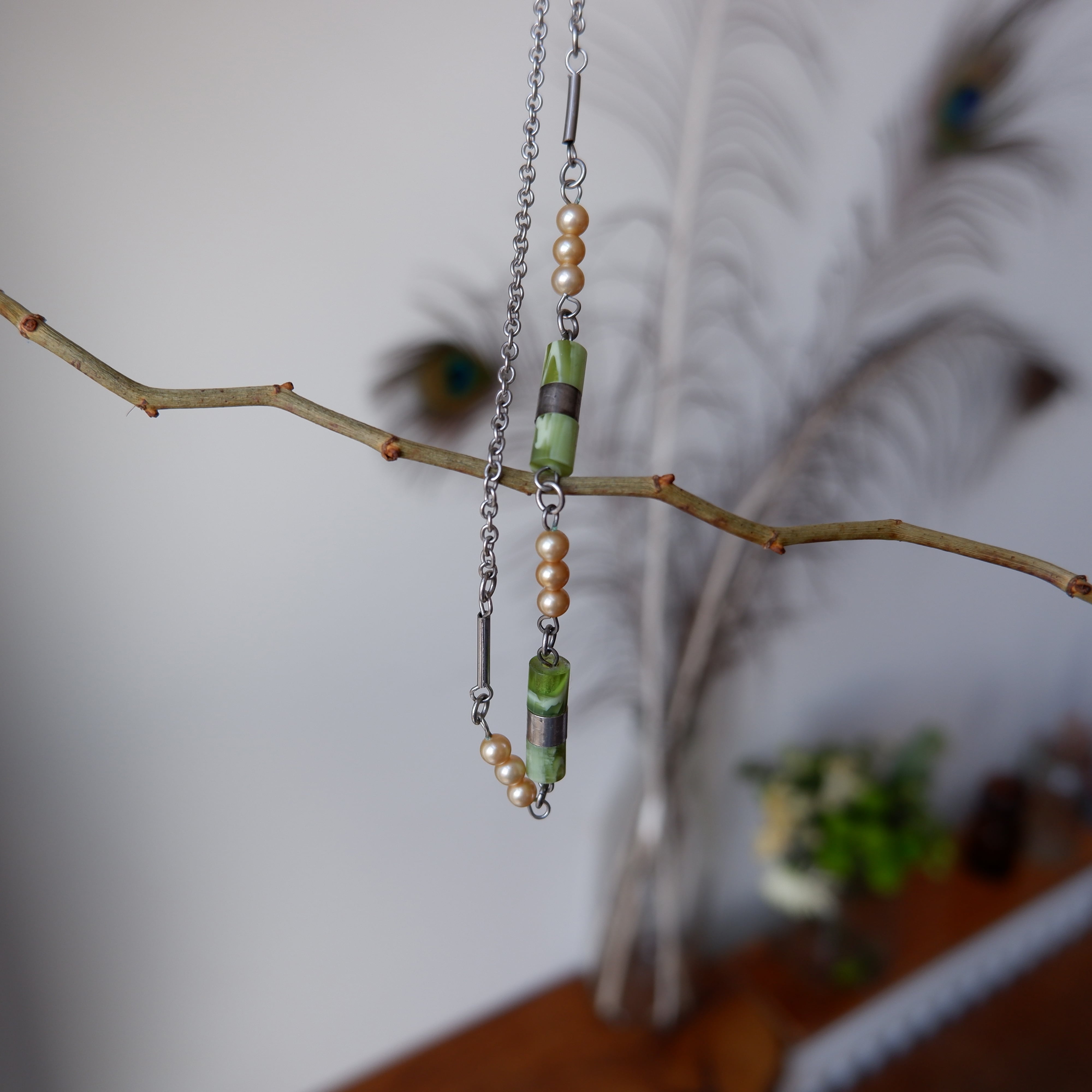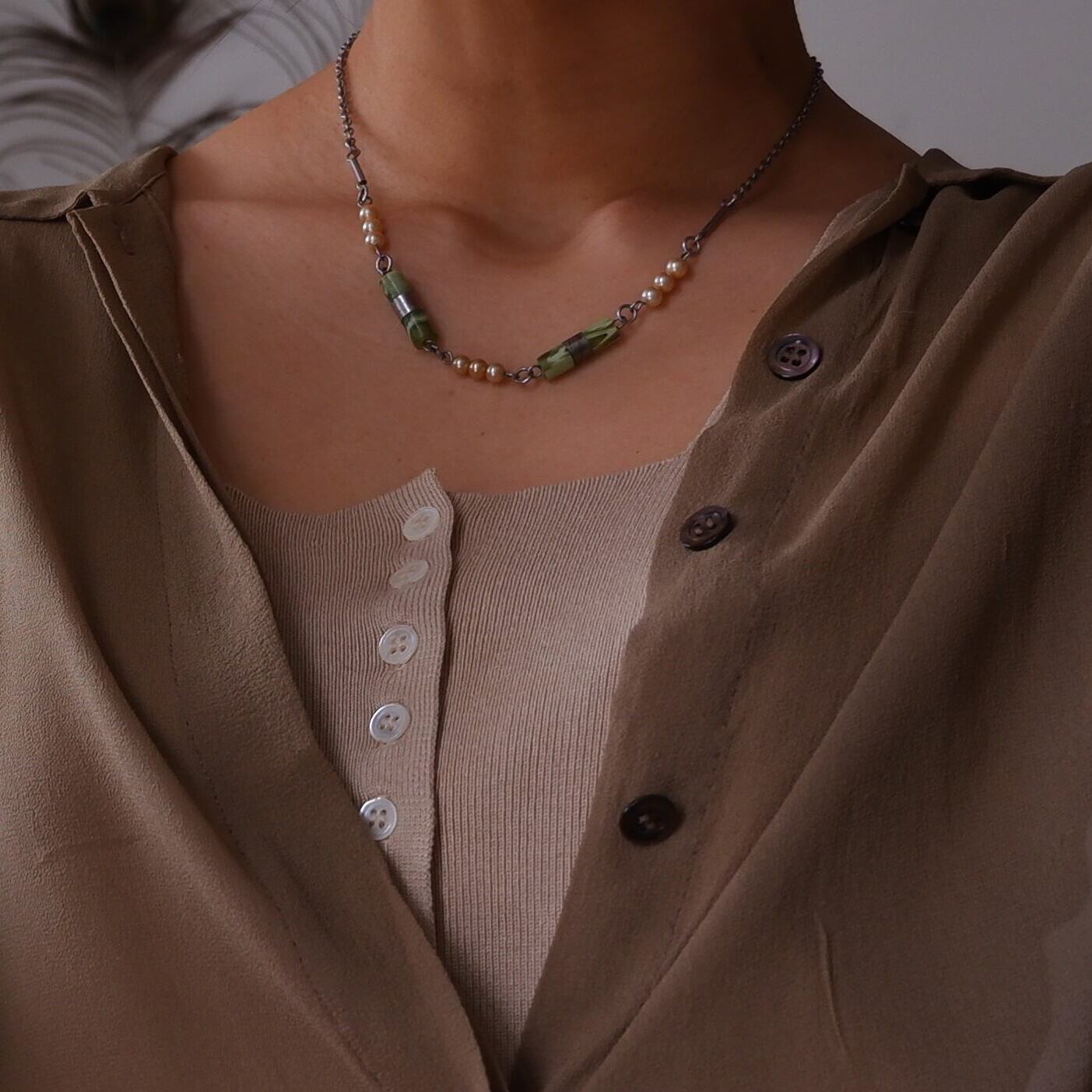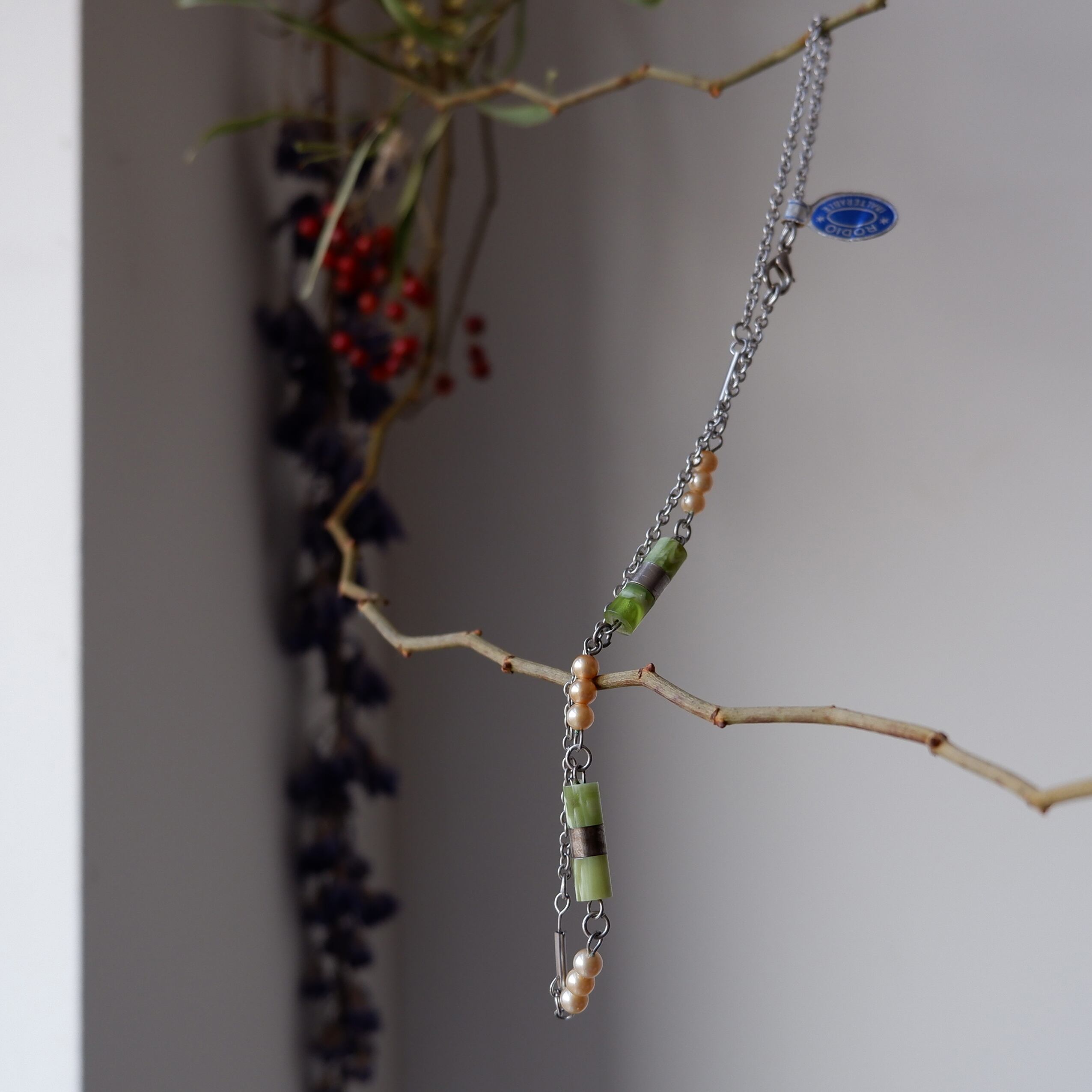 モスグリーン色のマーブルとパールカラーの合わせが愛らしい一品。