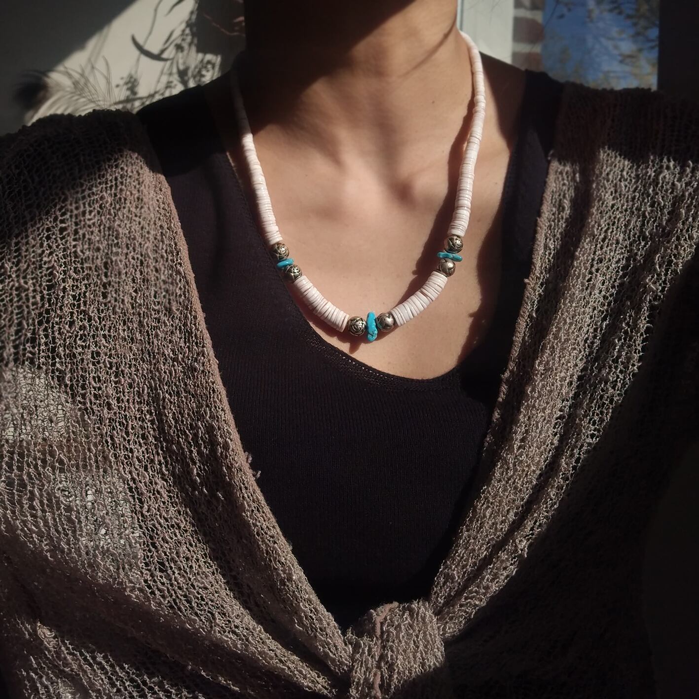 重ね付けも楽しめそうです。様々な装いで合わせたいネックレスです。