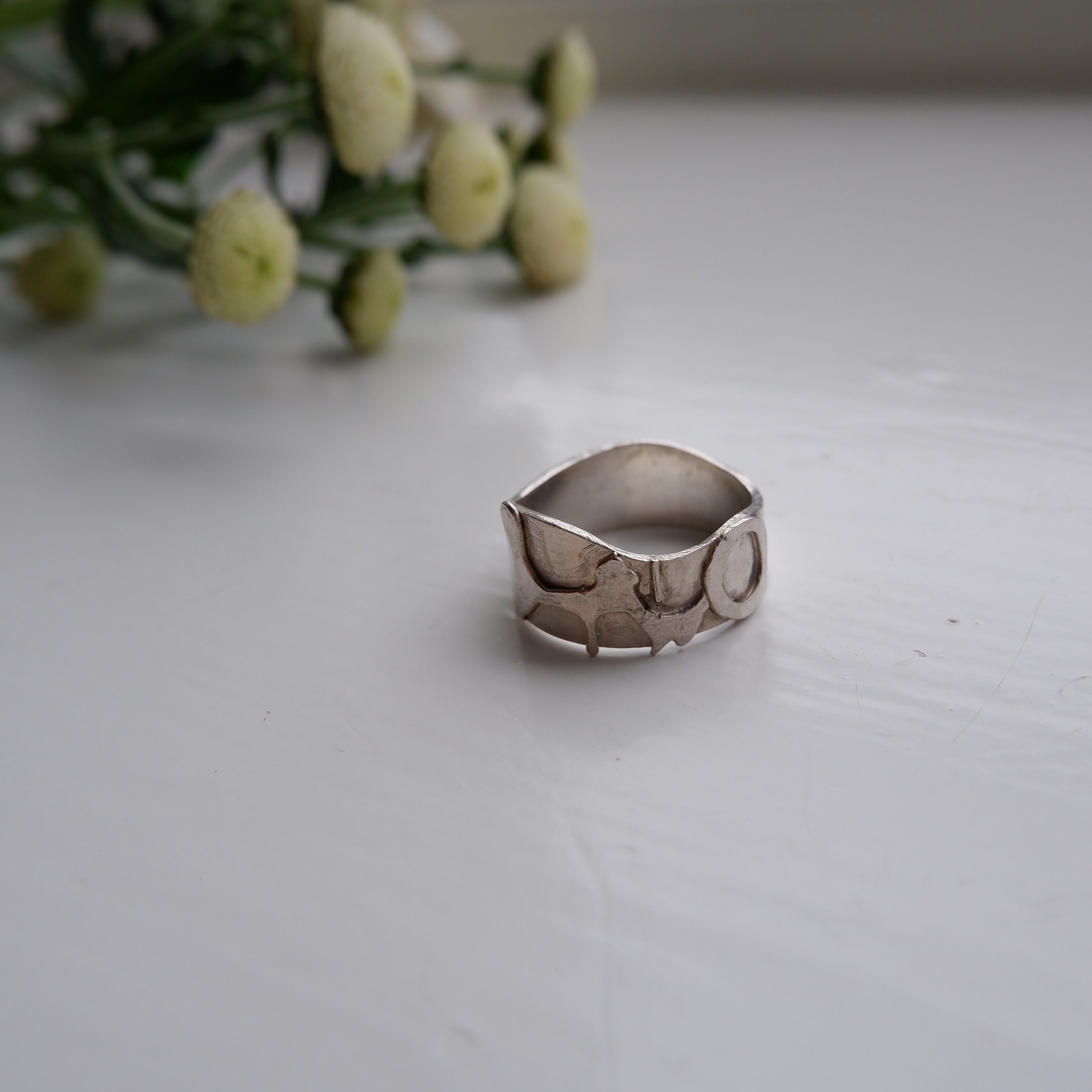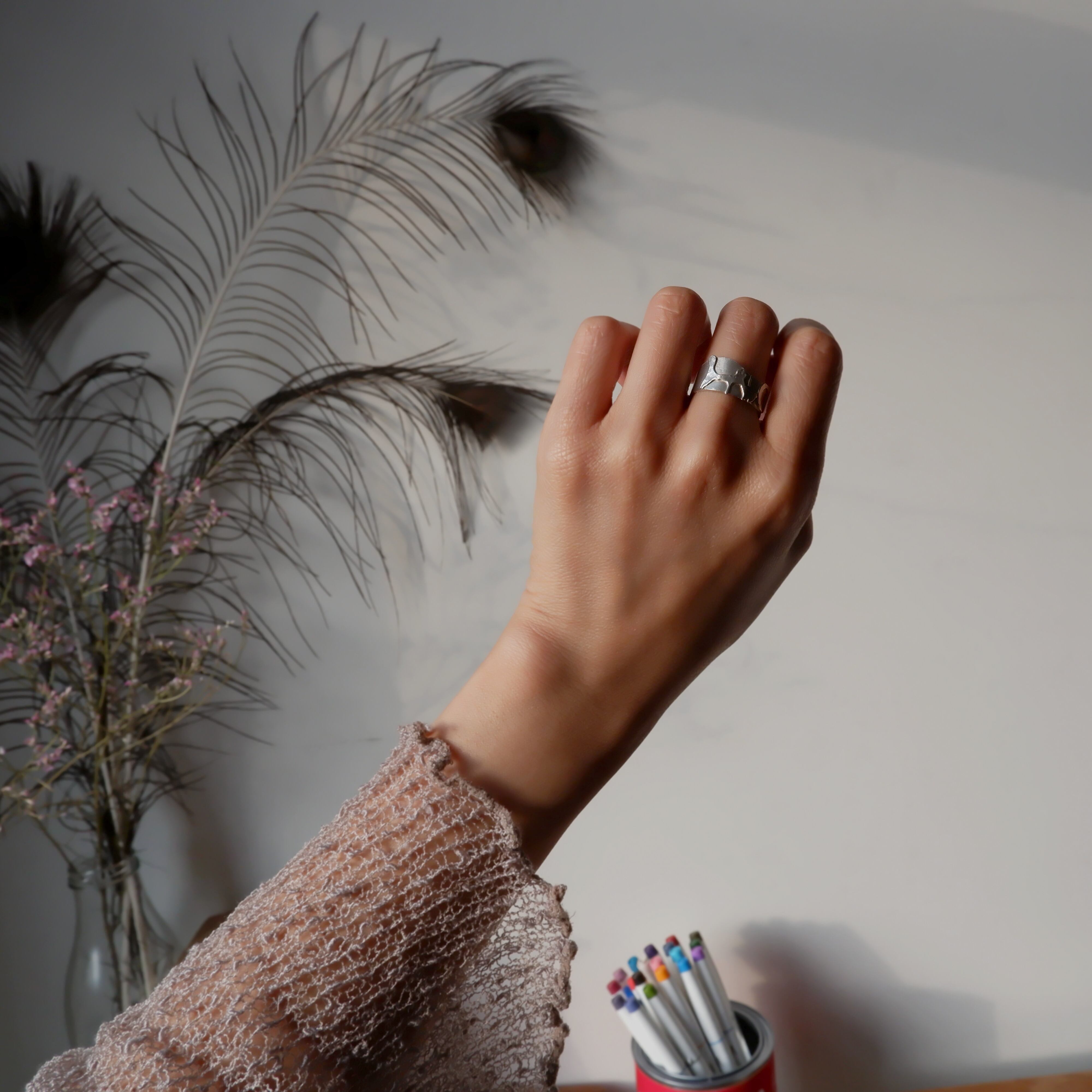 一点身につけるだけで手元の仕草がシックに映える、アーティスティックな雰囲気のアクセサリーです。