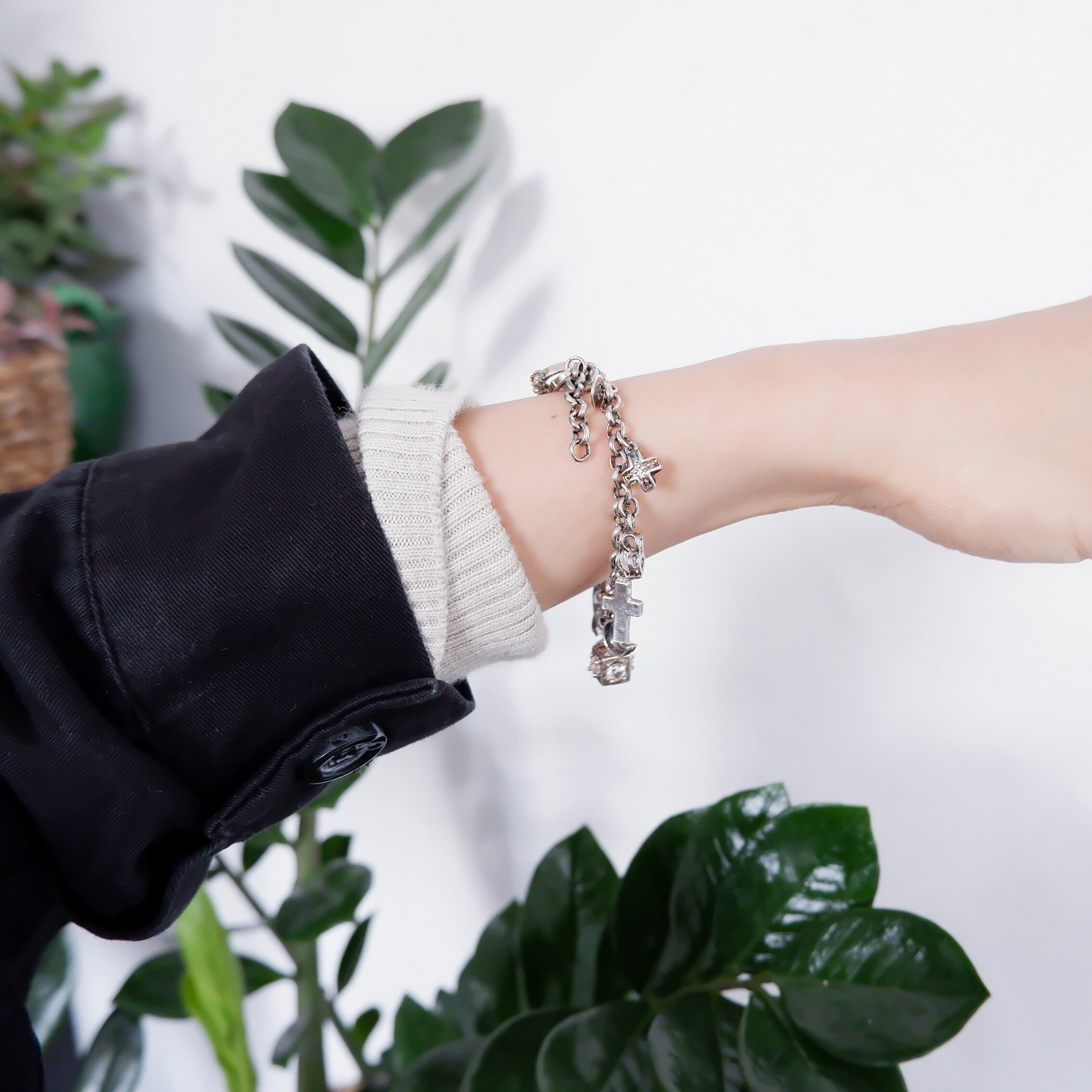 チェーンは「ロロチェーン」と呼ばれる、輪っかを繋げたかわいらしいかたちのデザインをしており、腕周りに合わせて自由に調整出来る作りとなっています。