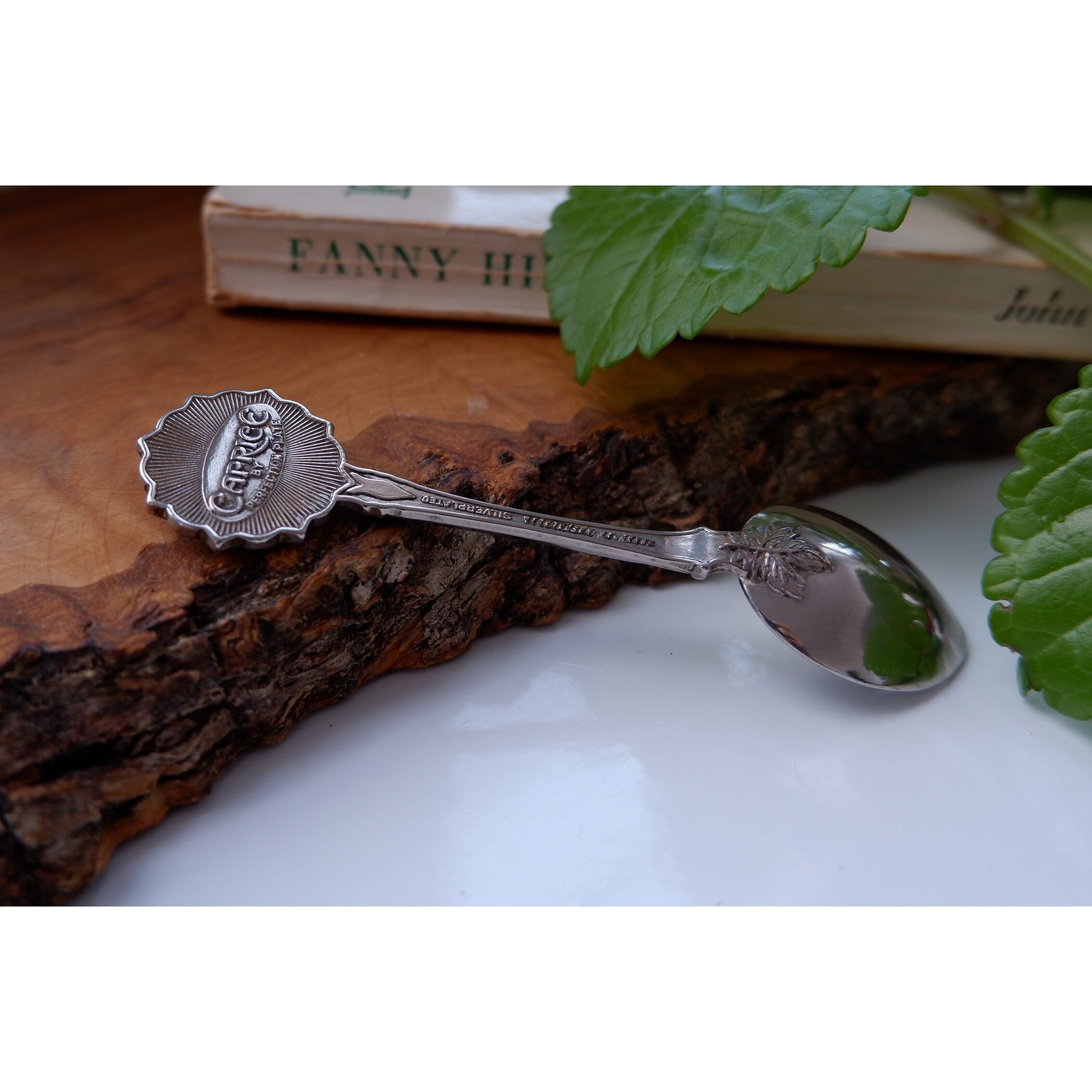 スプーン背面にはオーストラリア製であることを記す MADE IN AUSTRALIA の文字と、製造ブランド CAPRICE BY PERFECTION PLATE の文字が刻印されてあります。
