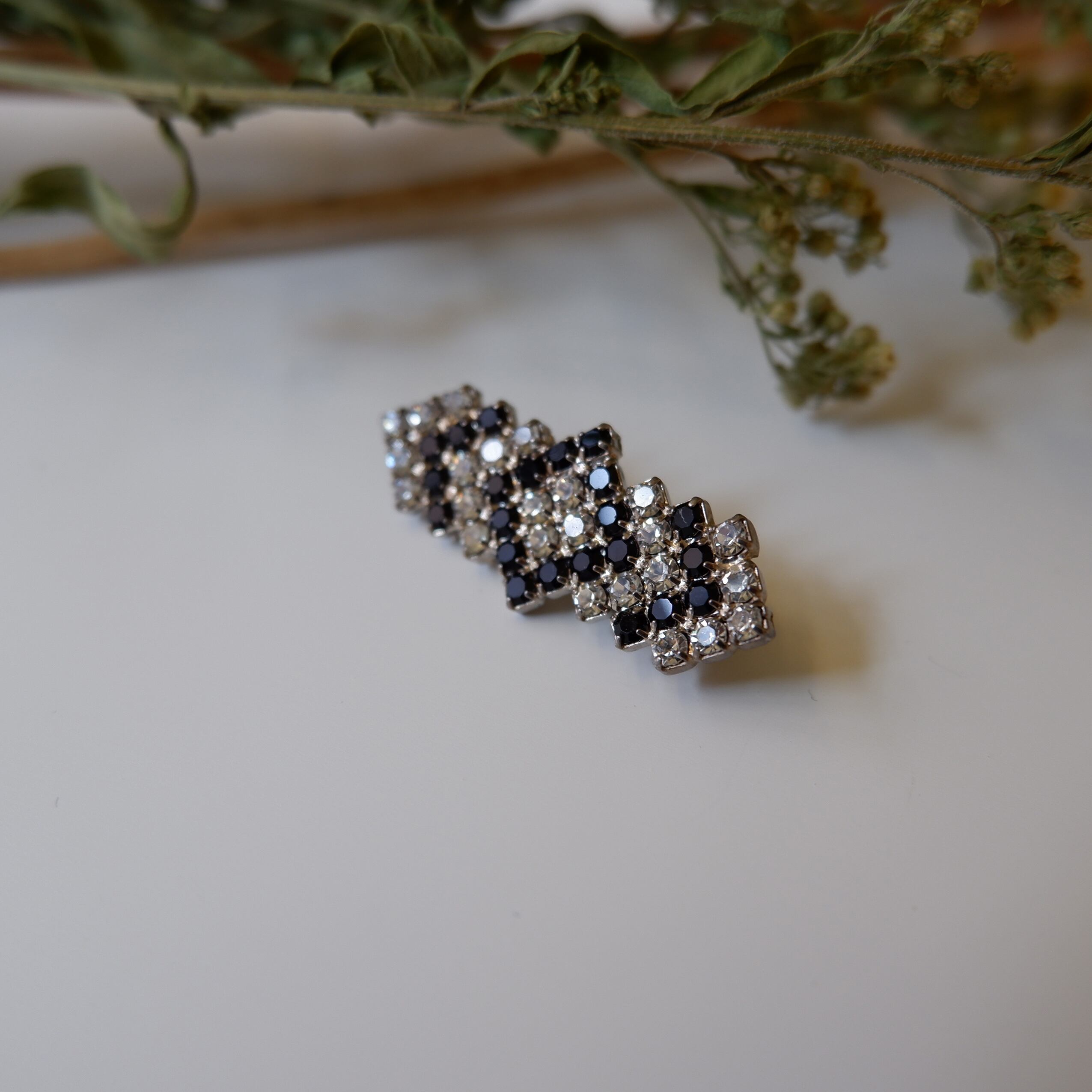 小さなキャンバスに光るビジューが敷き詰められた、シルバープレート製のヴィンテージブローチです。