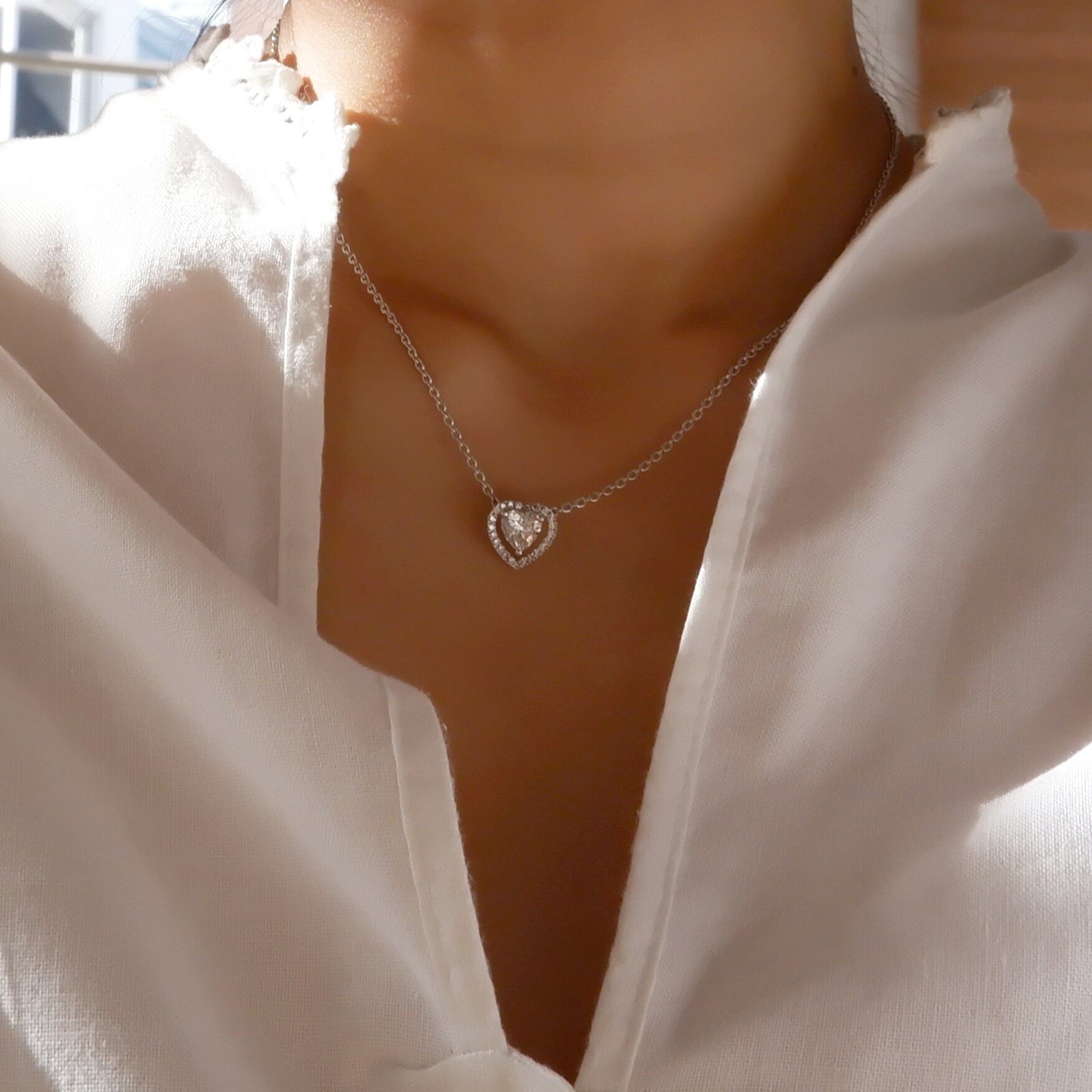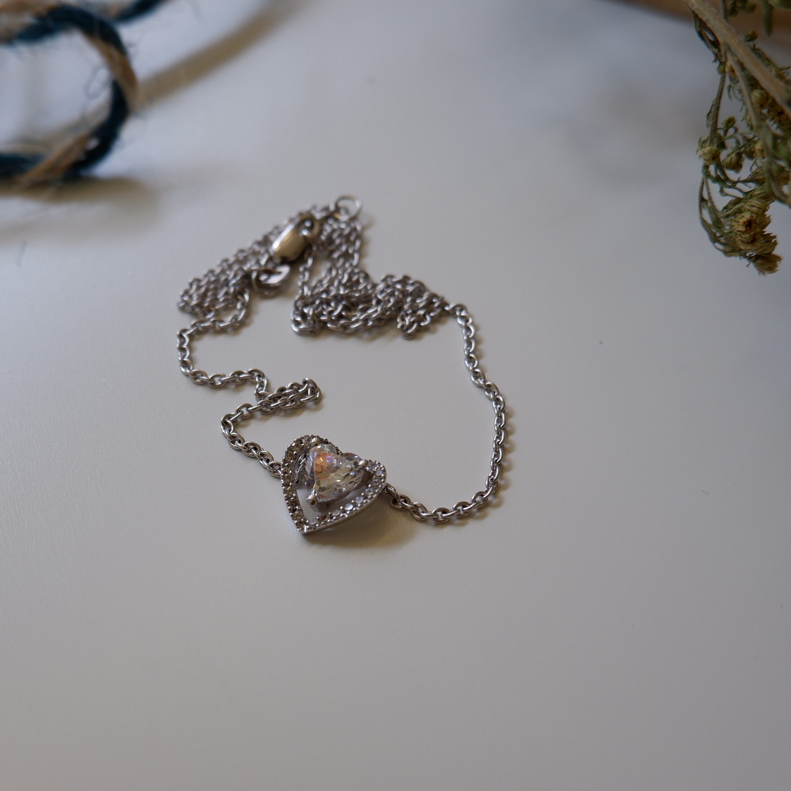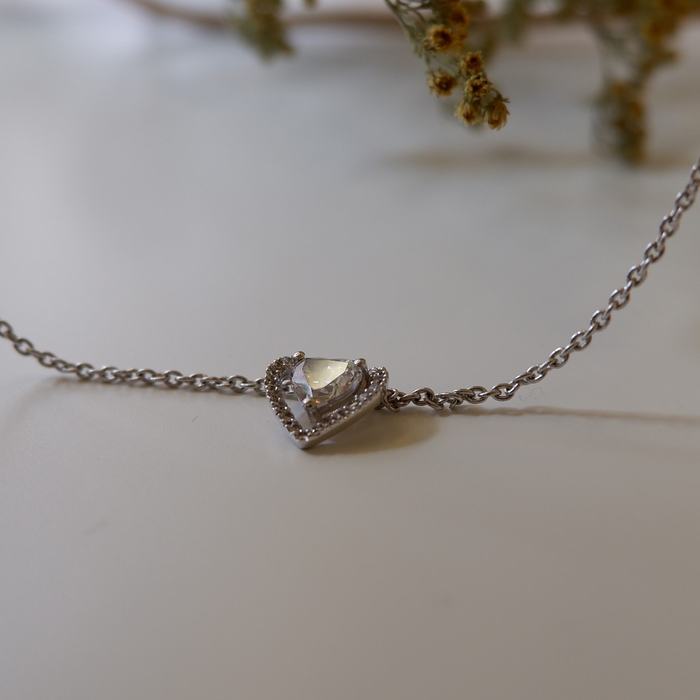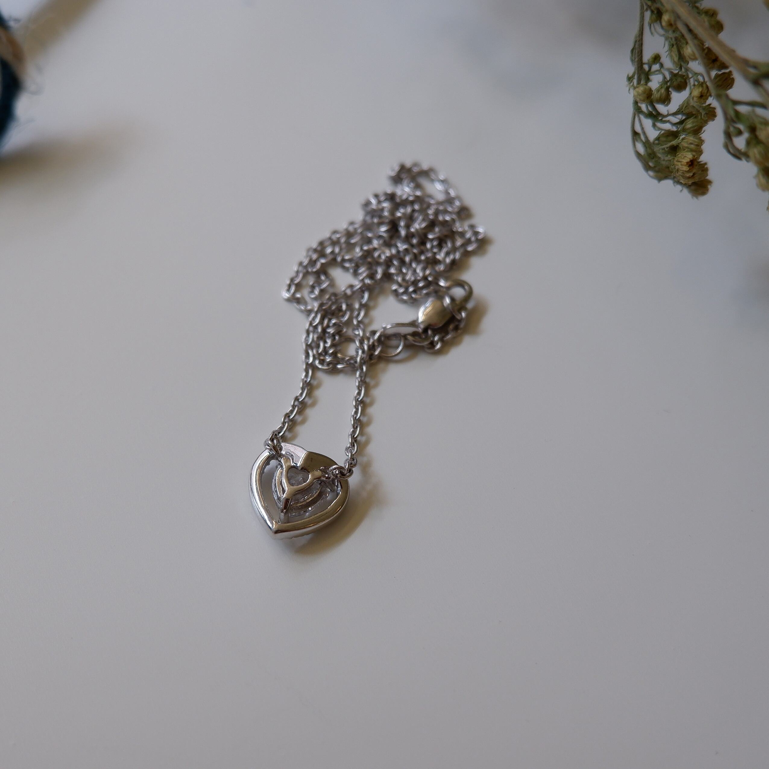 ハートモチーフのペンダントが光る、シルバー製のヴィンテージネックレスです。