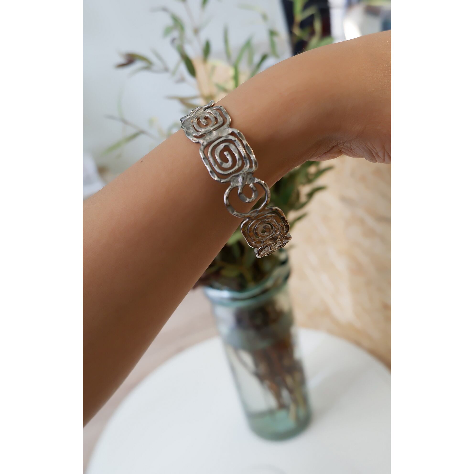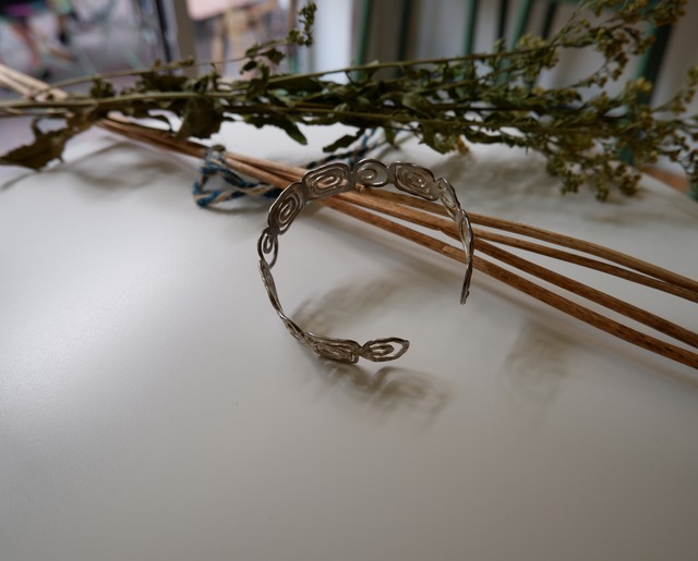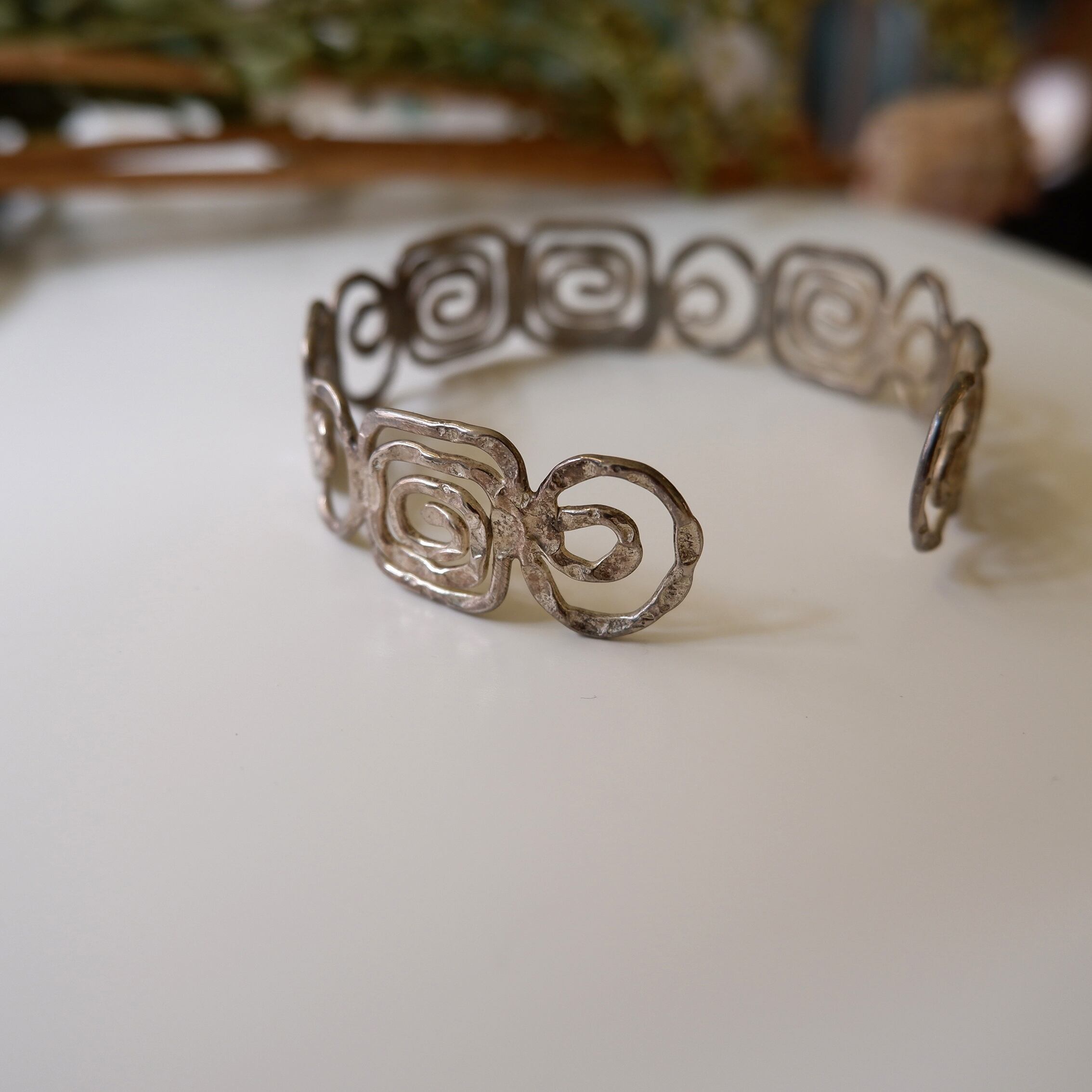アール・デコ調のデザインがとても素敵な、シルバー製のバングルです。