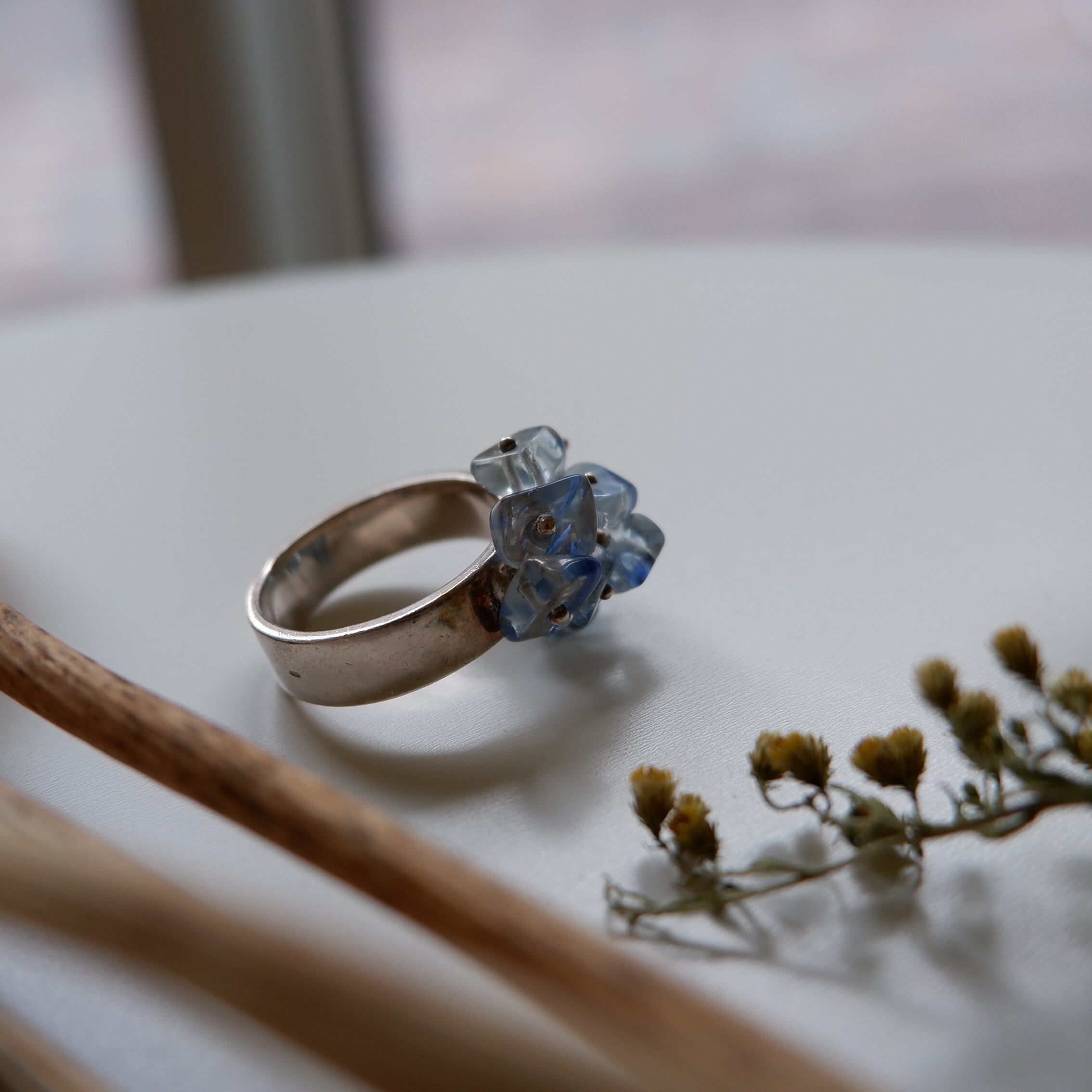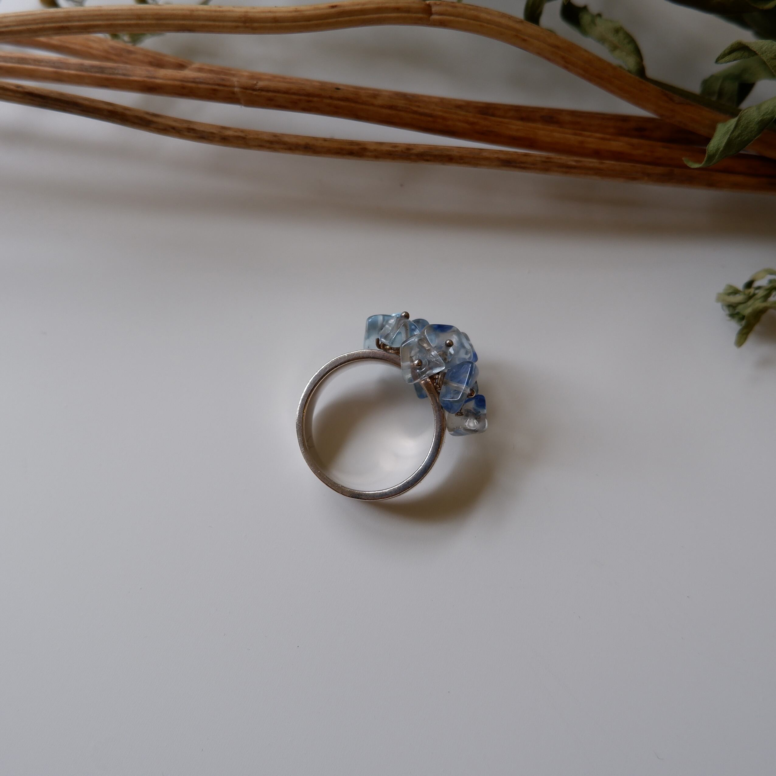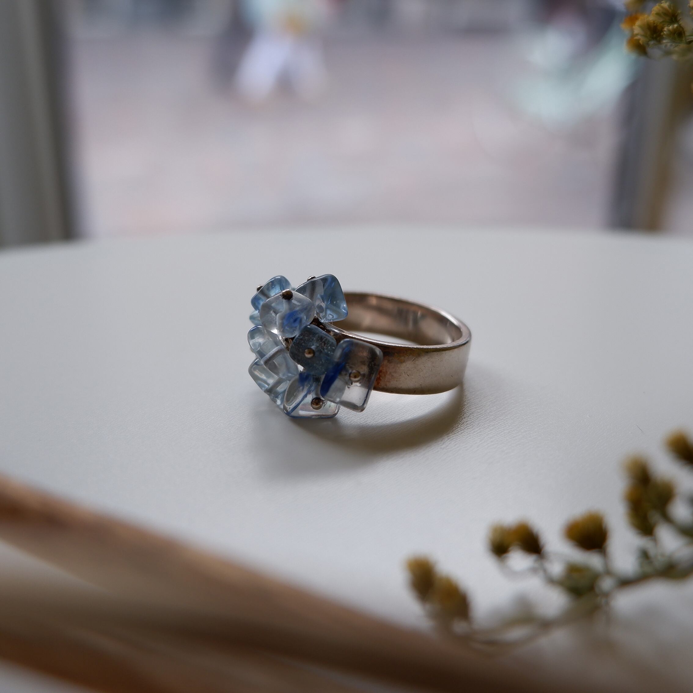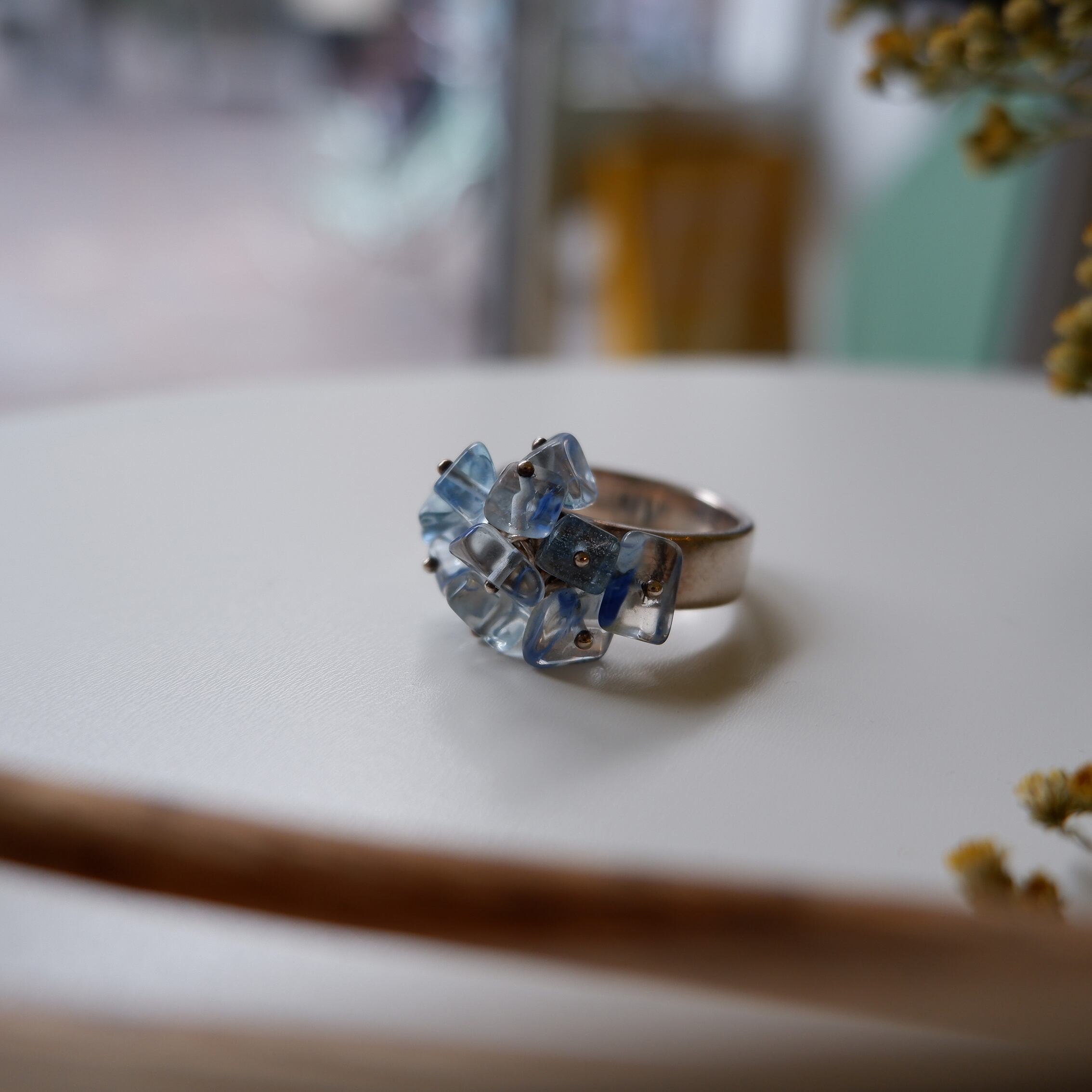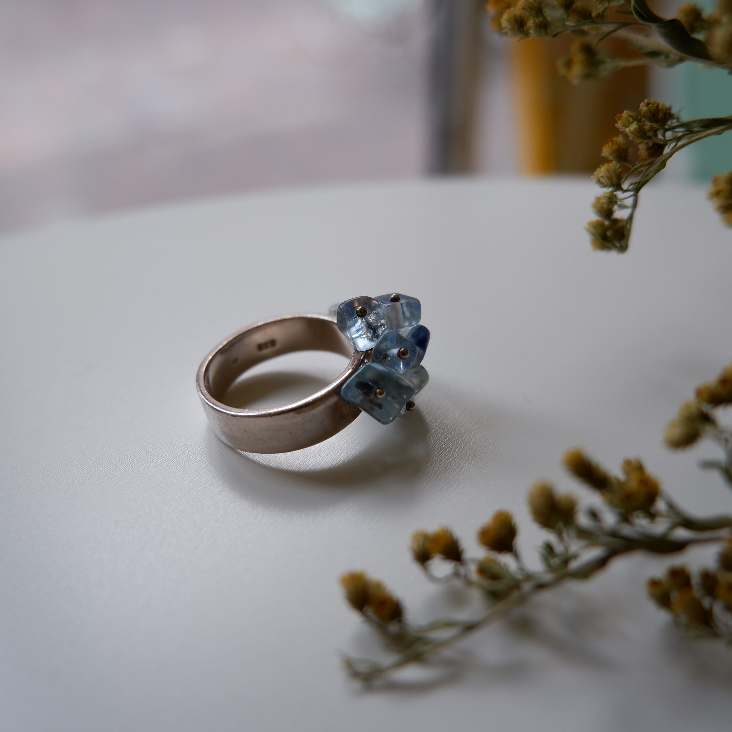 深みのある水色が美しい、ストーンモチーフのシルバーリングです。