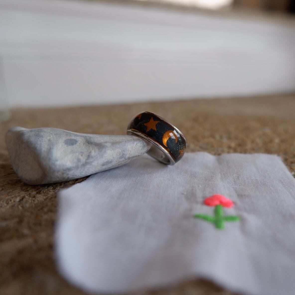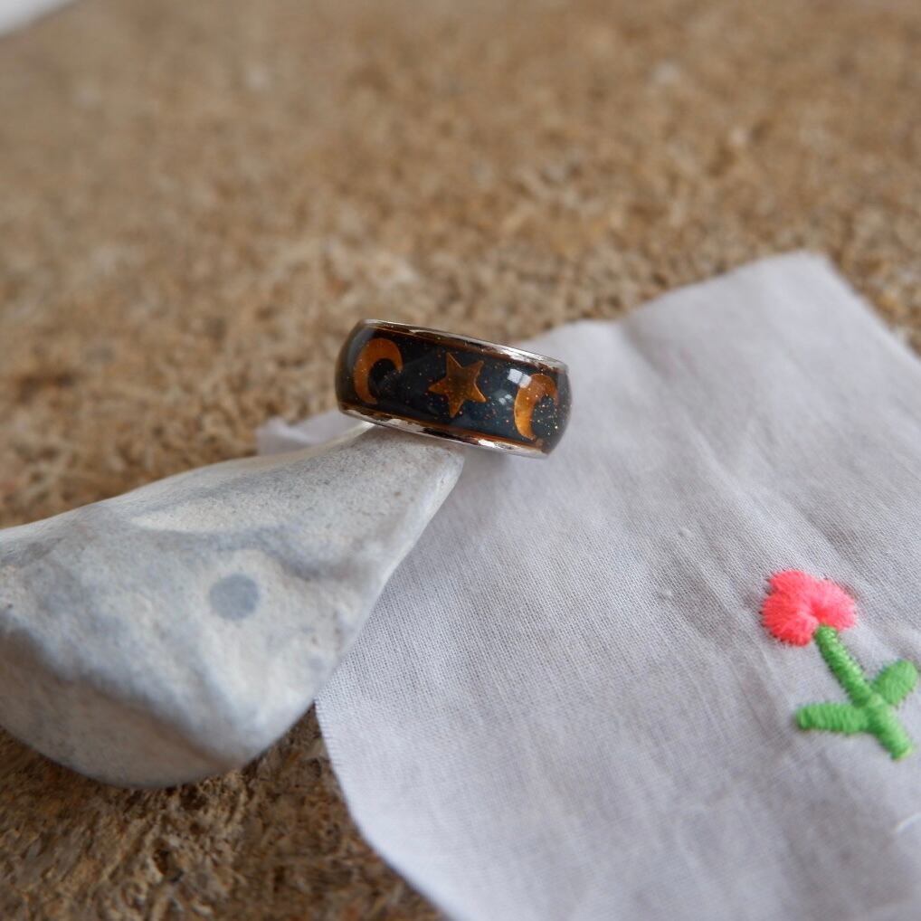 星と月が描かれた指輪です。