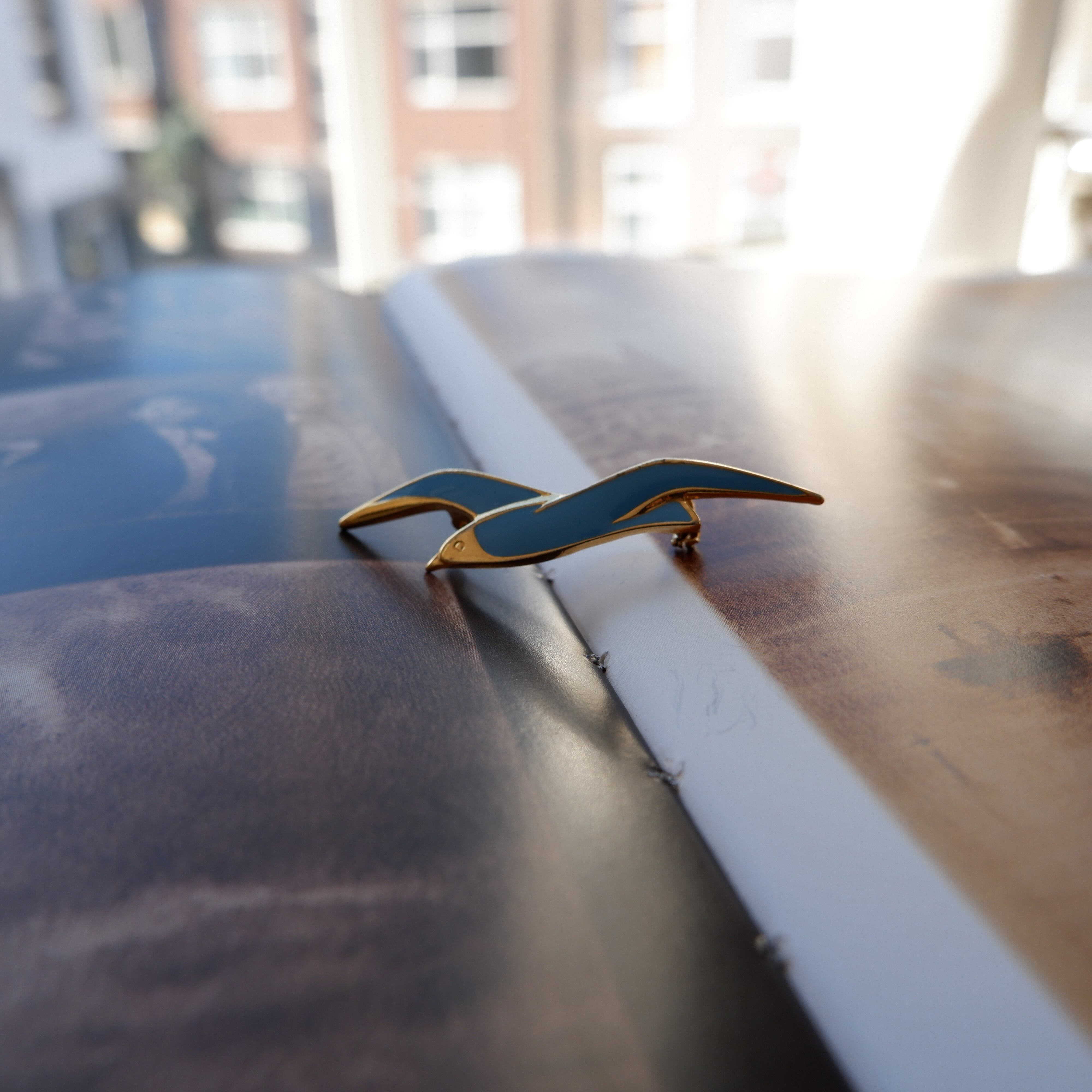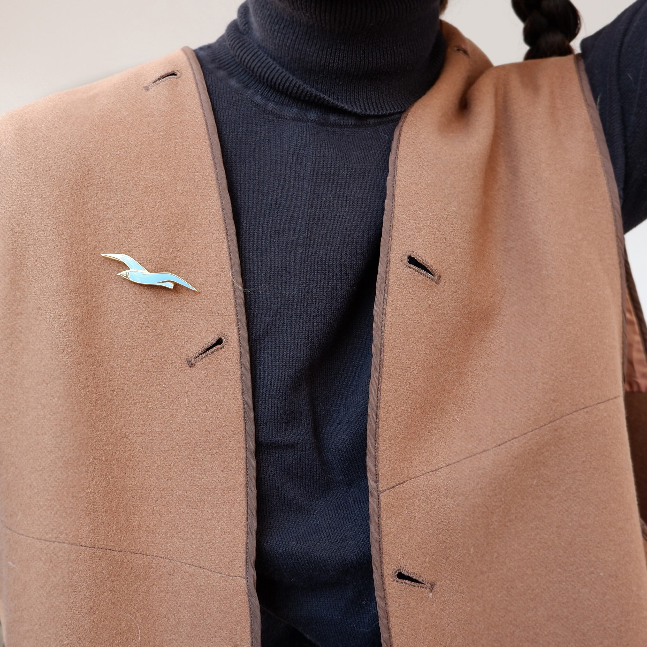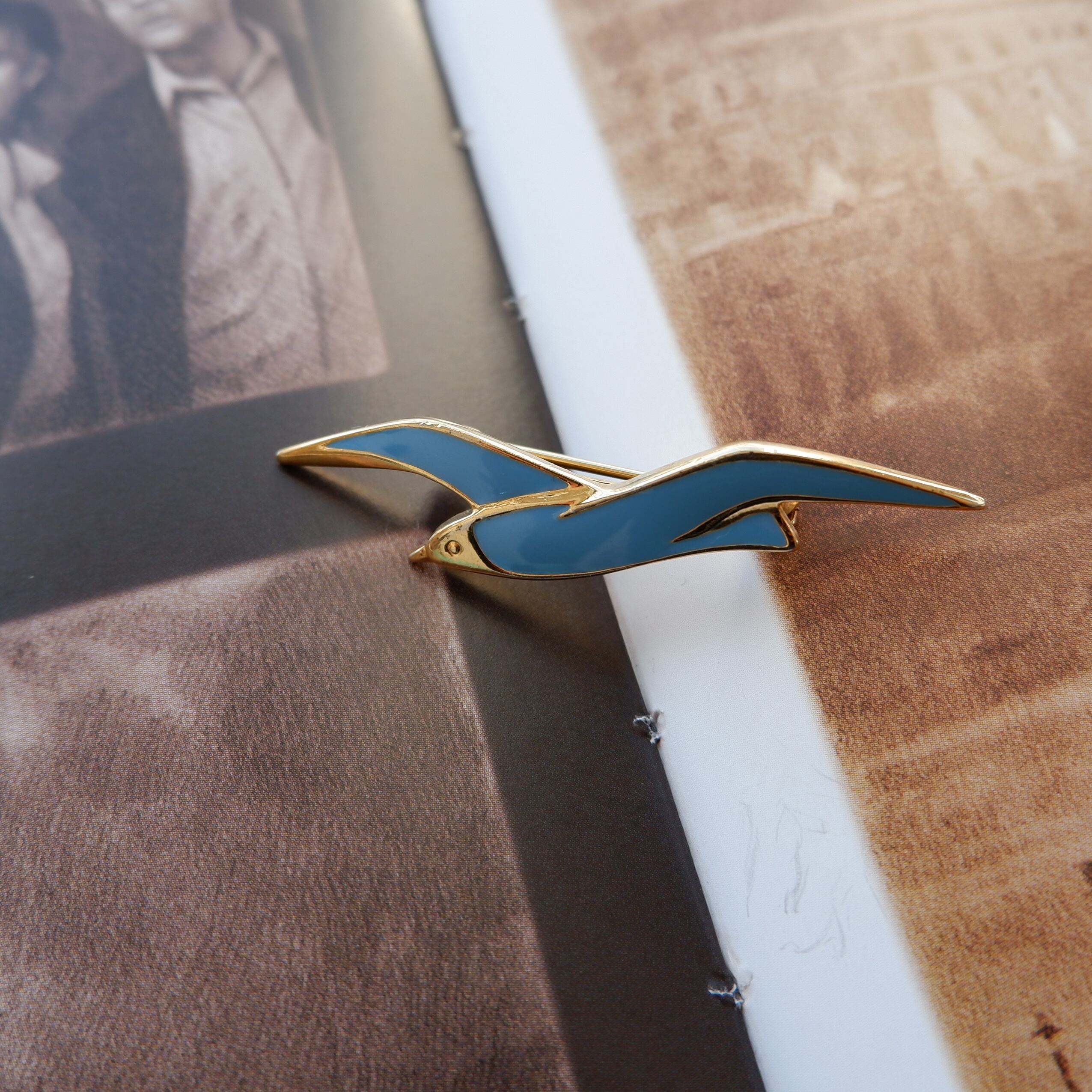 鳥モチーフが素敵なベイビーブルー色のブローチです。