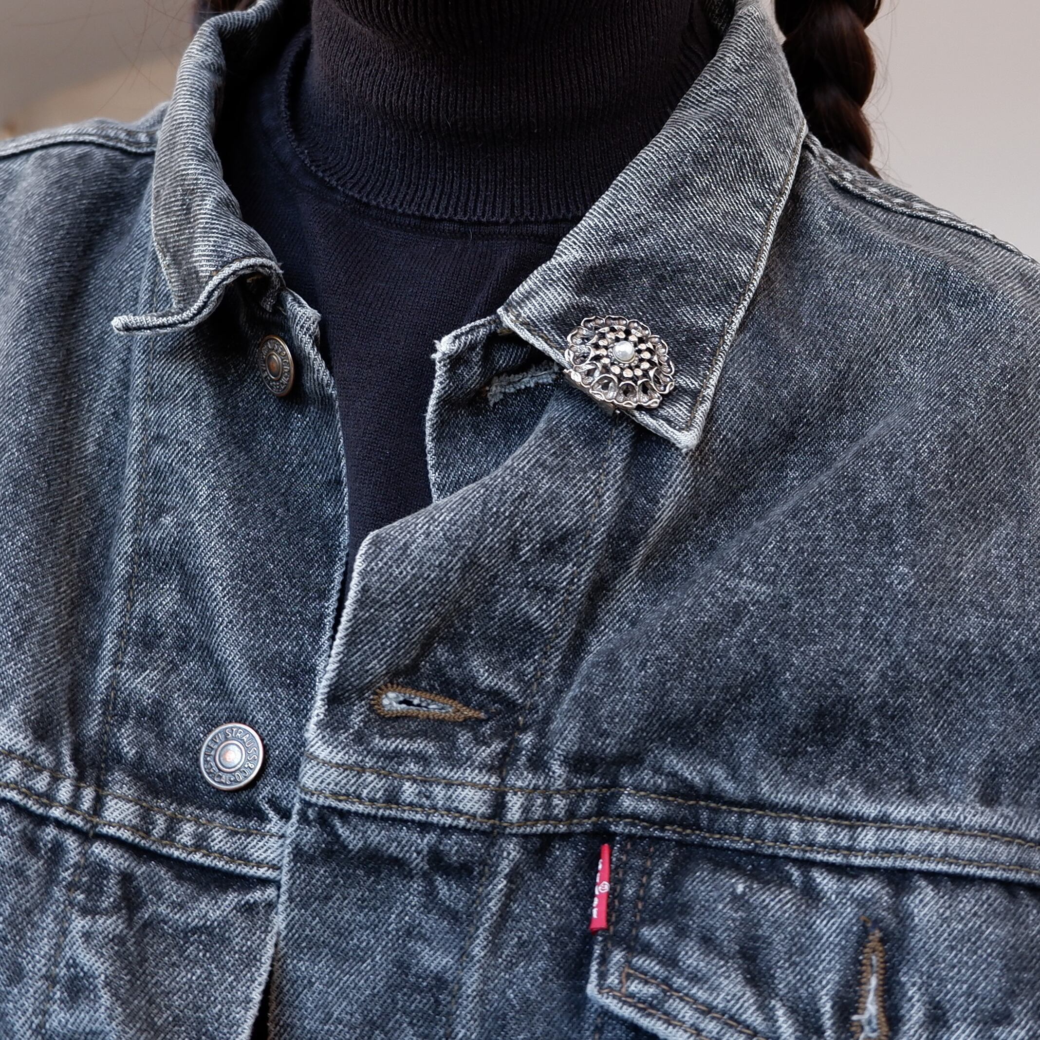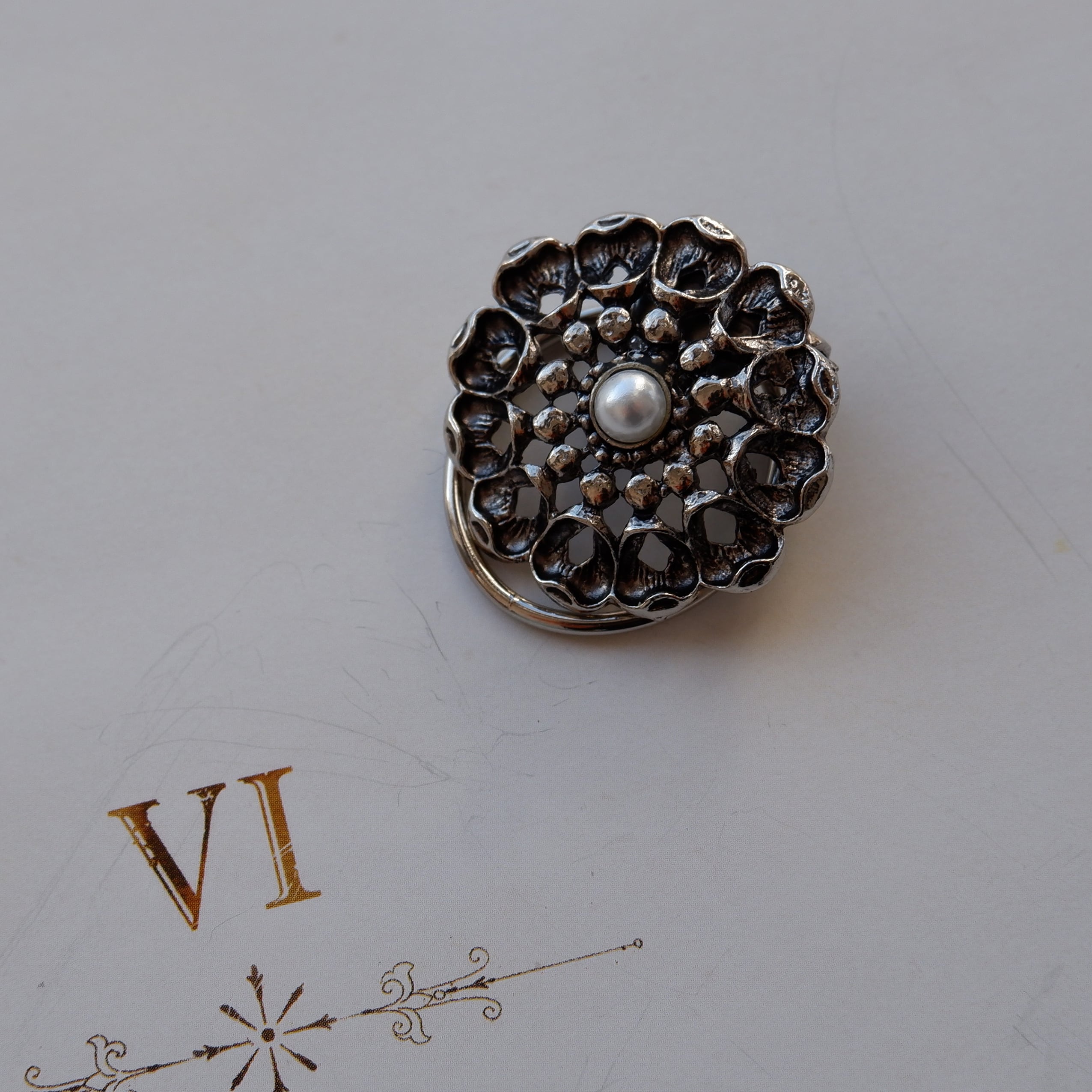 お花の彫金細工が美しい、クリップ型のブローチです。