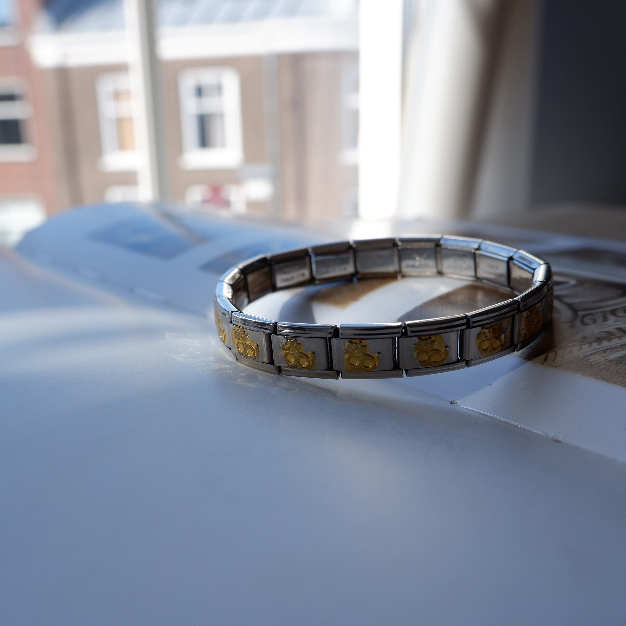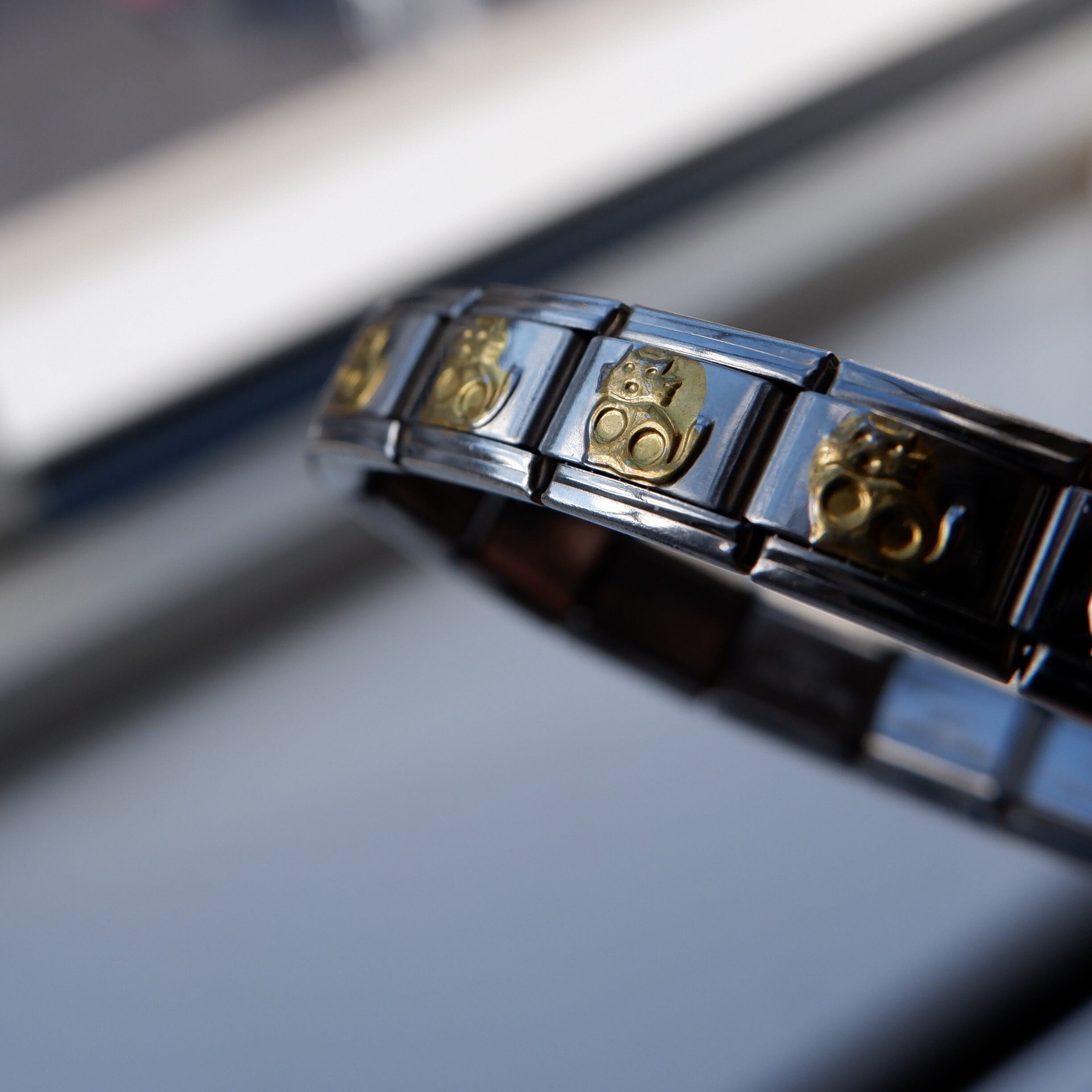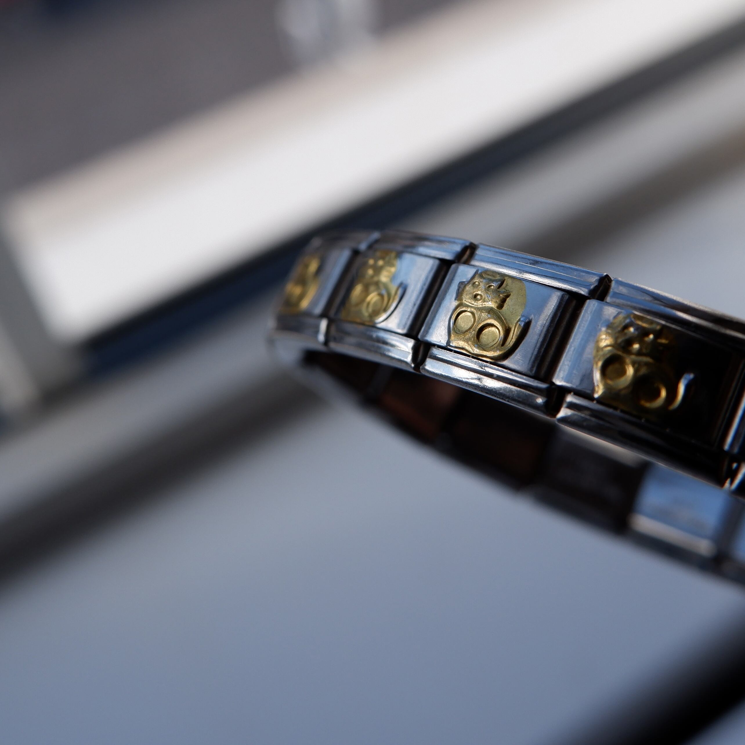一つ一つのコマの背面に製造国と素材名 (ITALY / STAINLESS STEEL) が刻印されております。