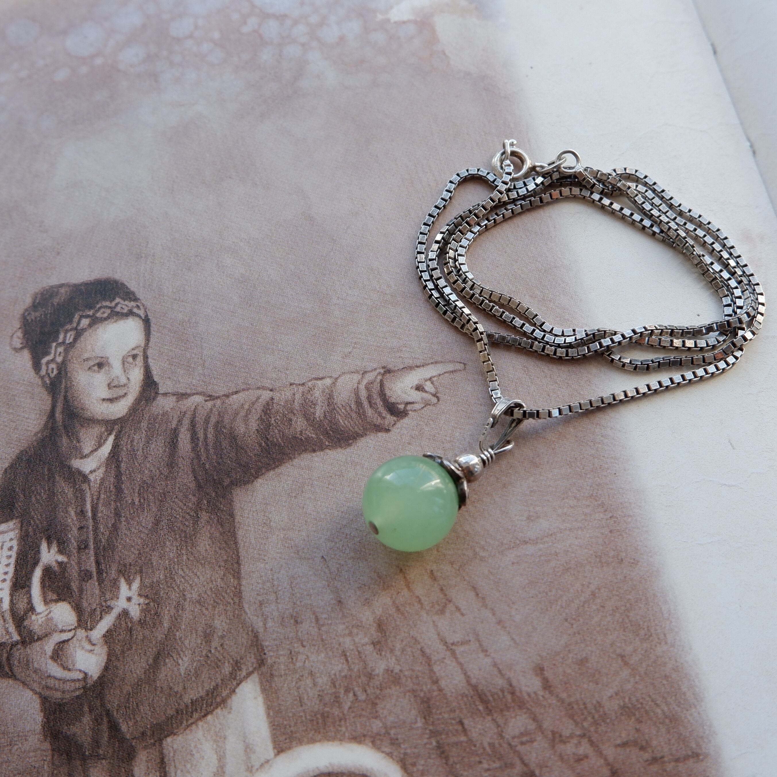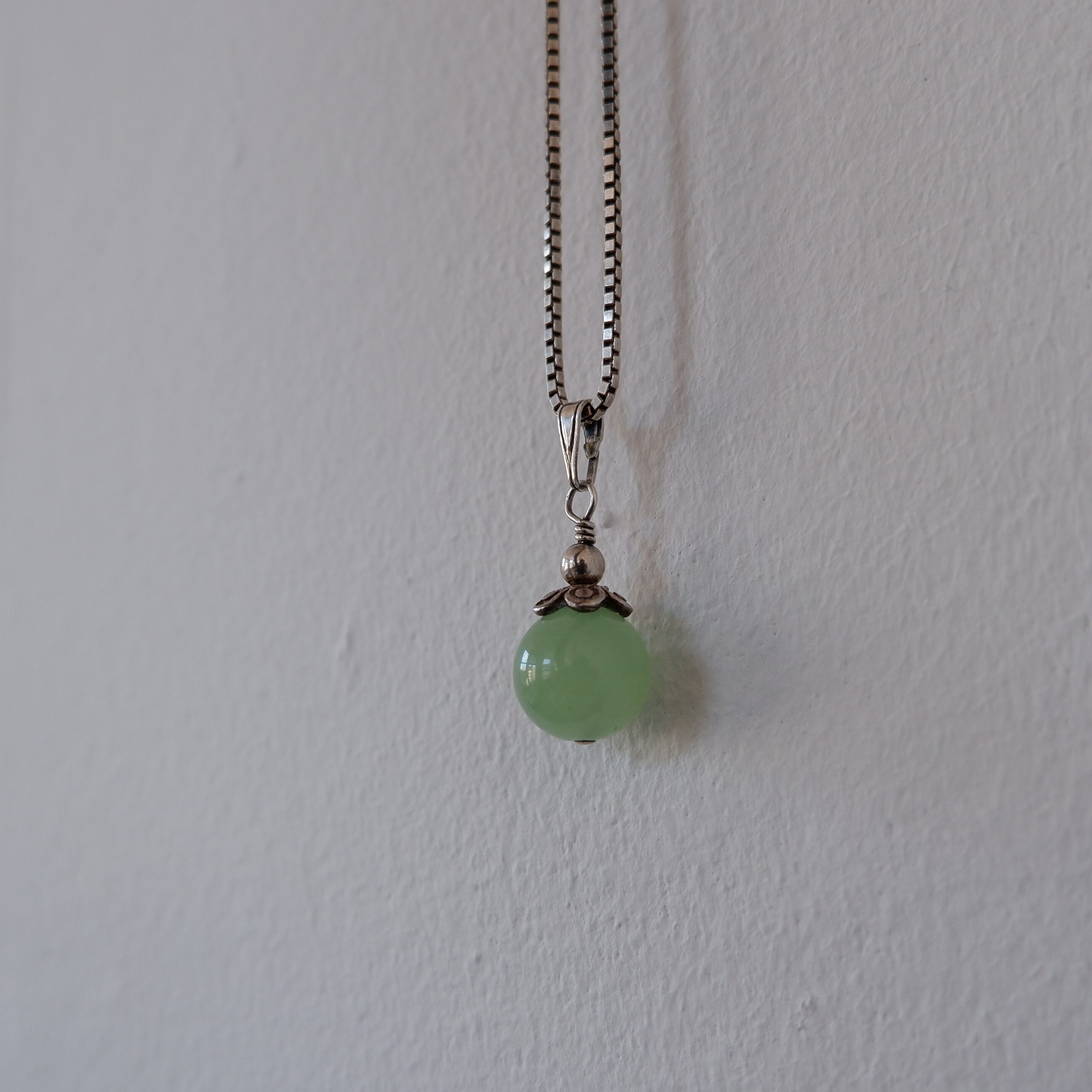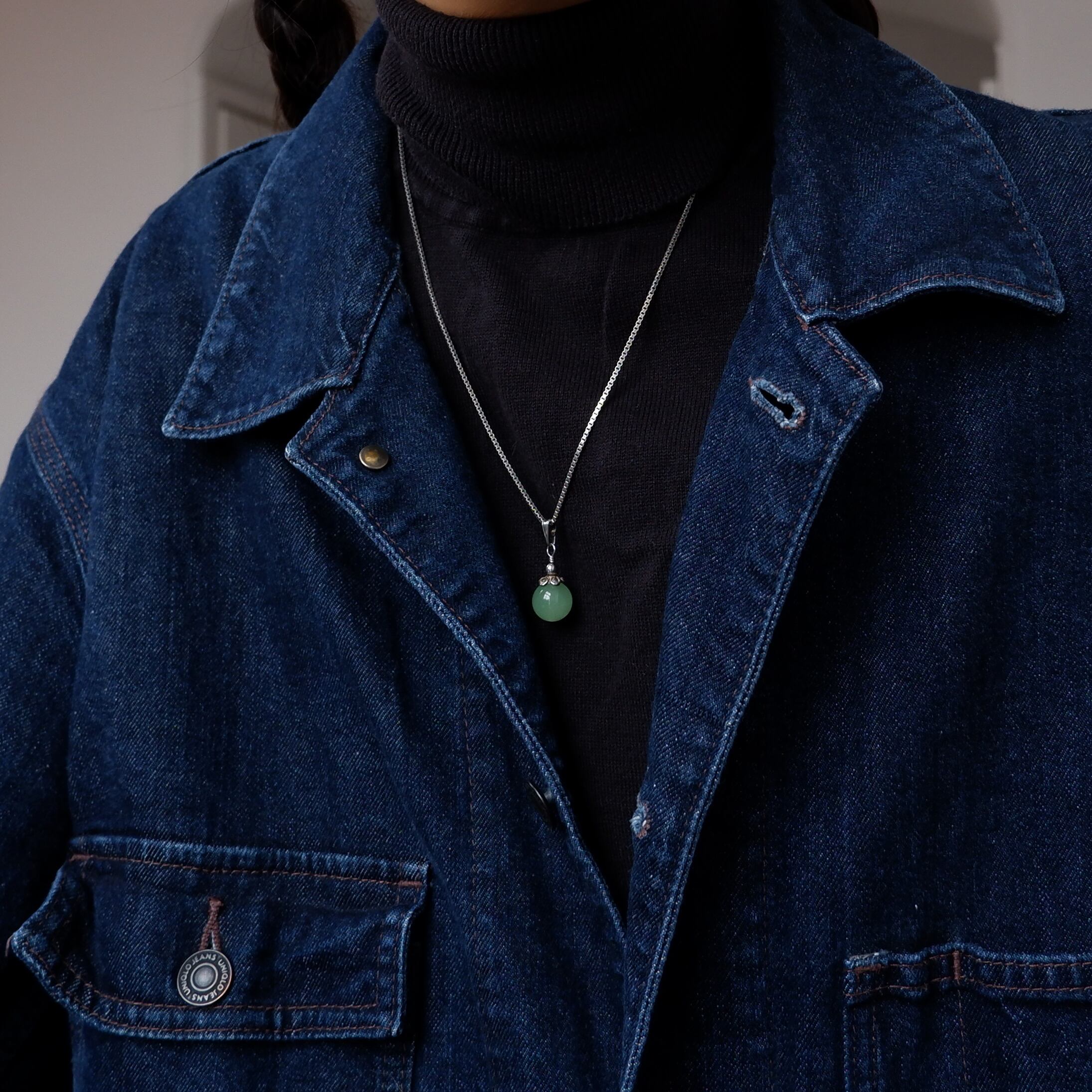 Green stoneドイツ製シルバーネックレス (zon-34)
