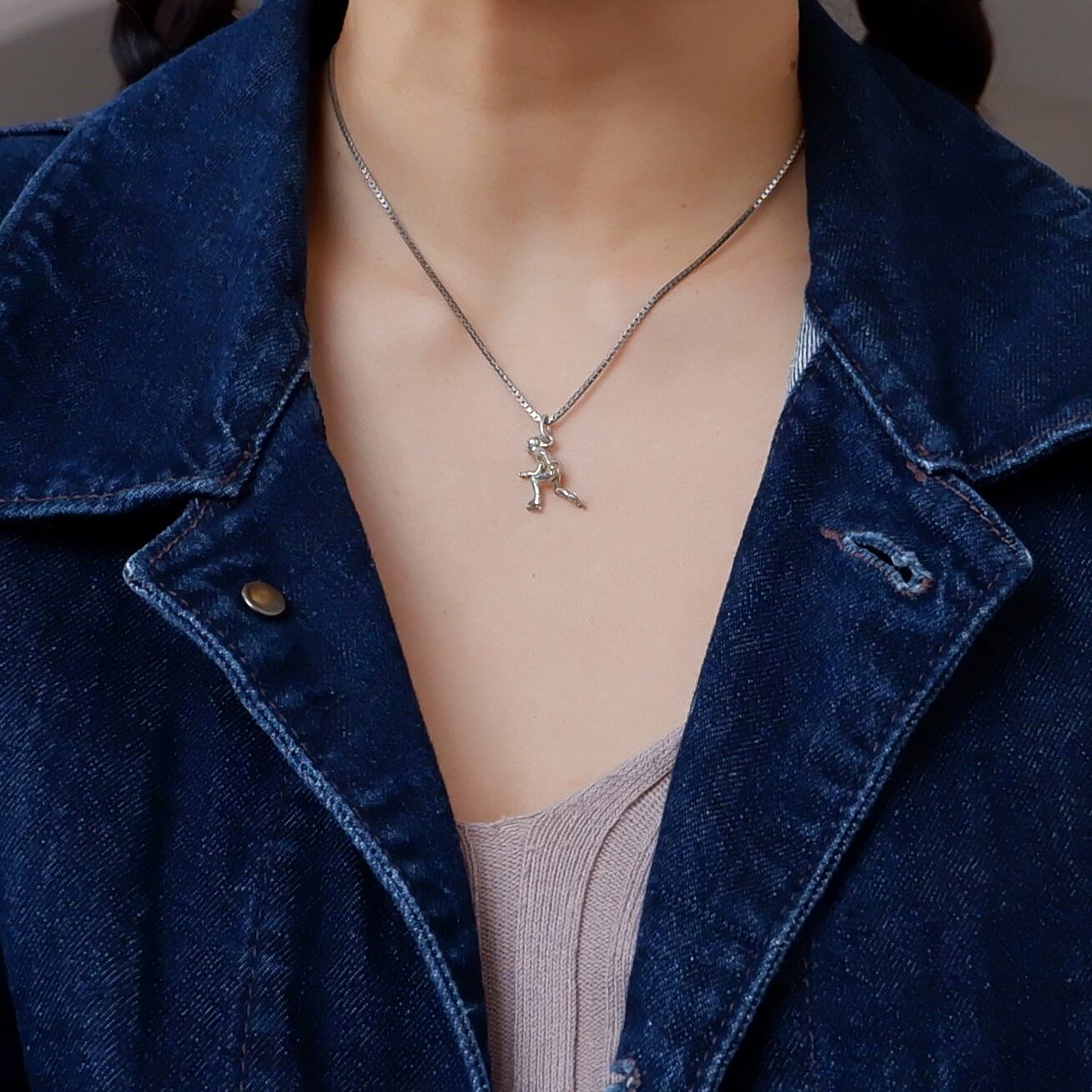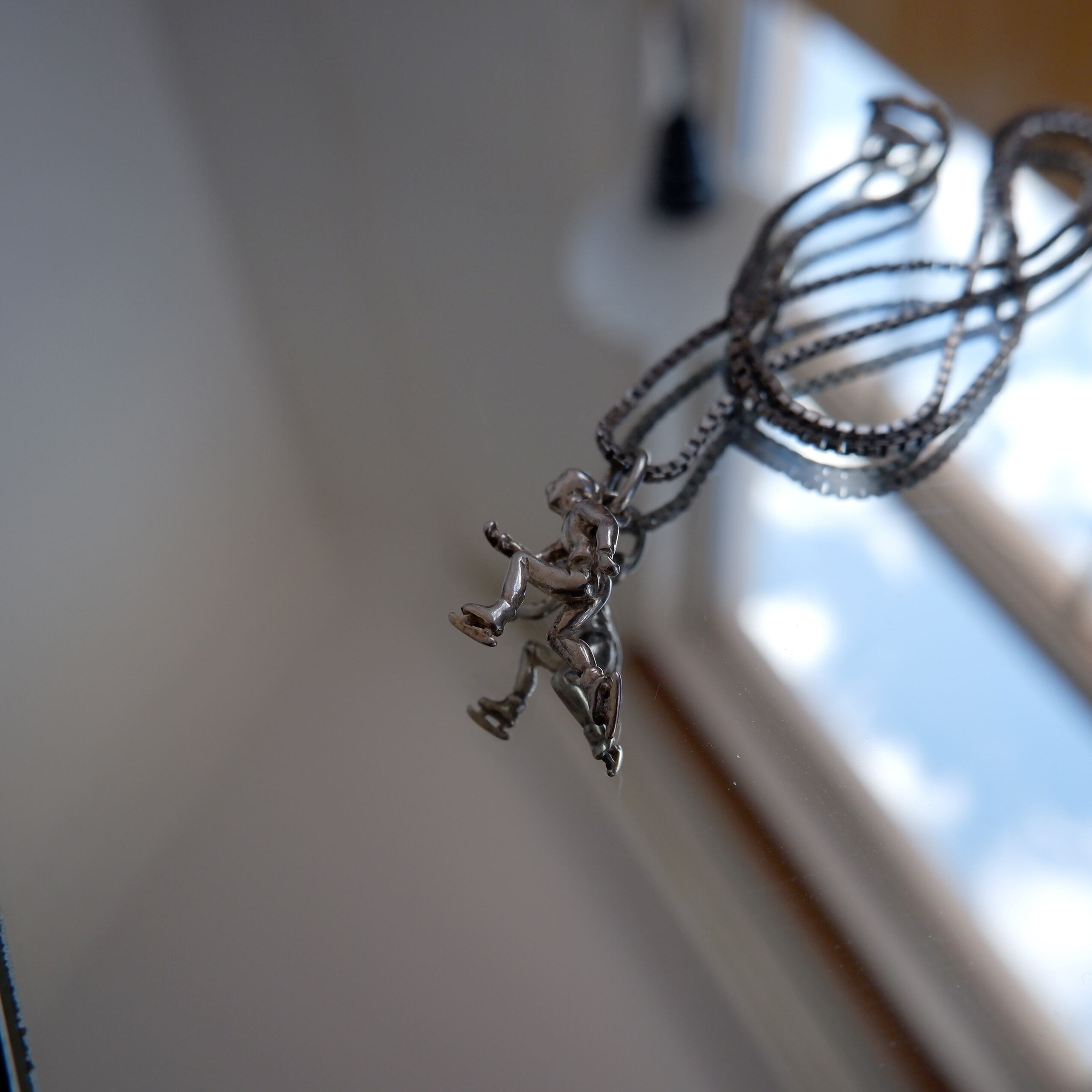 アイススケーターのモチーフがペンダントトップとなった、ジャーマンシルバー製のネックレスです。