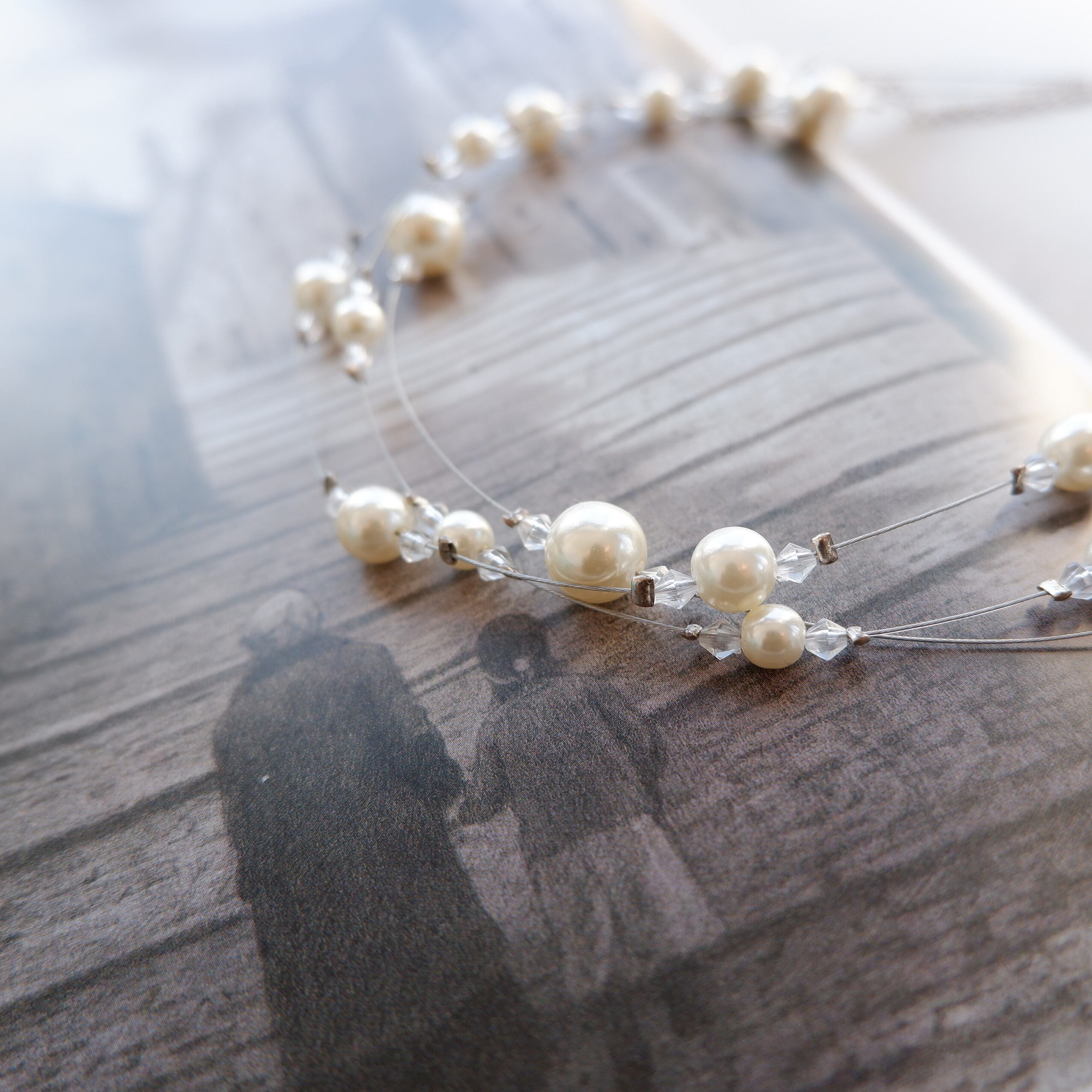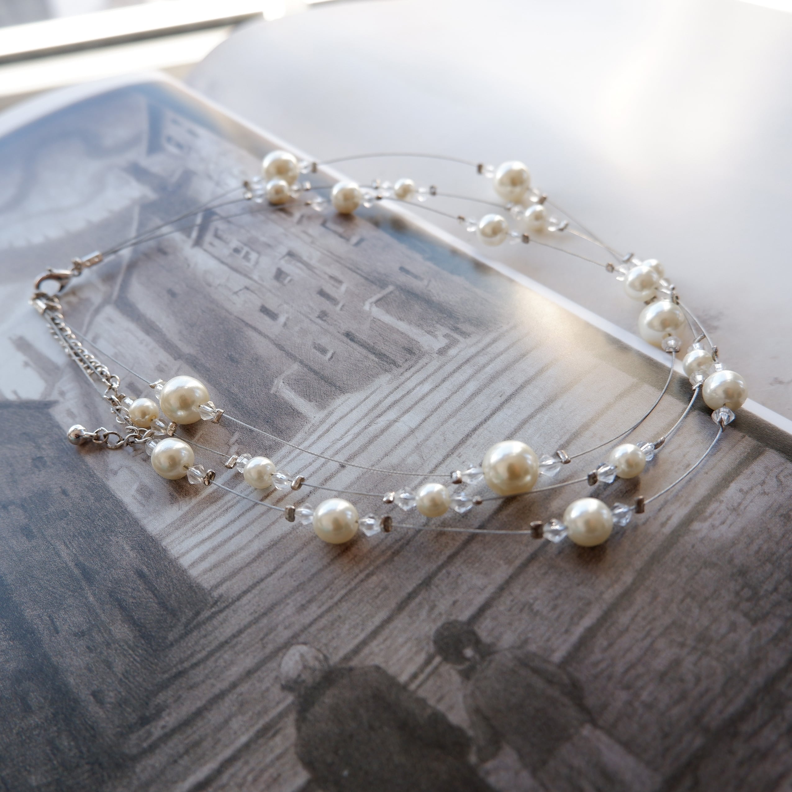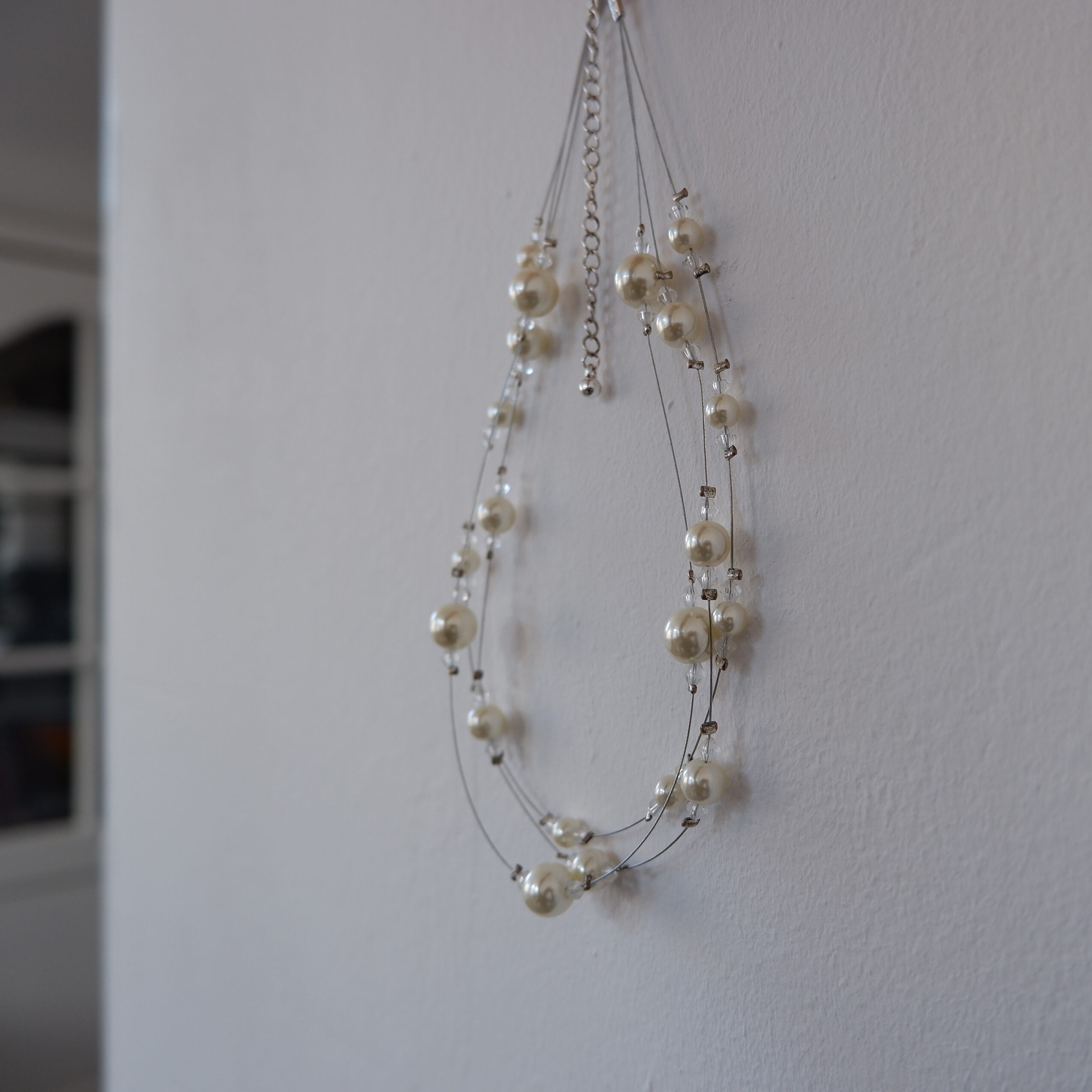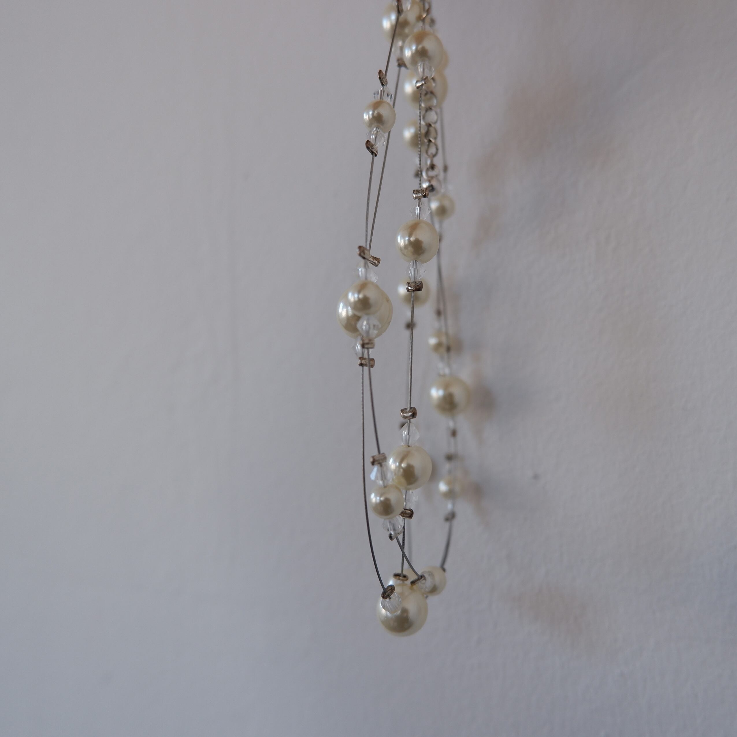 アイボリーカラーが可愛い、パールビーズのワイヤーネックレスです。